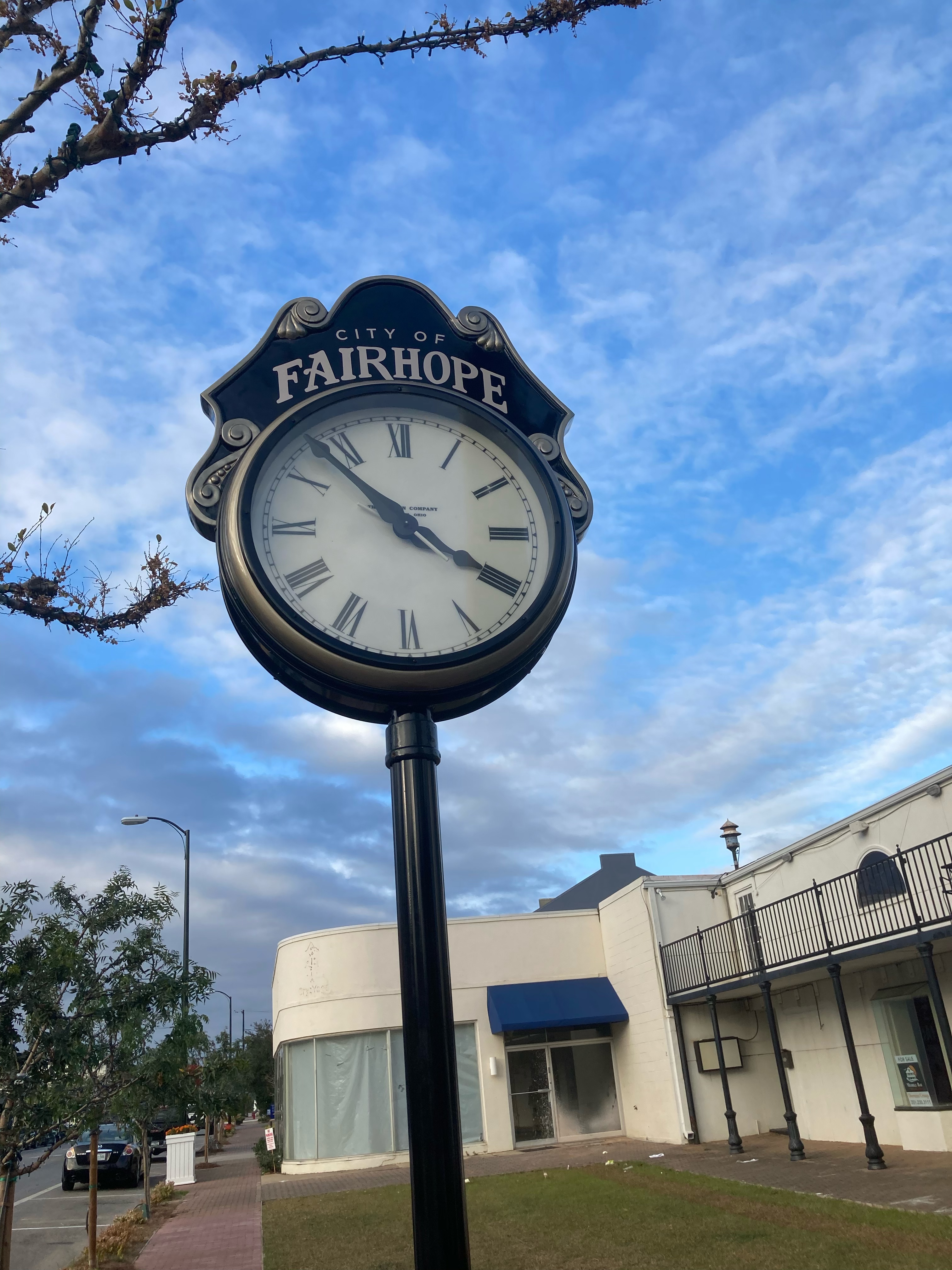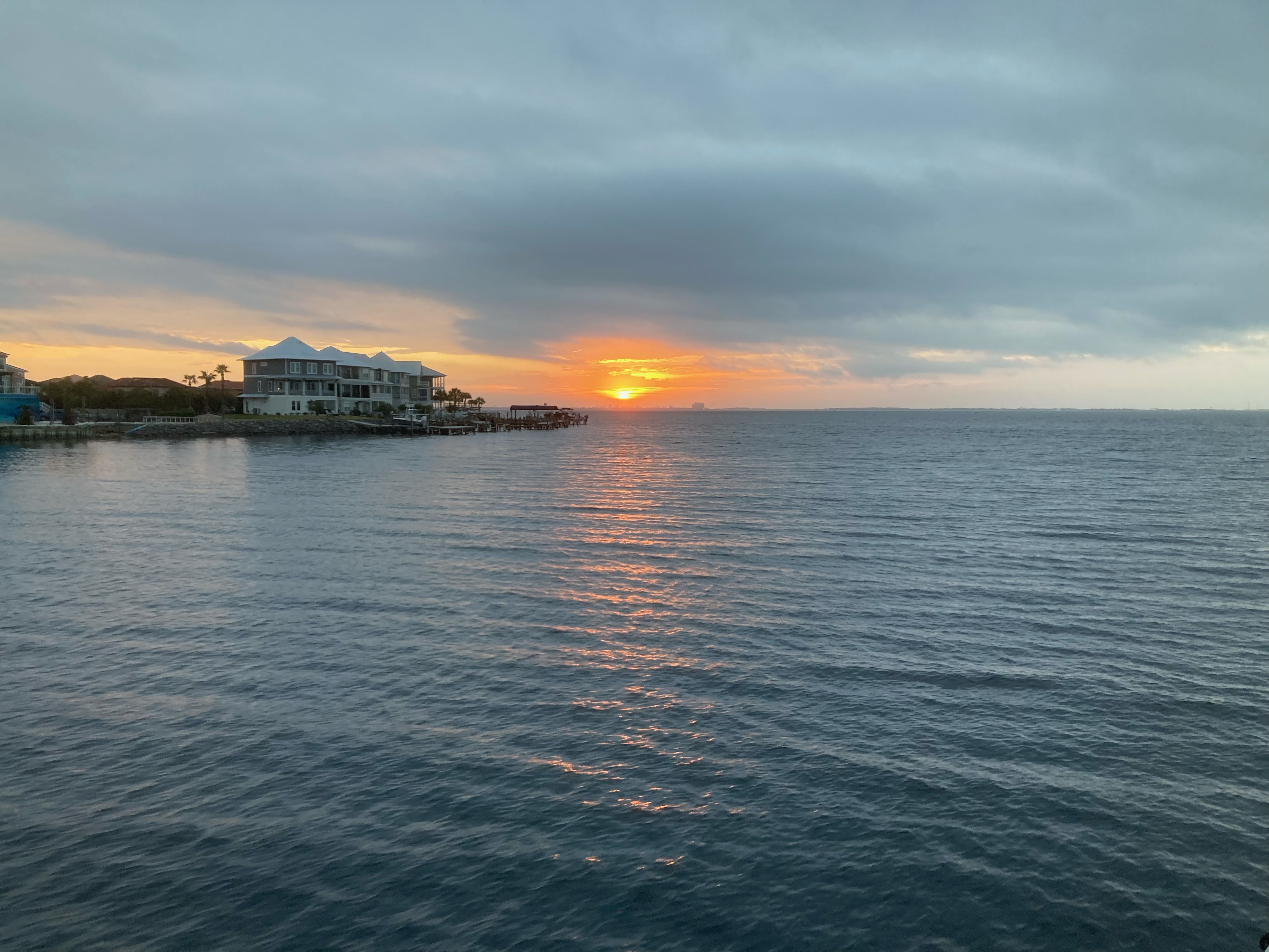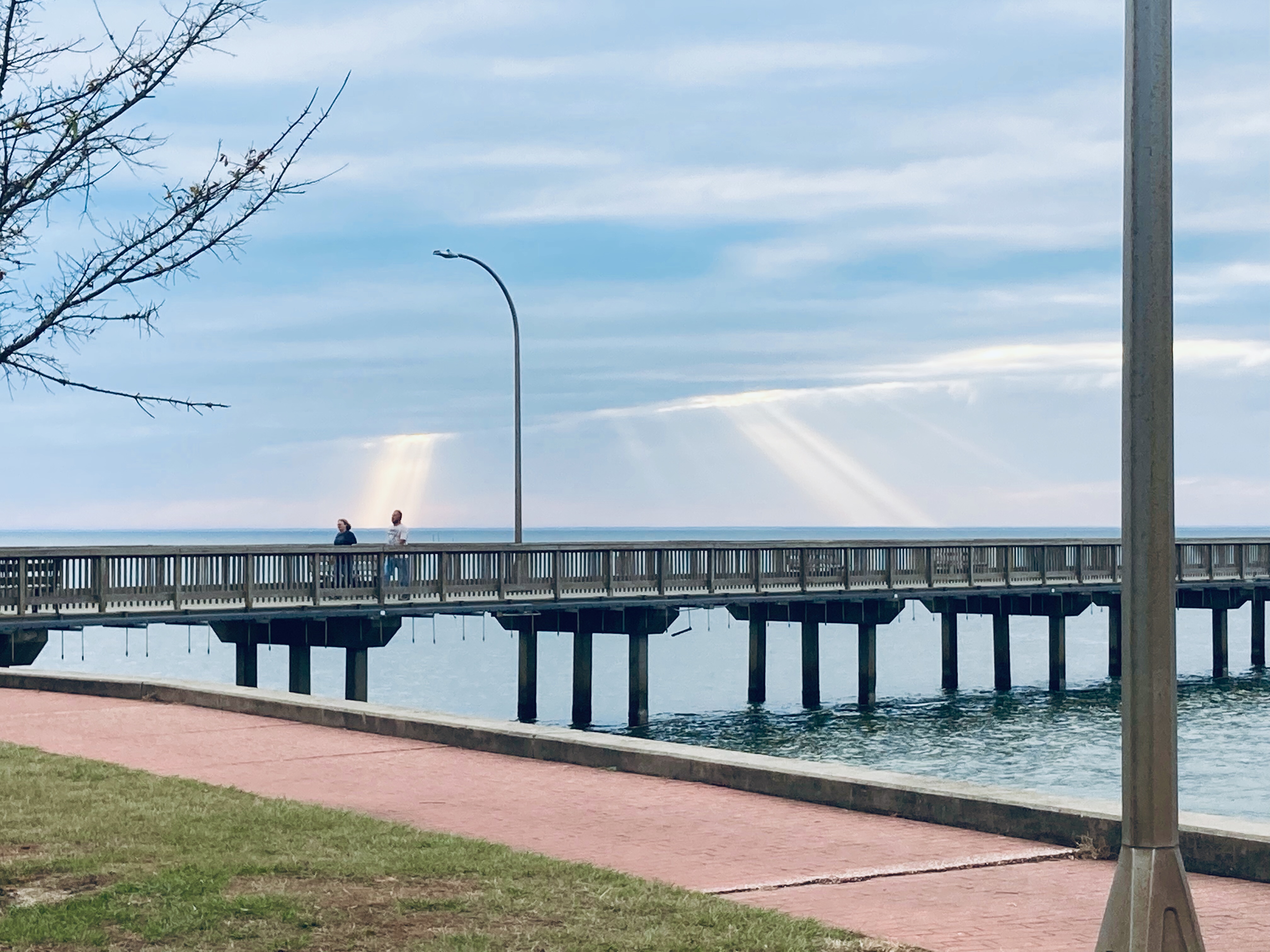The pier in Fairhope with the sun making a valiant attempt at showing itself.