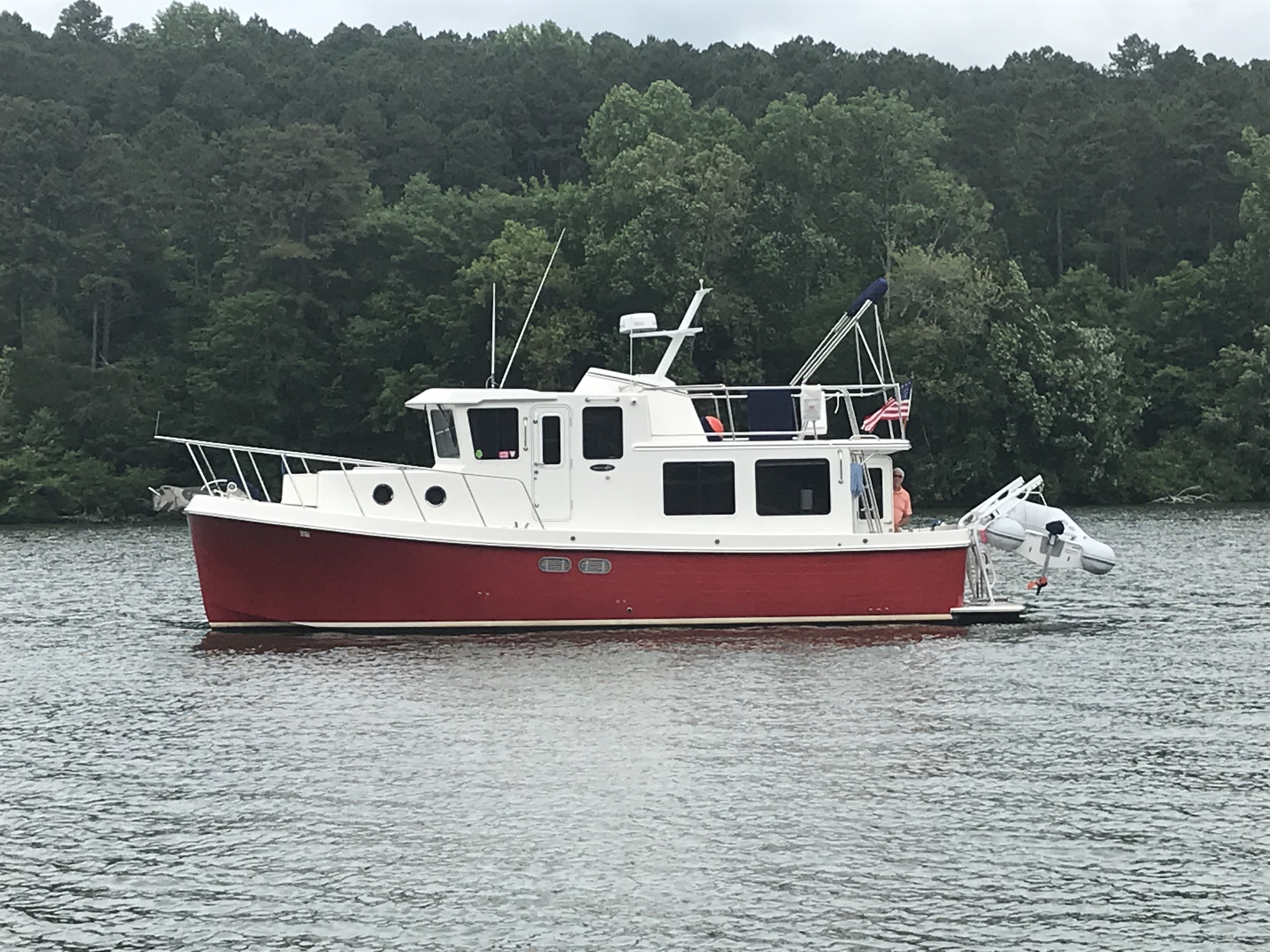 Crimson Tug is a 34 foot long American Tug with a single engine. To add manueverability it has a bow thruster.