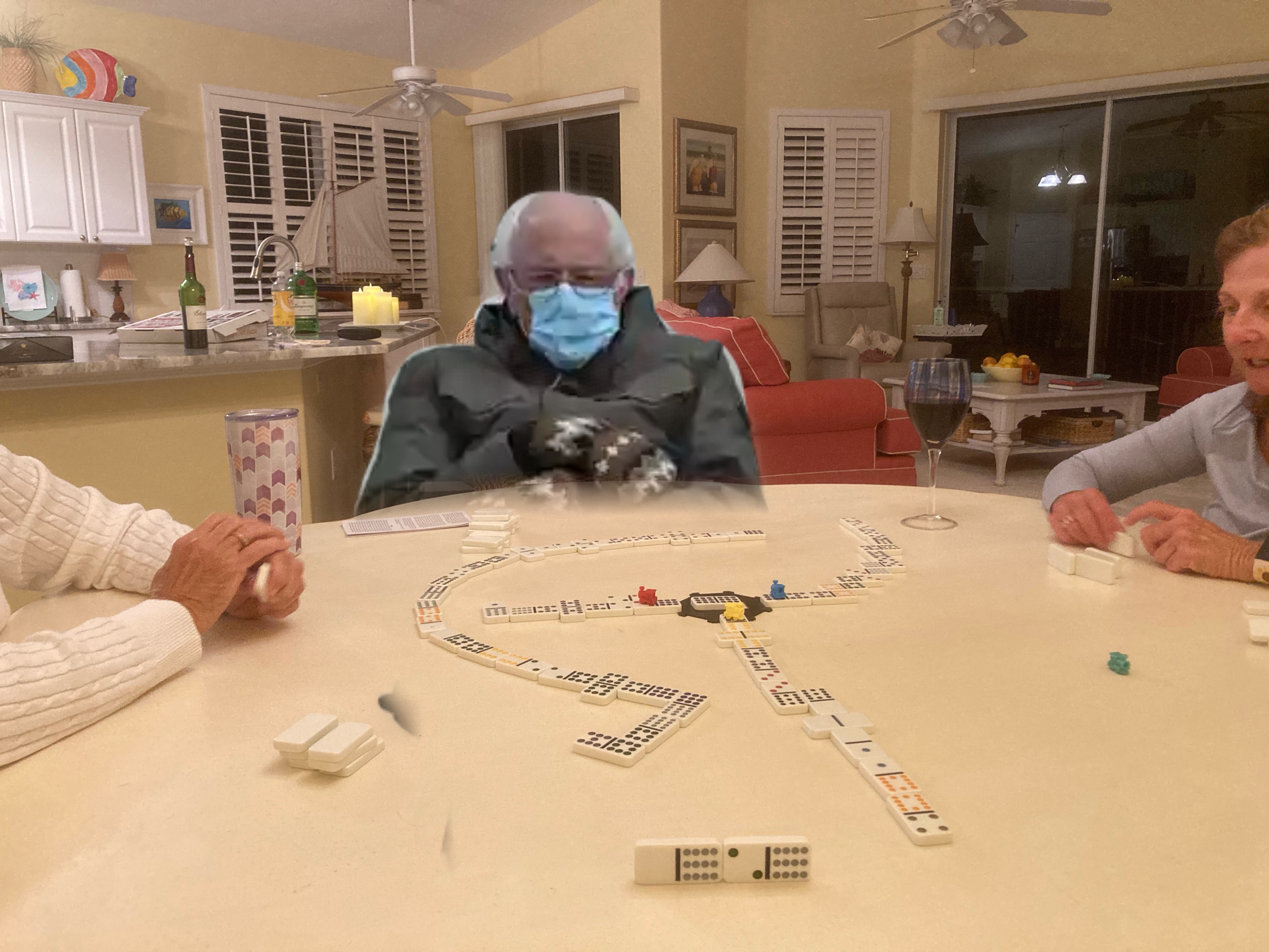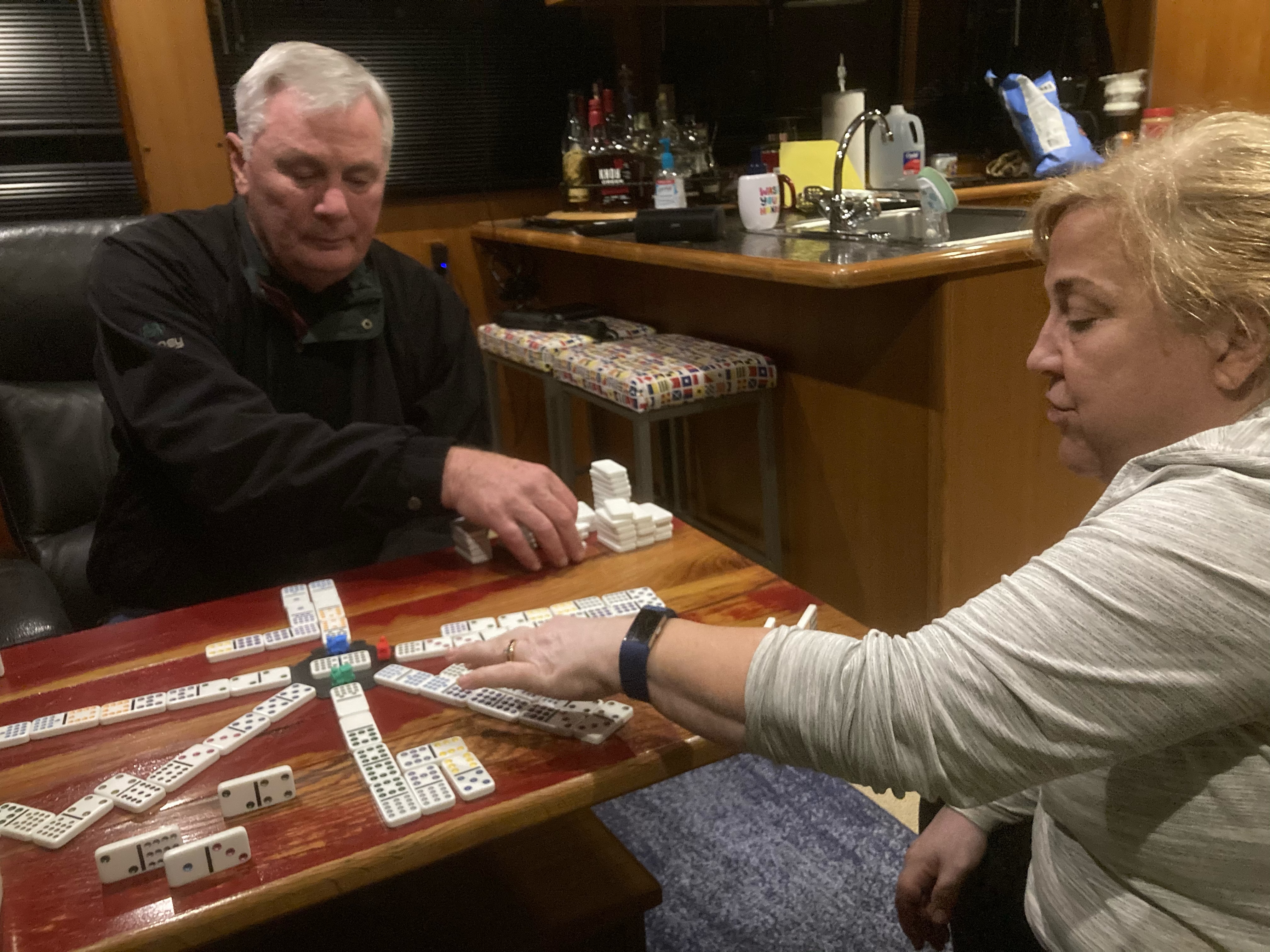 After dinner Deb kicked our butts 2 out of 3 times in dominoes.