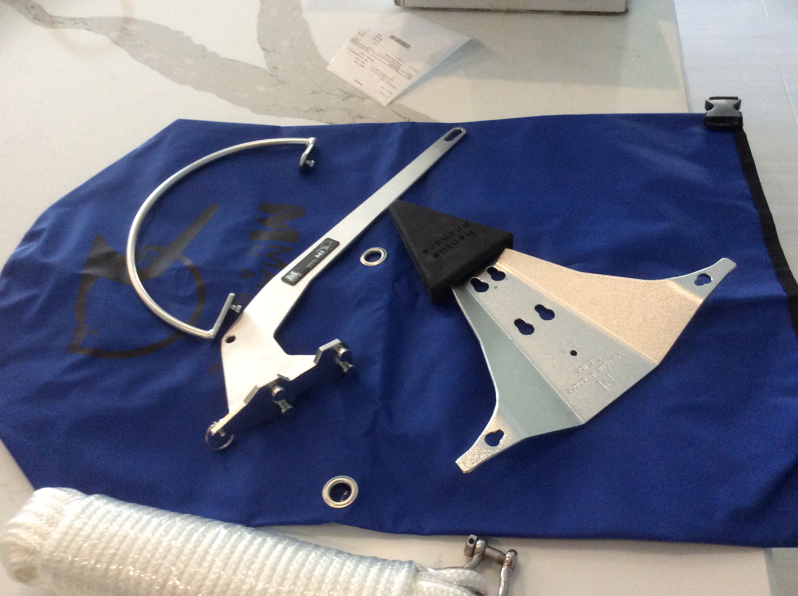 Got out of West Marine for less than a Buck! I needed a piece of stainless steel wire for the anchor shackle so I purchased a 1 foot long piece of stainless cable and unwound it. So now I have a bunch of stainless steel wires.