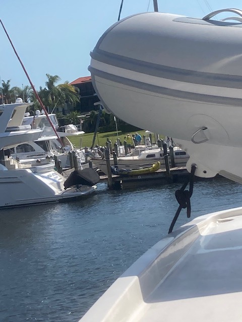 Broke out one of our large fenders for starboard tie ups in the locks along the Okeechobee. Half Pint hangs over just a wee bit on that side.