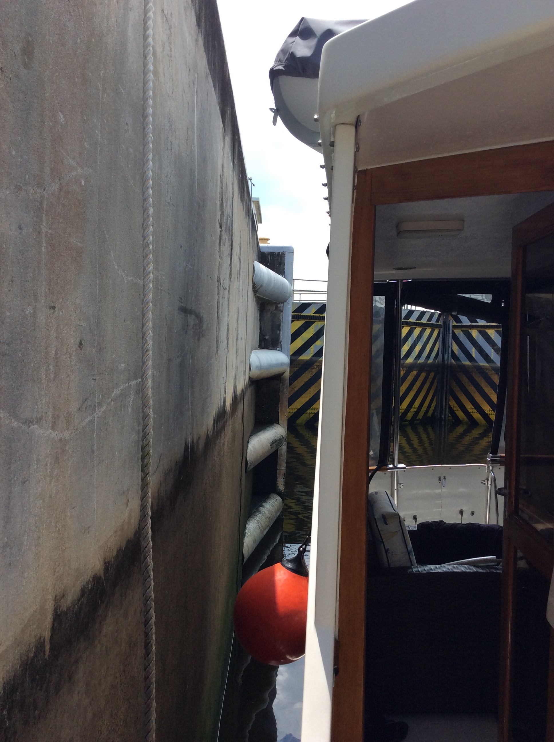 This big ol red fender is just big enough to keep the bow of the new dink from hitting the lock wall. We were in 2 locks today. One of ‘em lifted us a whole 18 inches.