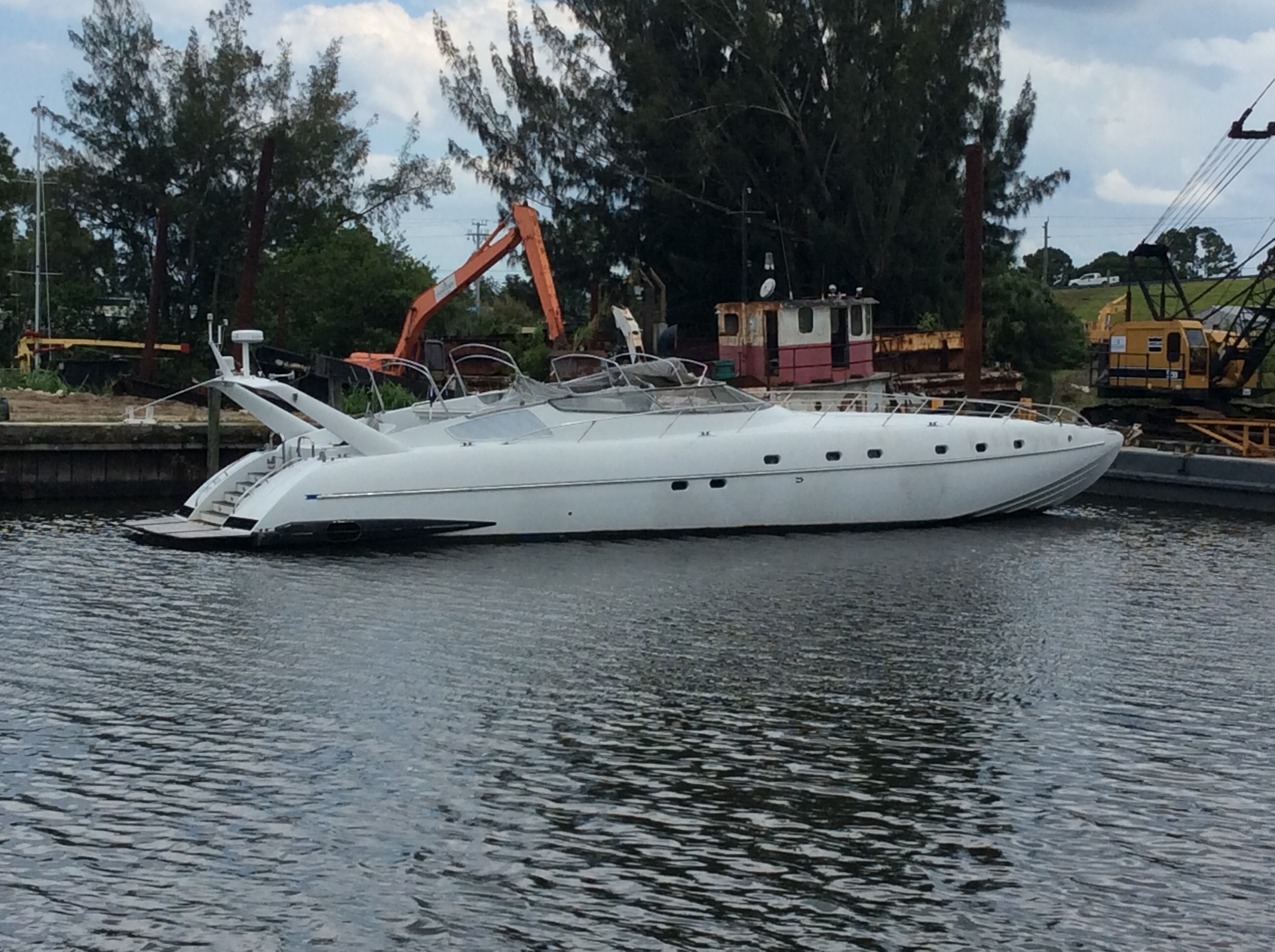 A 50+ foot motor yacht abandoned at anchor.