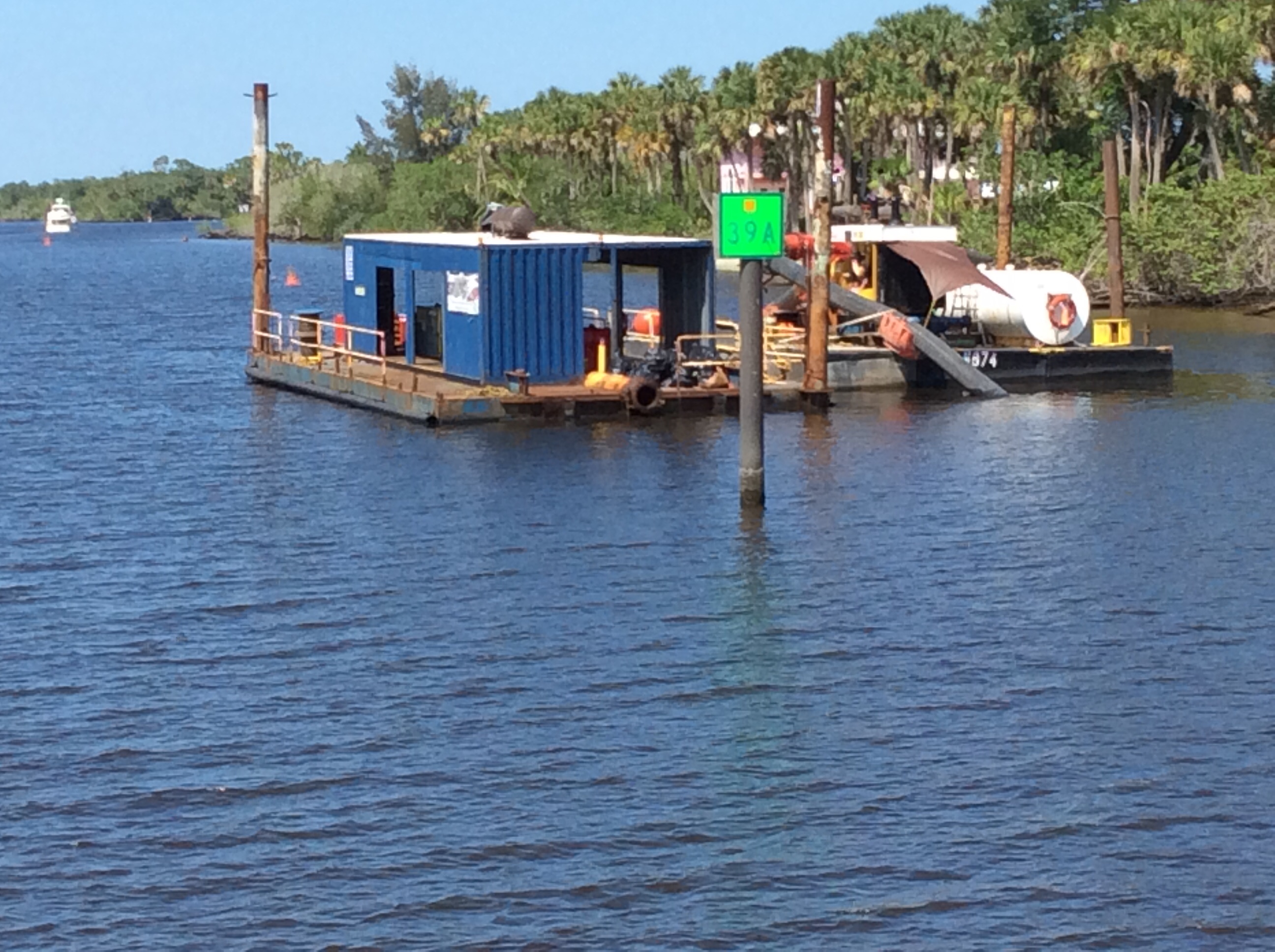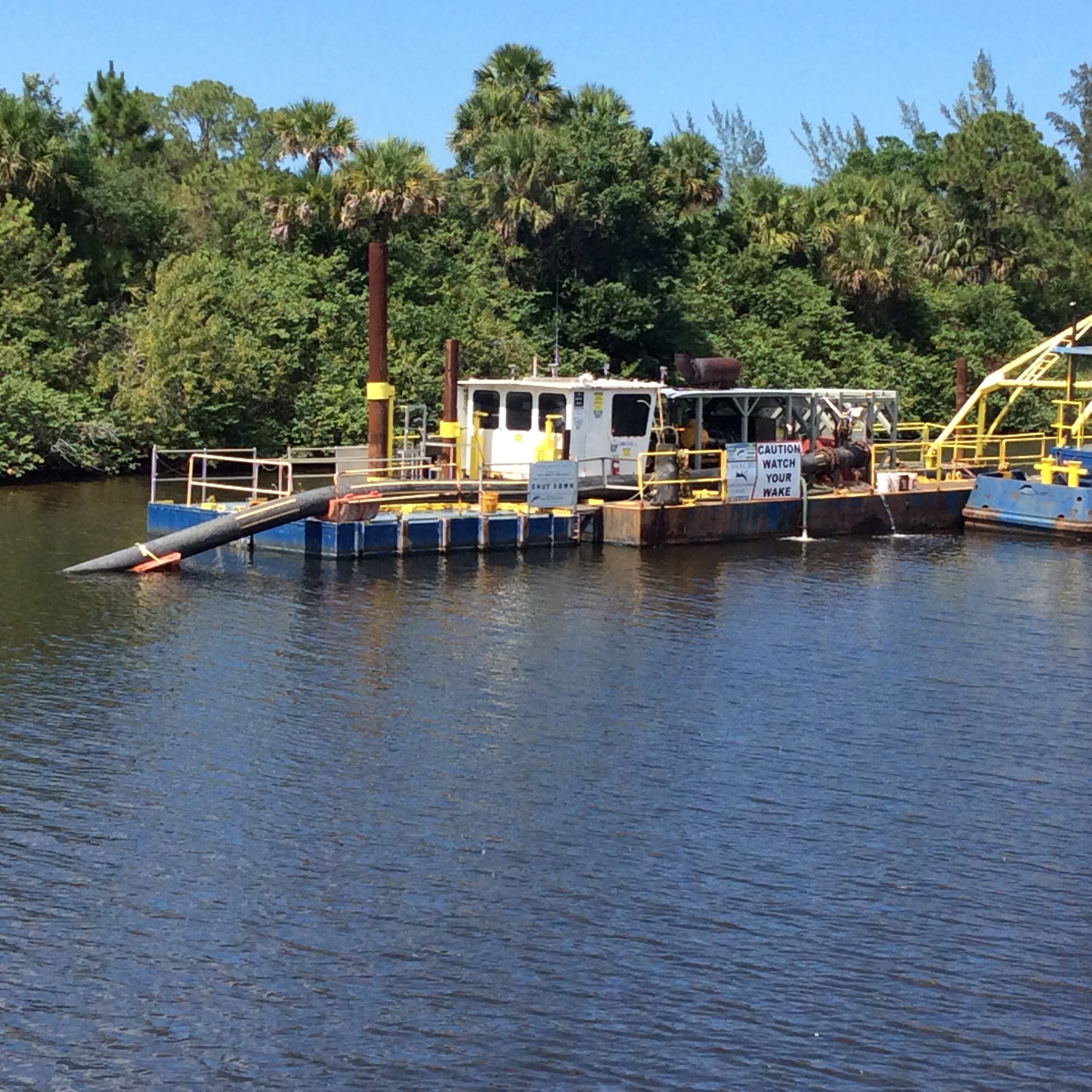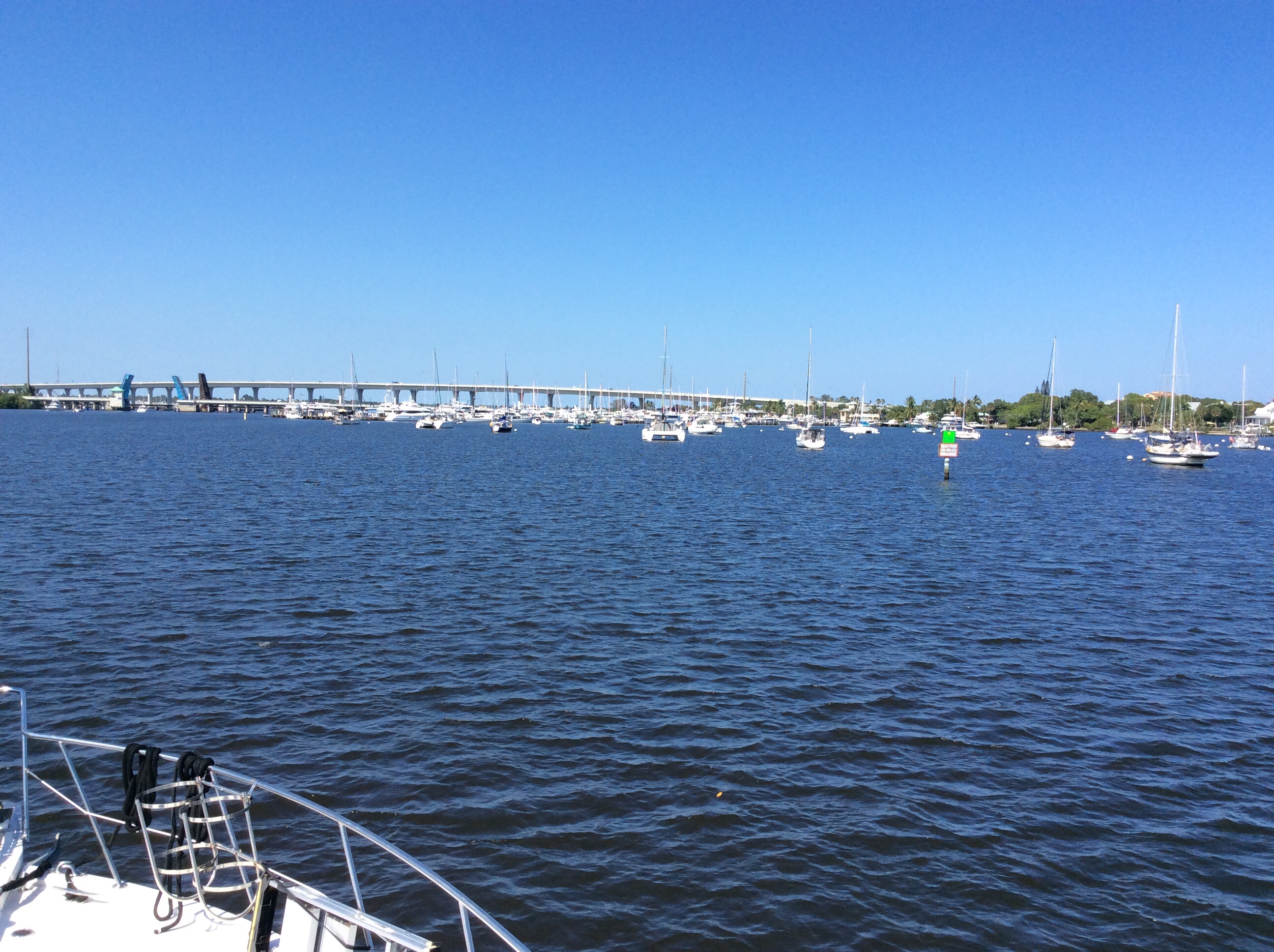 And VIOLA! We arrive on the east coast of Florida at Stuart. We had never seen so many dredging barges! Bet we saaw 20+ and there was some really skinny water. At one point there was a dredge barge with a small sign that read “This Way” with a red arrow indicating a pass on our port side. The barge was blocking the view of a critical channel marker.