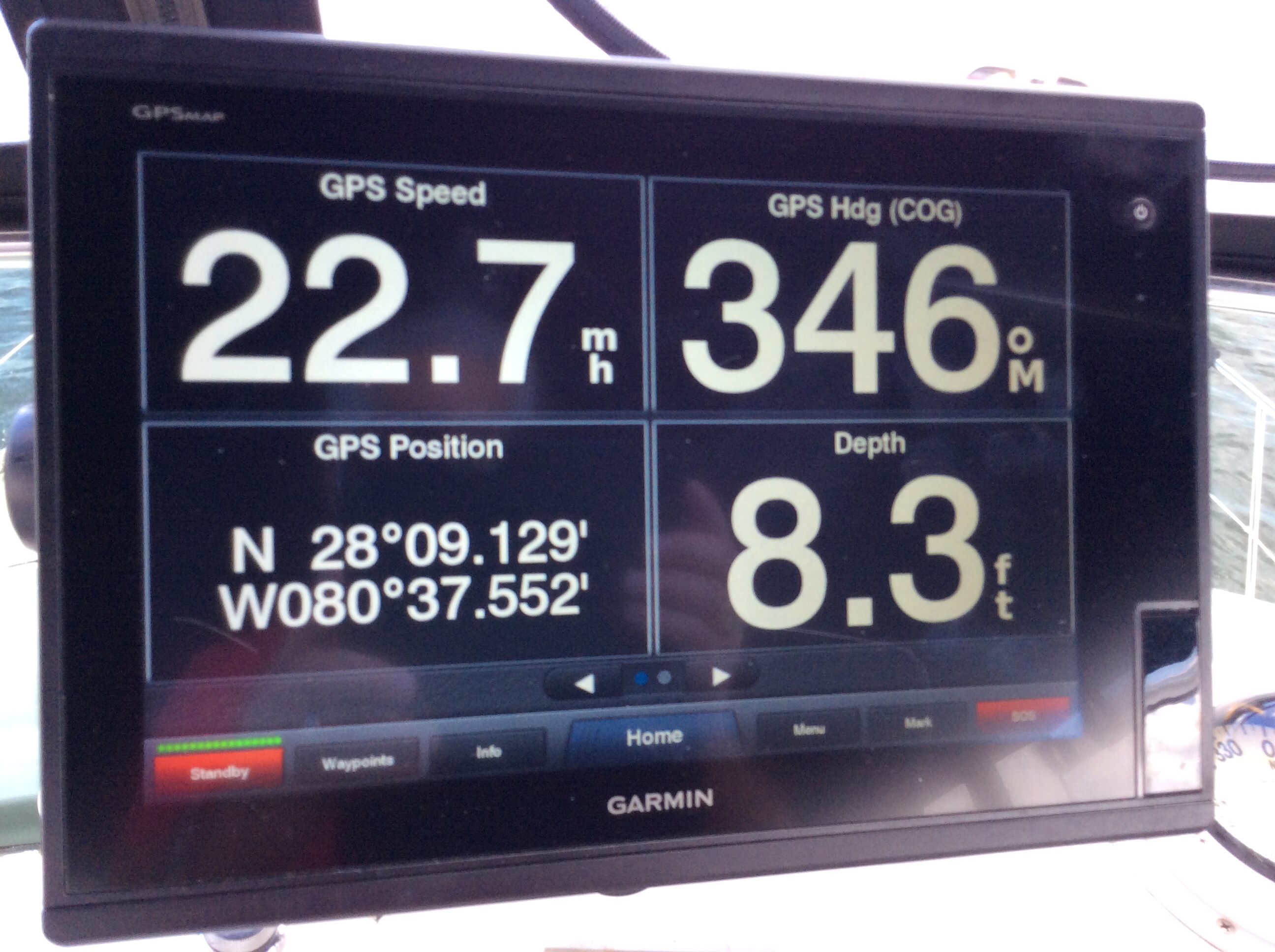After leaving Titusville it was time to blow out the turbo’s. We ran wide open throttle for about 3 miles and achieved a speed of 22.7 MPH. Pretty good for a 40,000 pound boat!