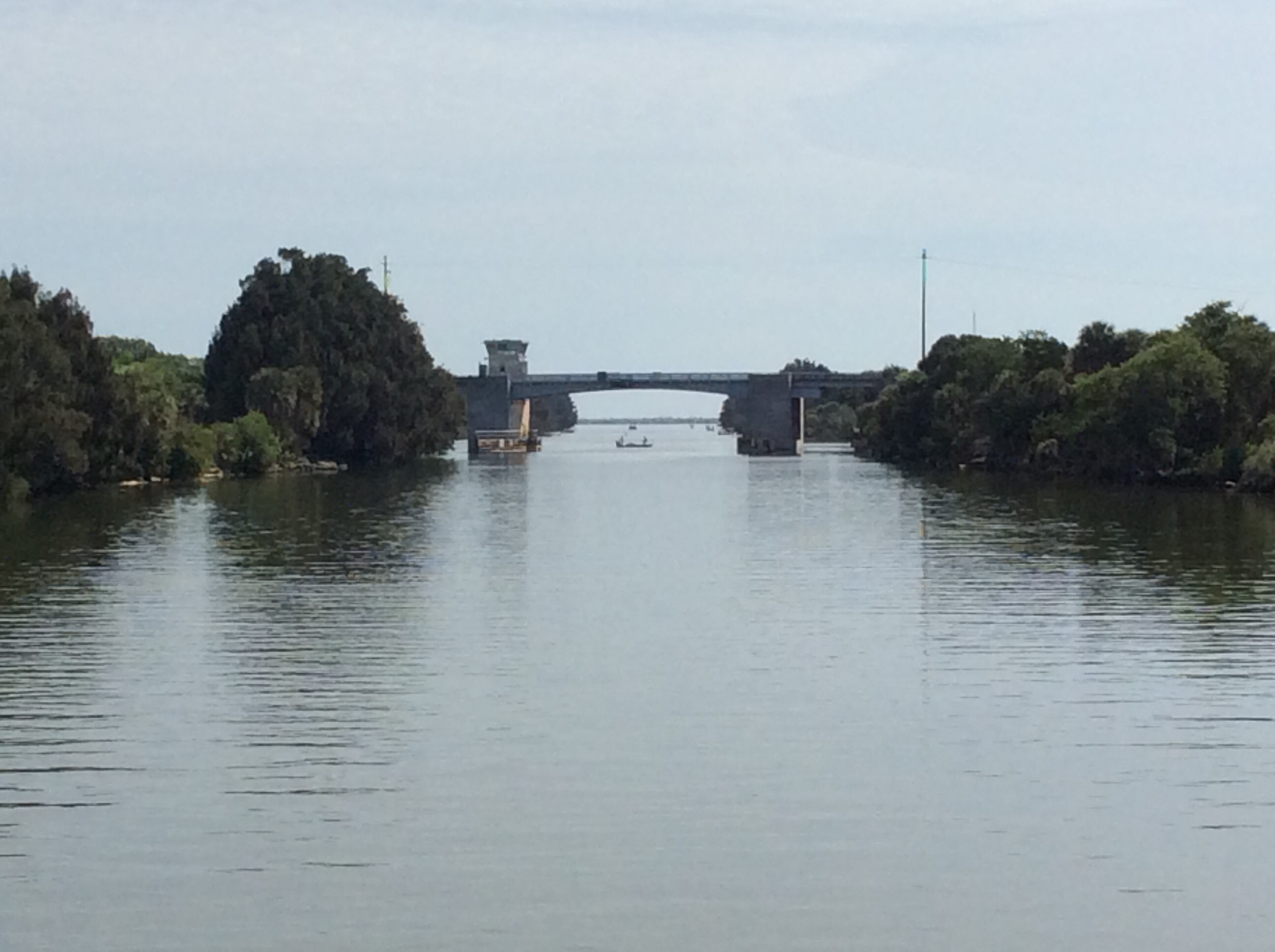 A train bridge that crosses the Okeechobee Waterway. Permantly up position.