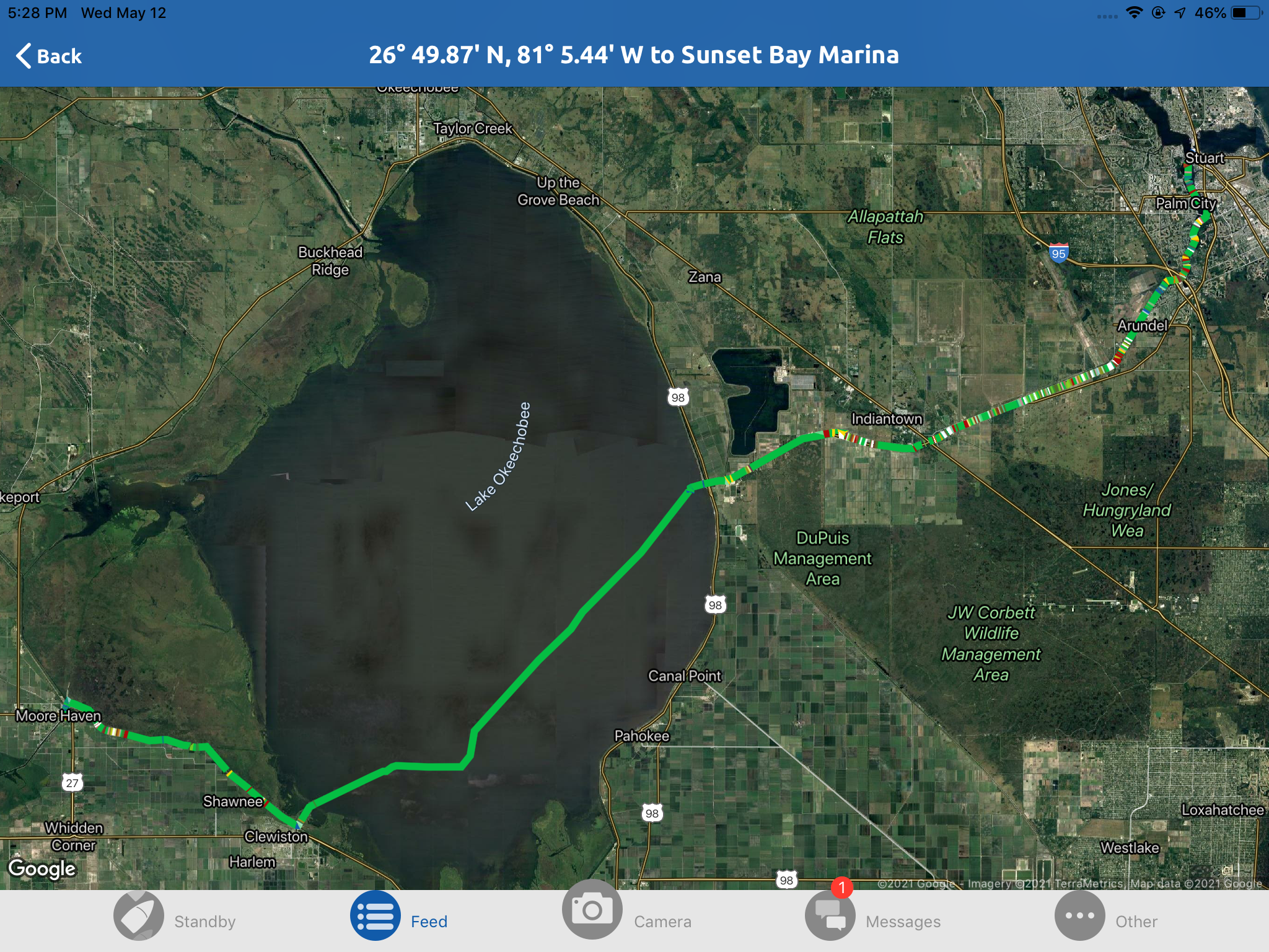 Up early, performed an engine room check and made coffee. Had all day to run the 70 miles to Lake Okeechobee.