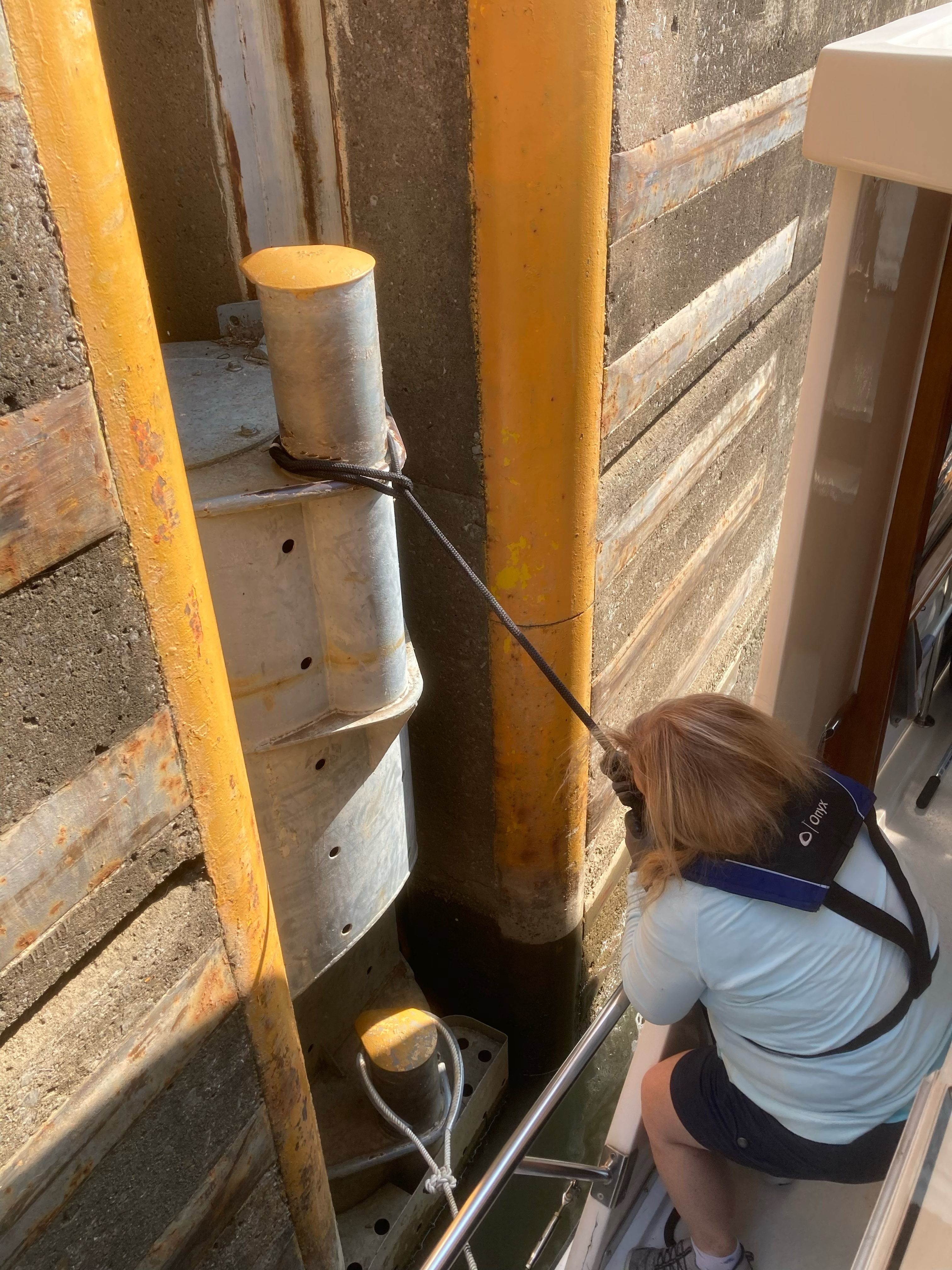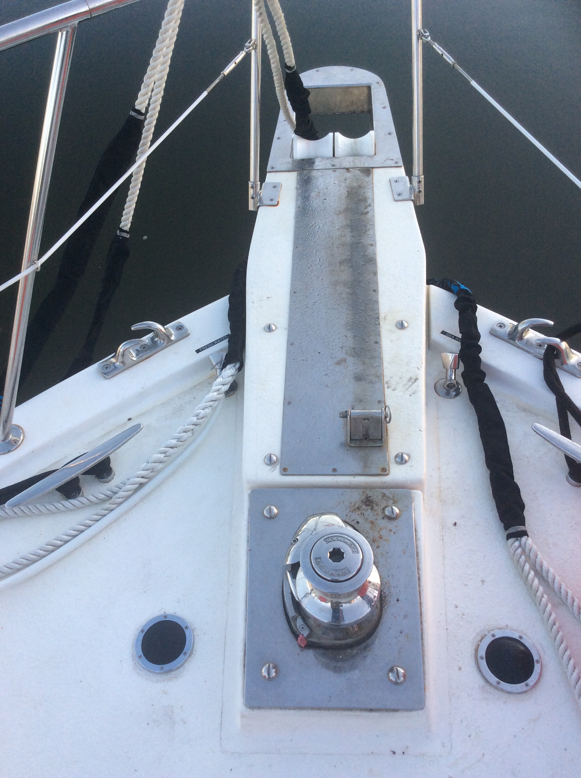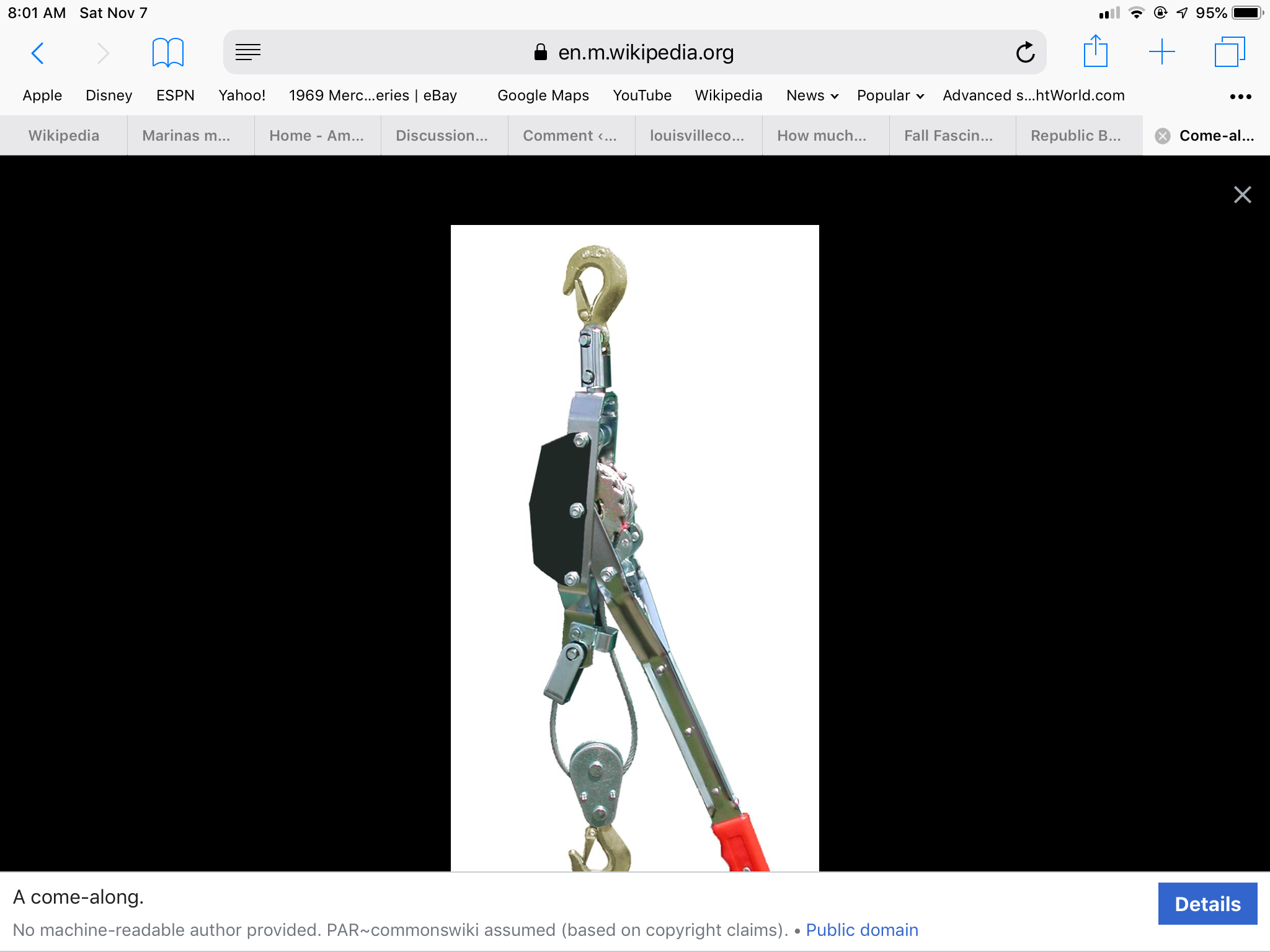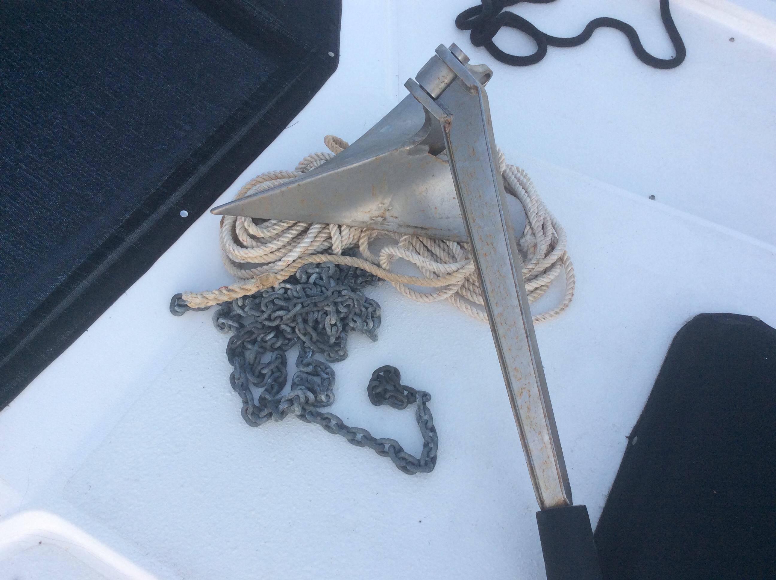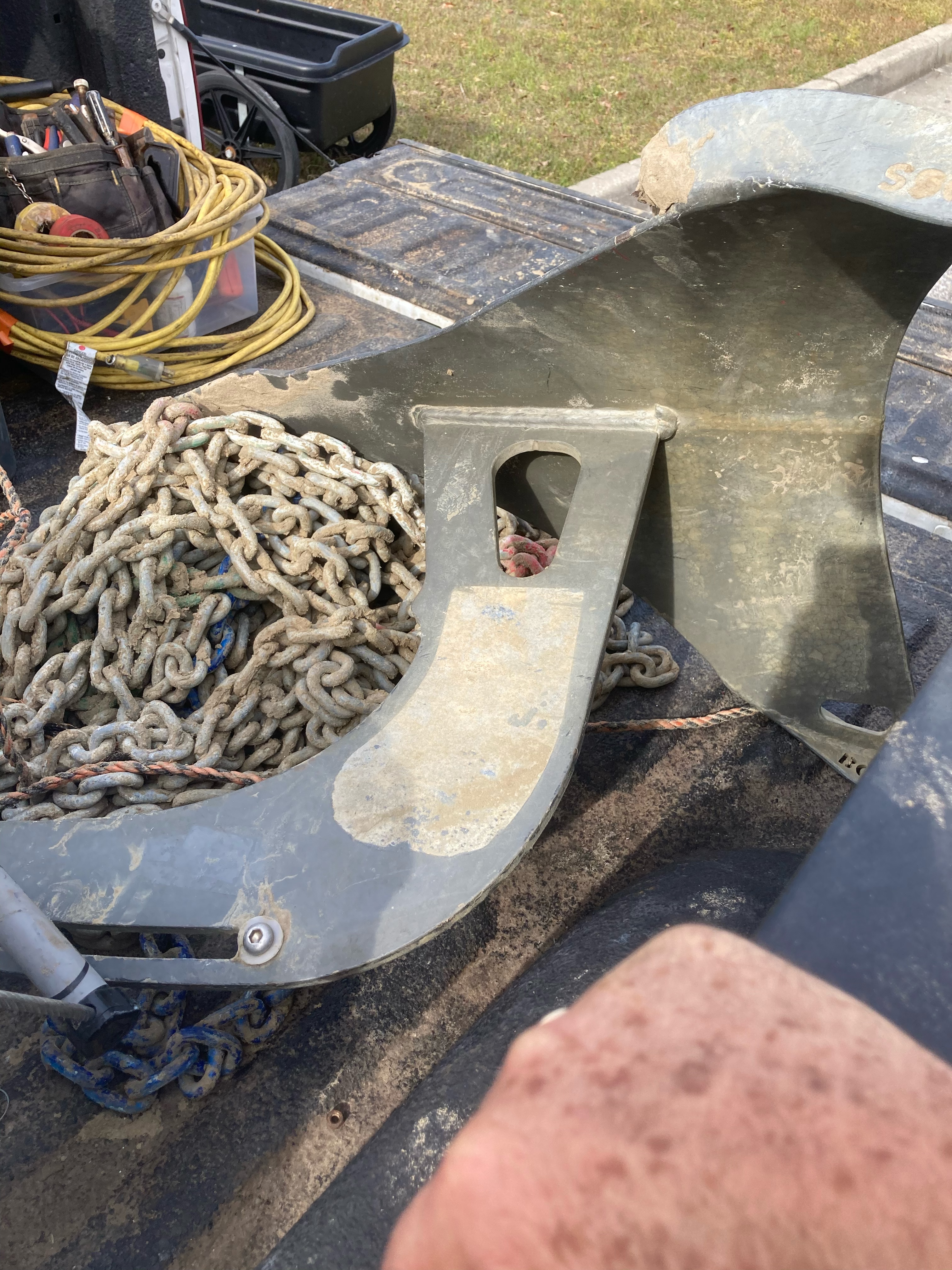 A come-along is a hand operated winch that he connected to a tree on one end and the anchor chain on the other. And then he started to crank…and crank.