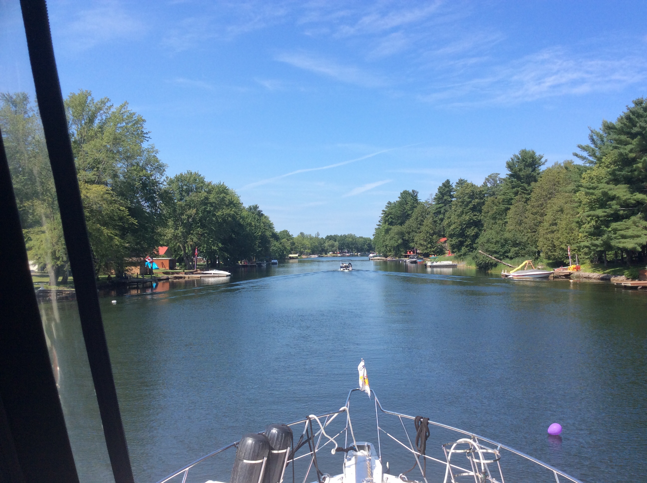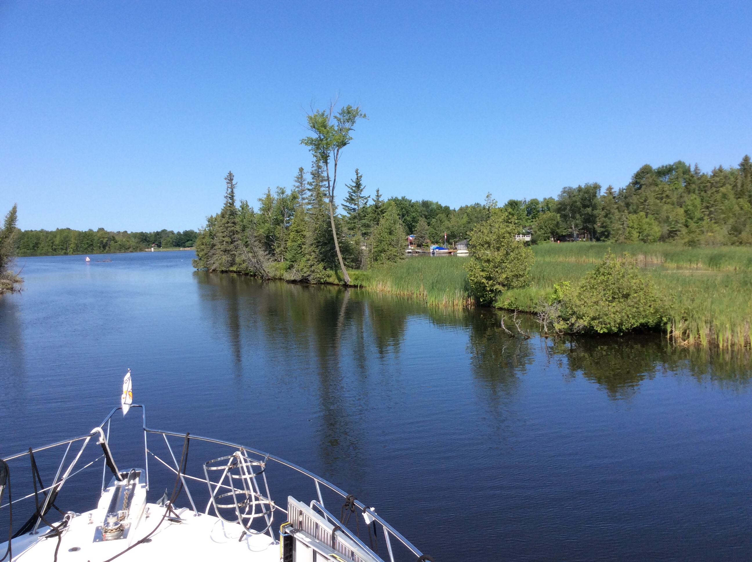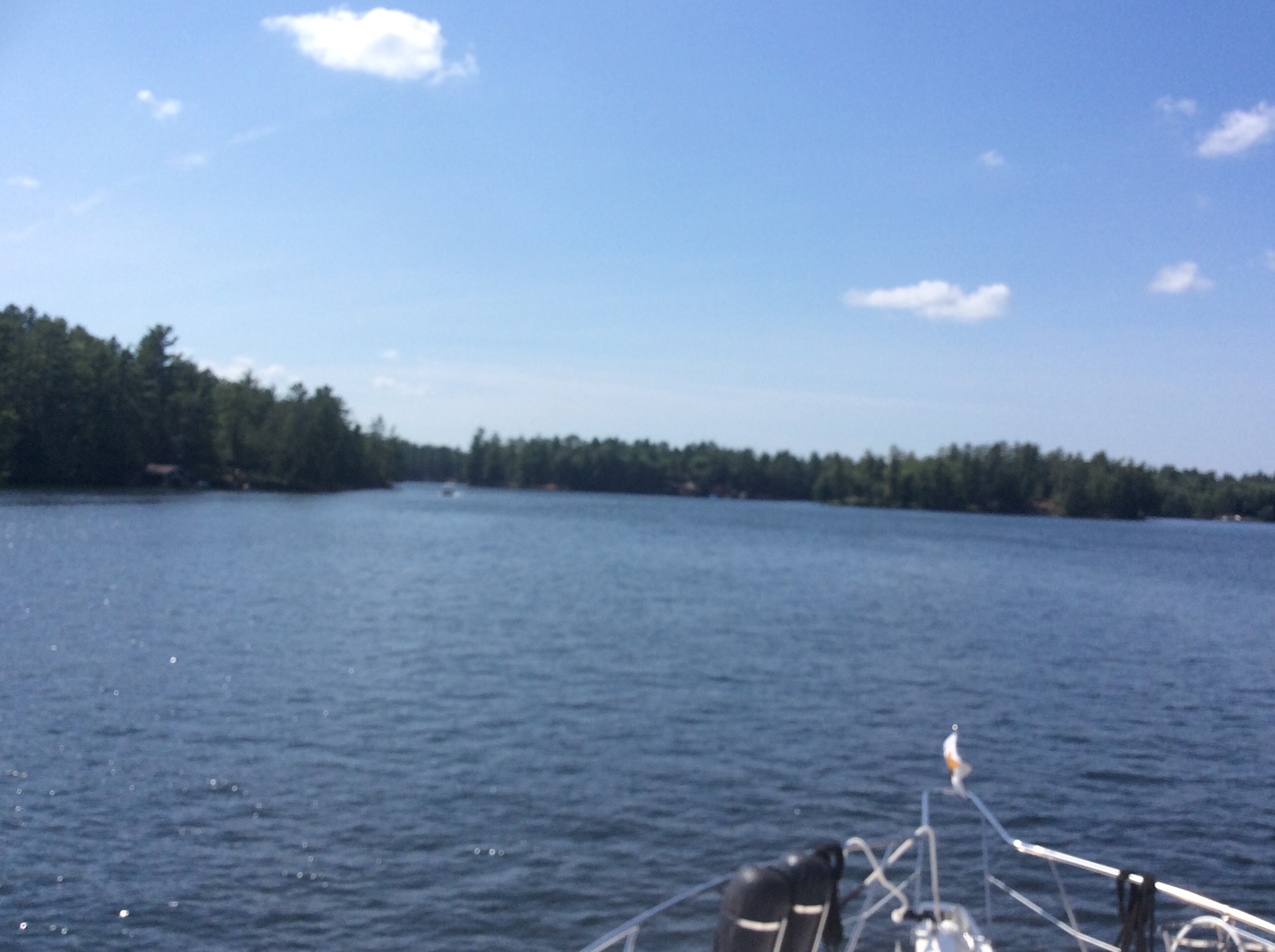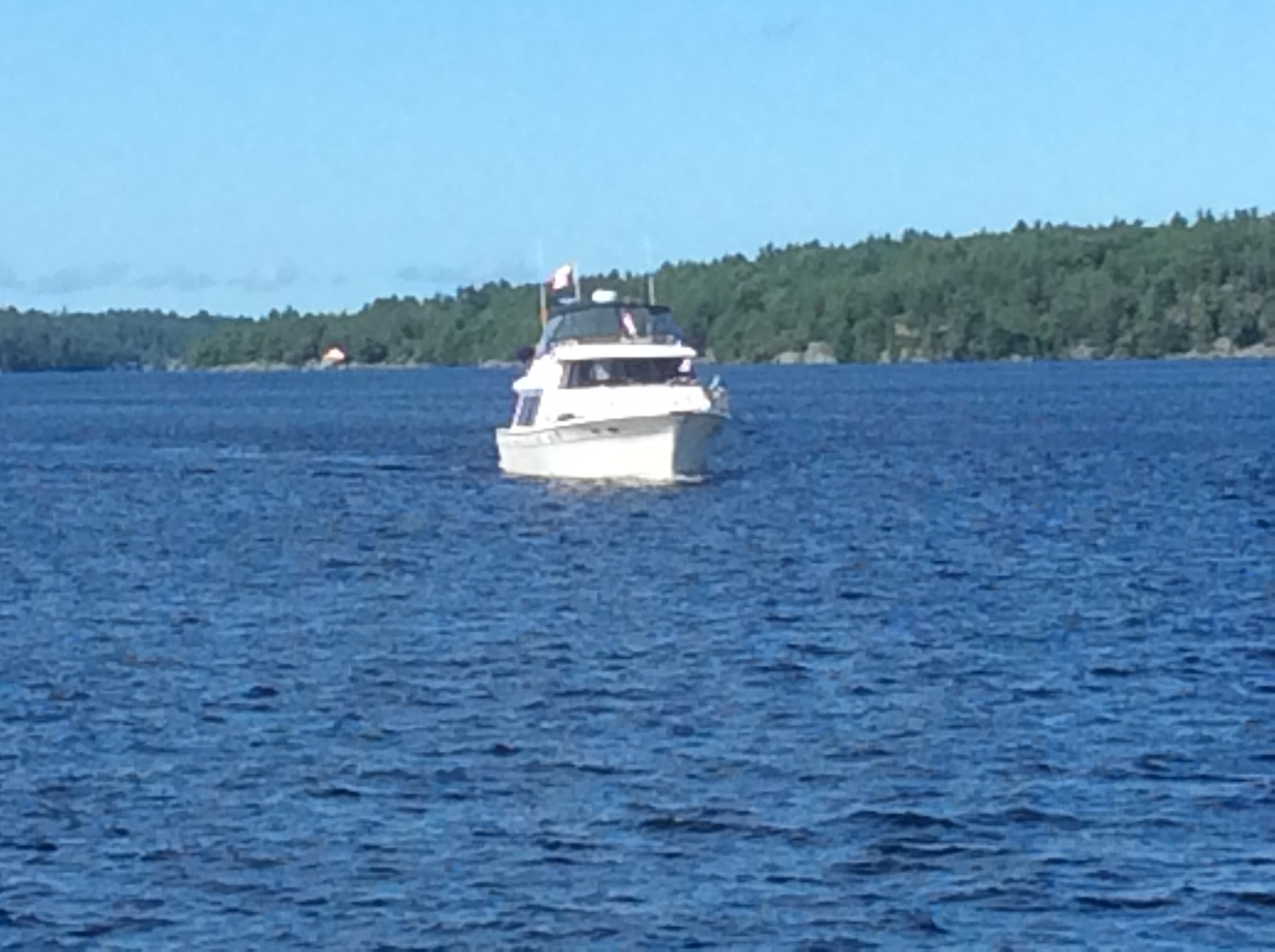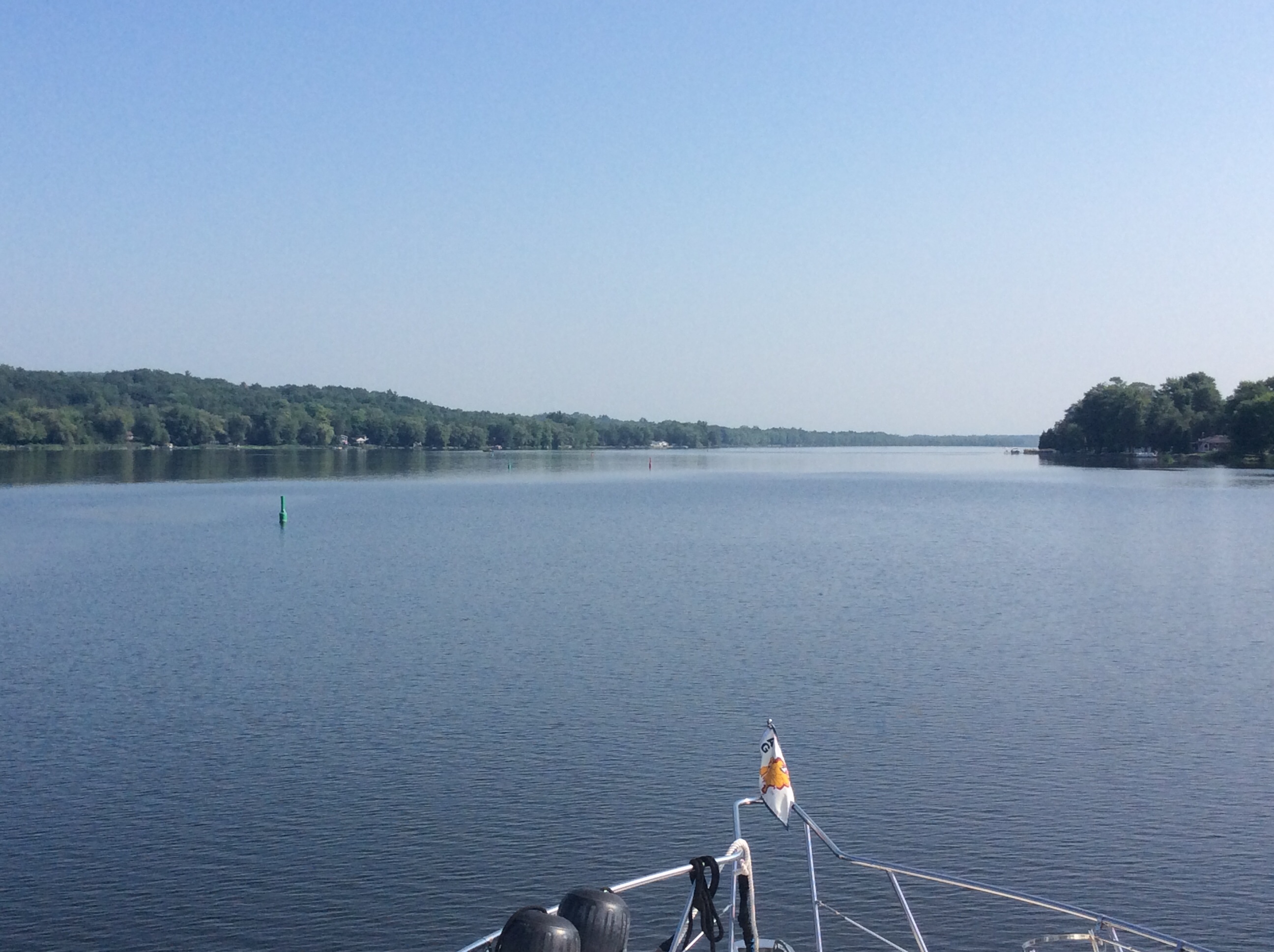 This is an image of our radar screen. Whisky Business’ location is at the bottom of the vertical white line. The large green blob is Golden Daze. It’s green because they are moving away from us at a faster speed. If we were moving faster and closing in on them, it would be red. Below the end of the white line in the center of the image you can see 2 red-ish blobs. Captains Dan and Sam were doing such a splendid job of matching WB’s warp like speed (that would be 9 MPH) that the doppler effect built in to our radar isn’t really sure if we are going faster or slower. Maybe fast-ish.