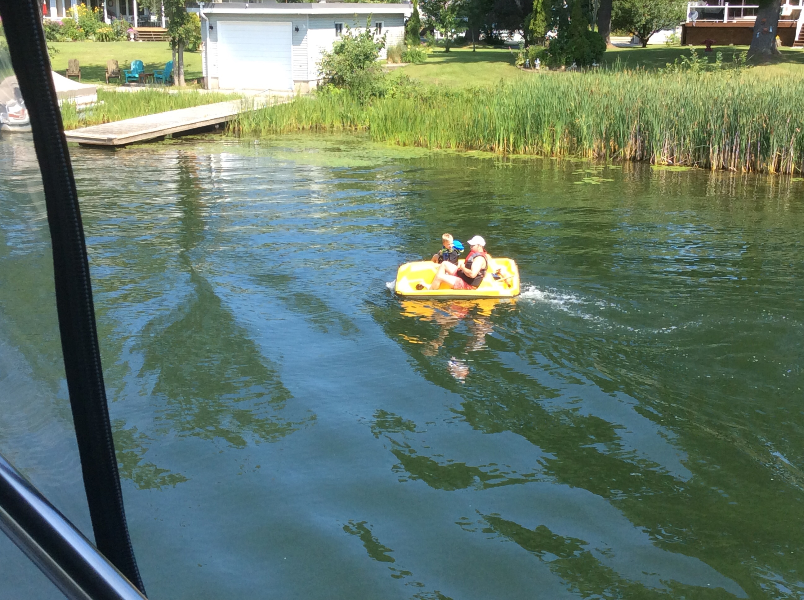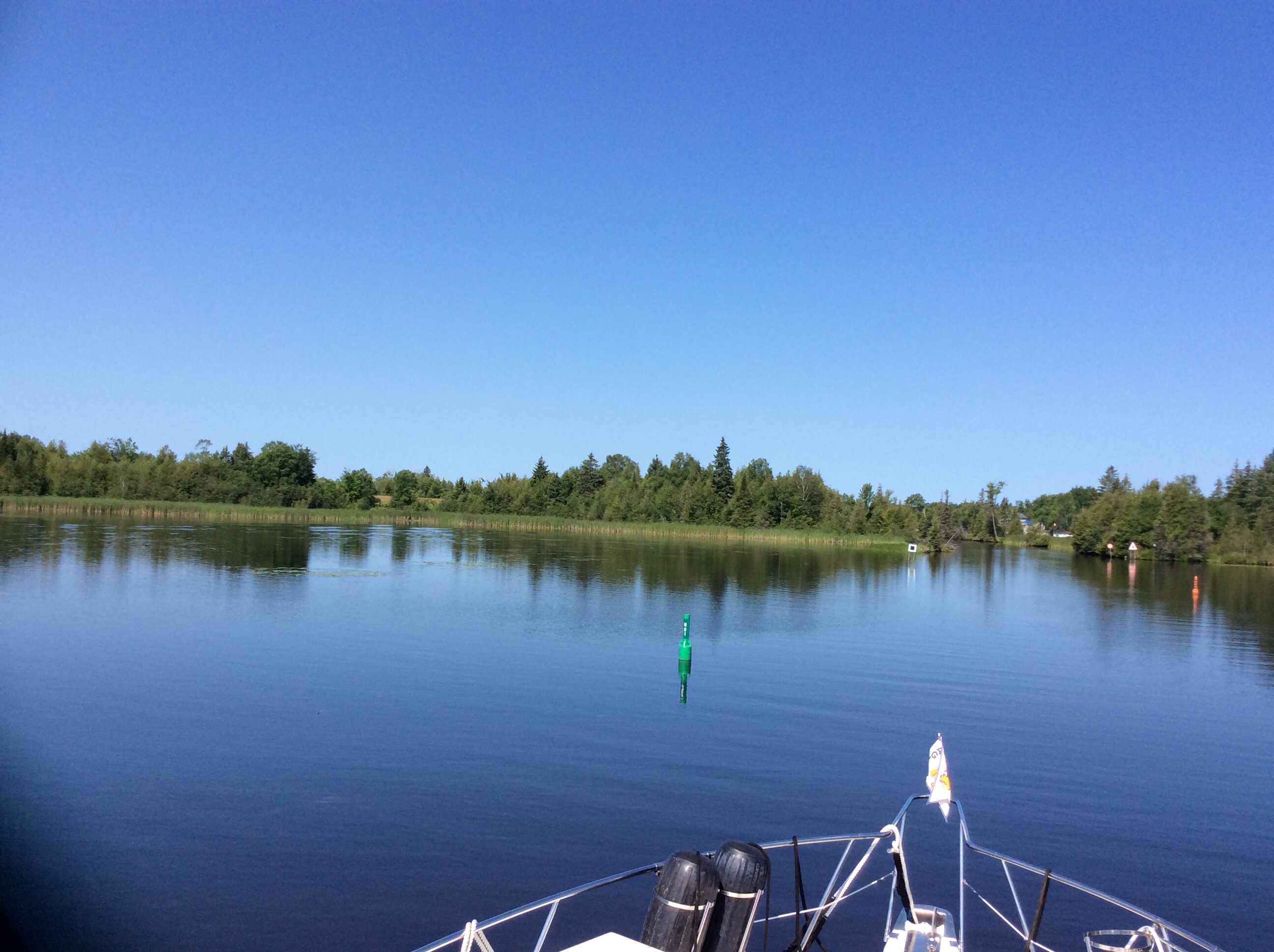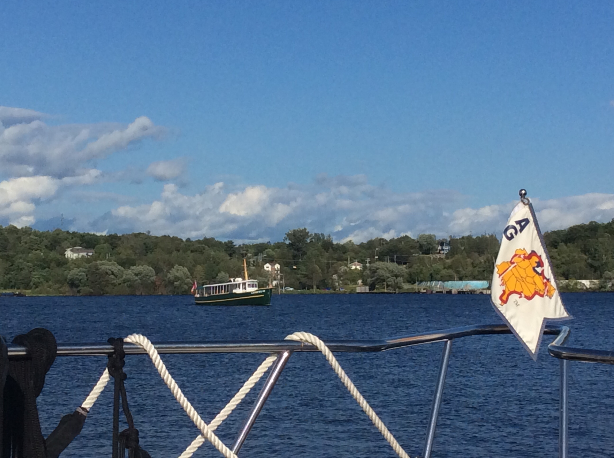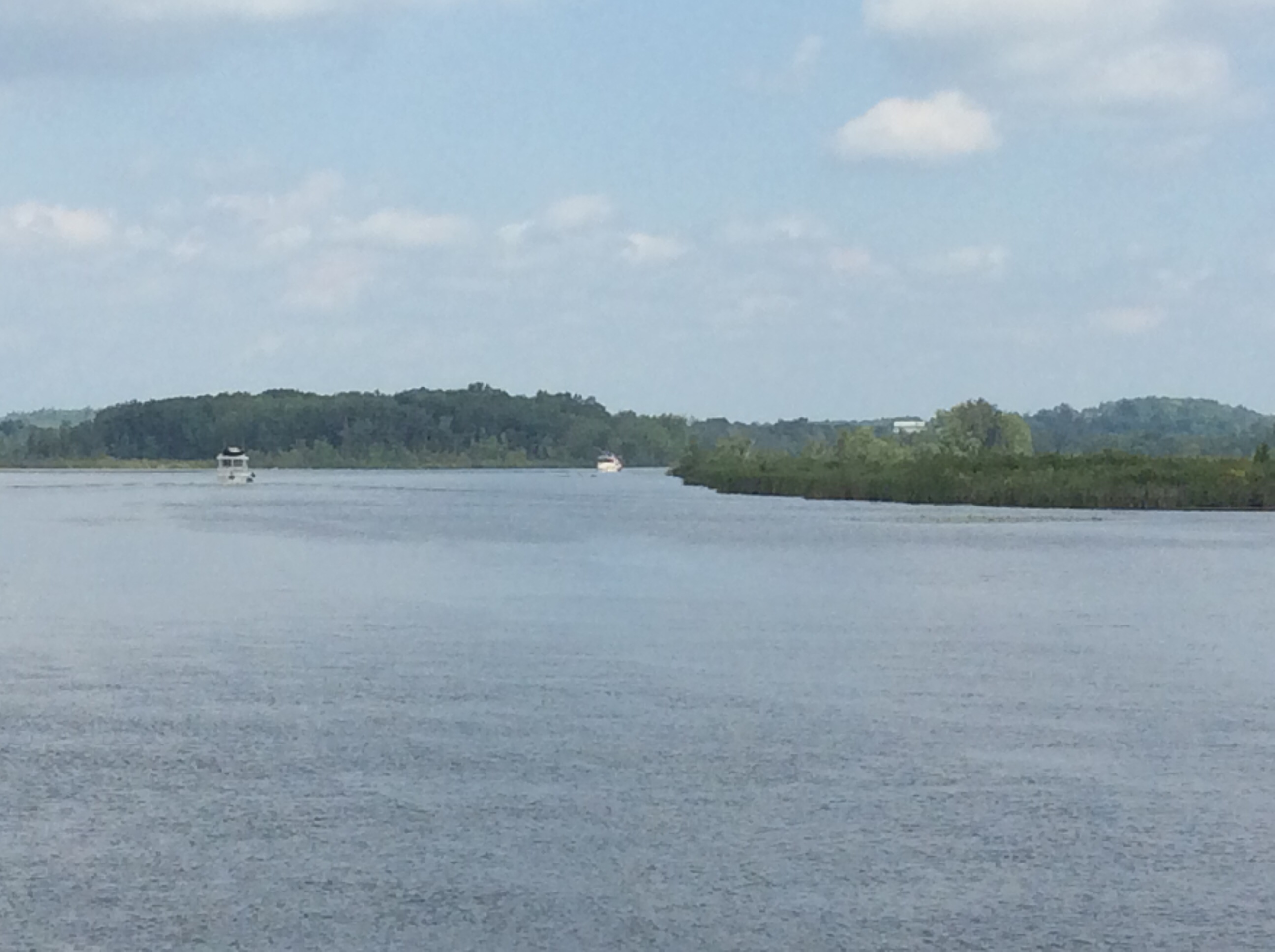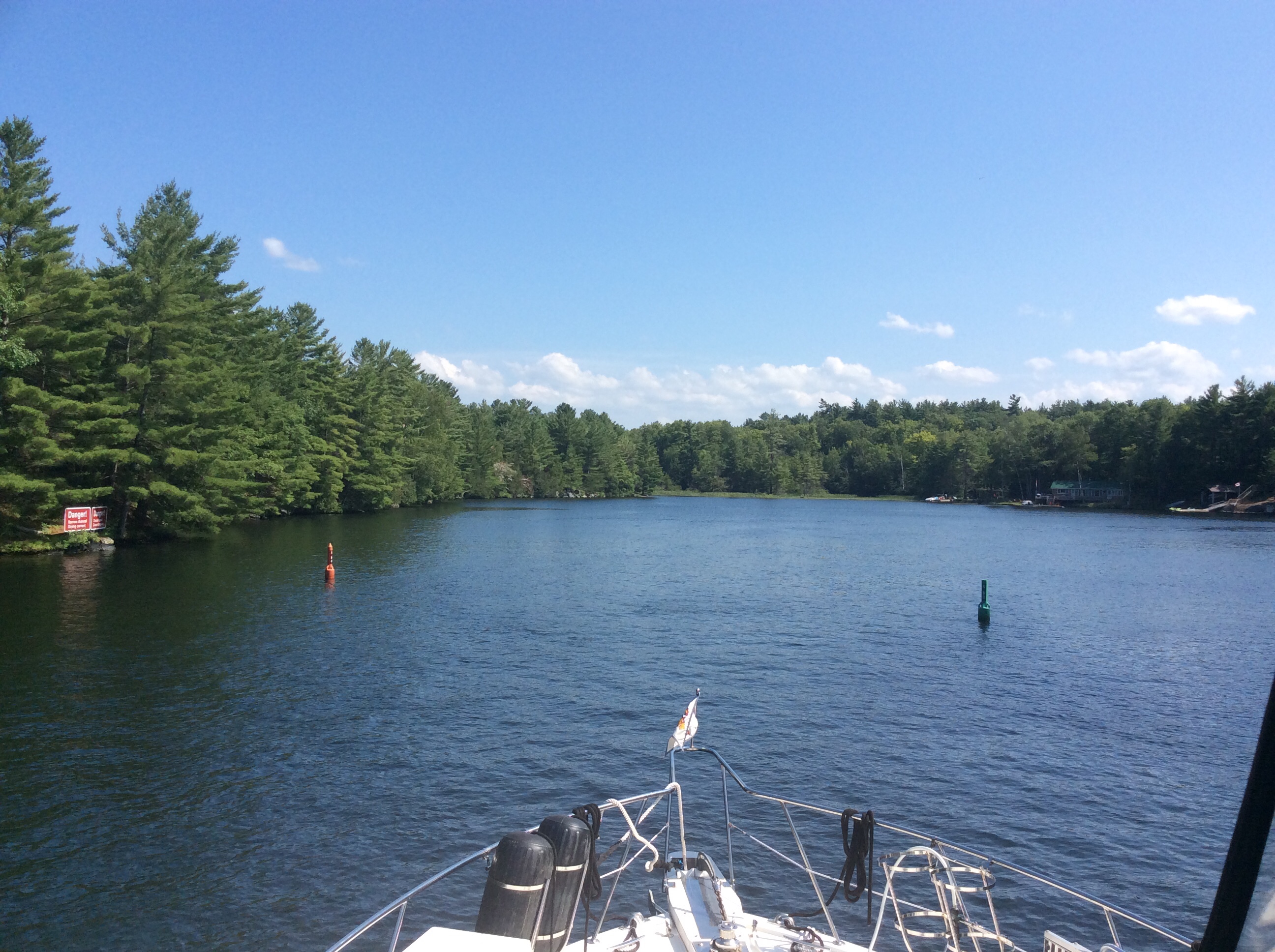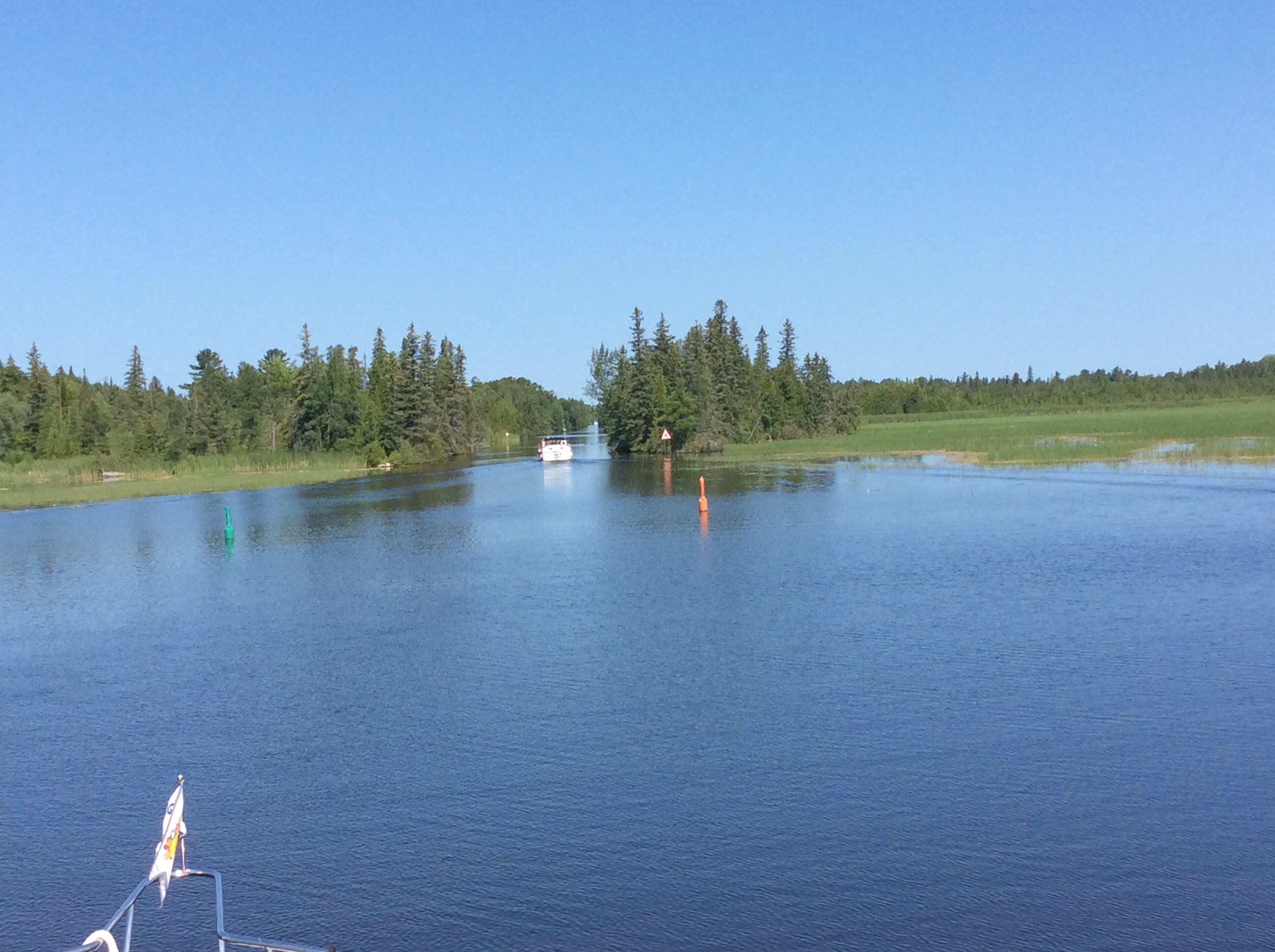 This is an image of our radar screen. Whisky Business’ location is at the bottom of the vertical white line. The large green blob is Golden Daze. It’s green because they are moving away from us at a faster speed. If we were moving faster and closing in on them, it would be red. Below the end of the white line in the center of the image you can see 2 red-ish blobs. Captains Dan and Sam were doing such a splendid job of matching WB’s warp like speed (that would be 9 MPH) that the doppler effect built in to our radar isn’t really sure if we are going faster or slower. Maybe fast-ish.