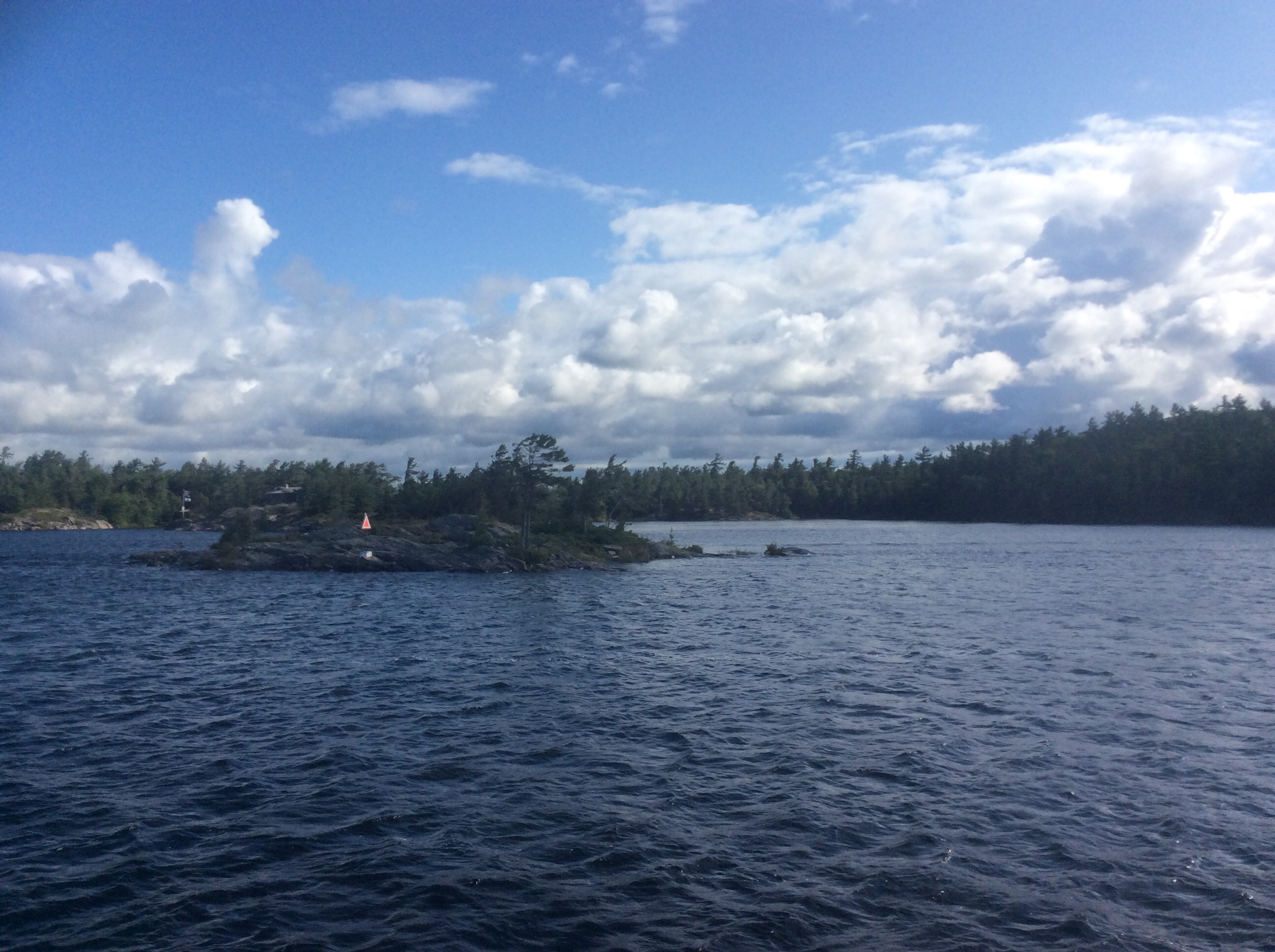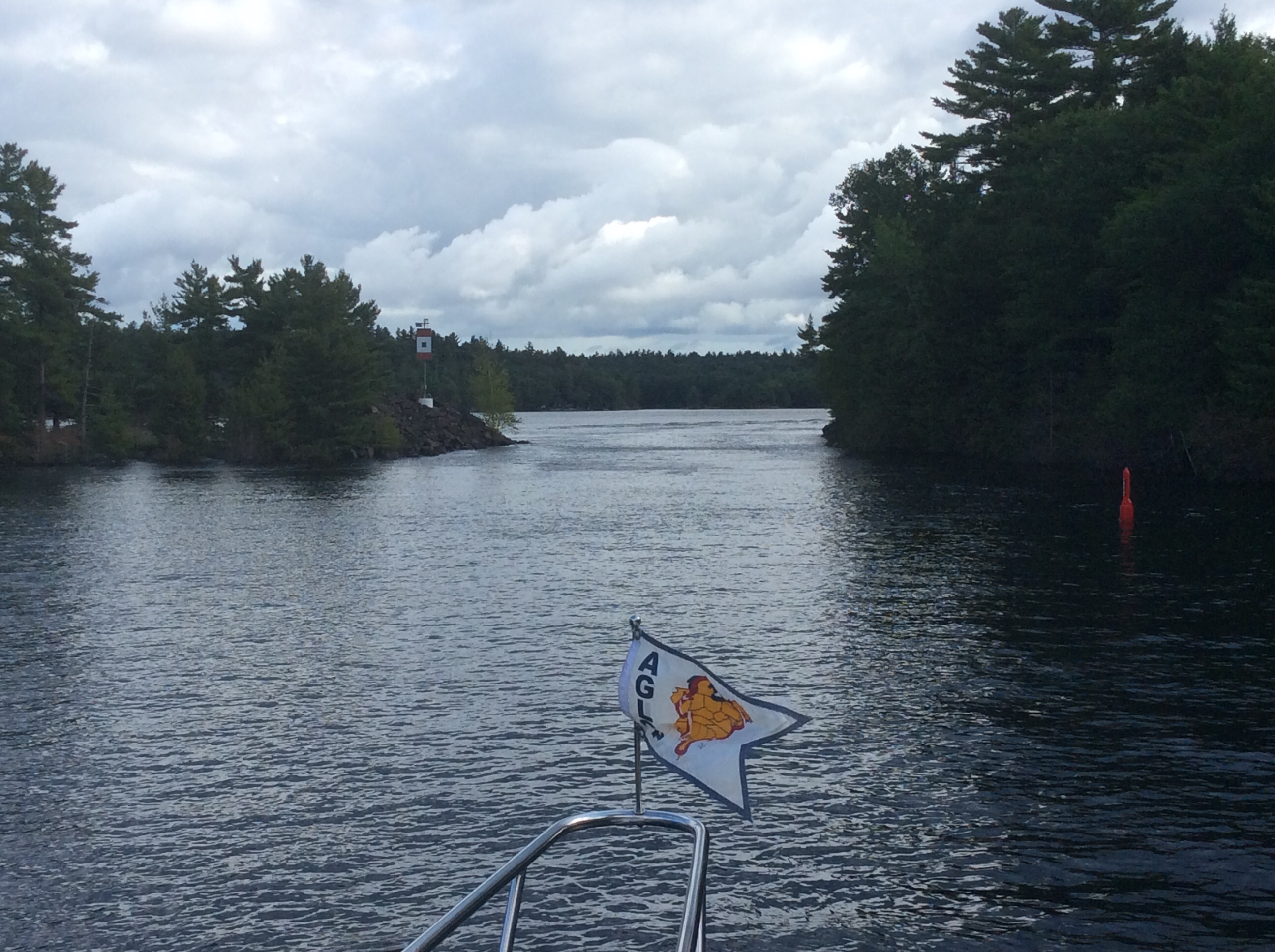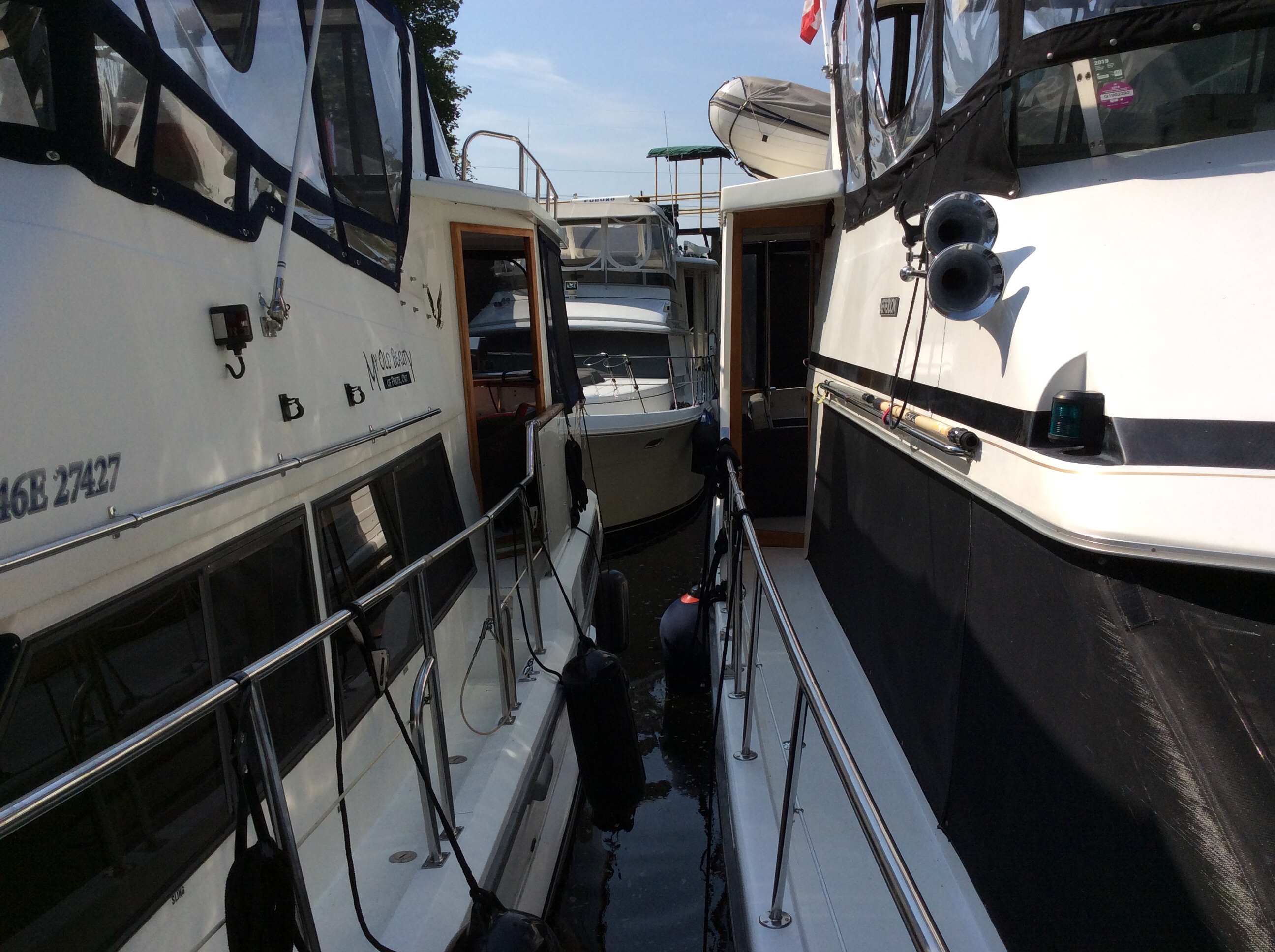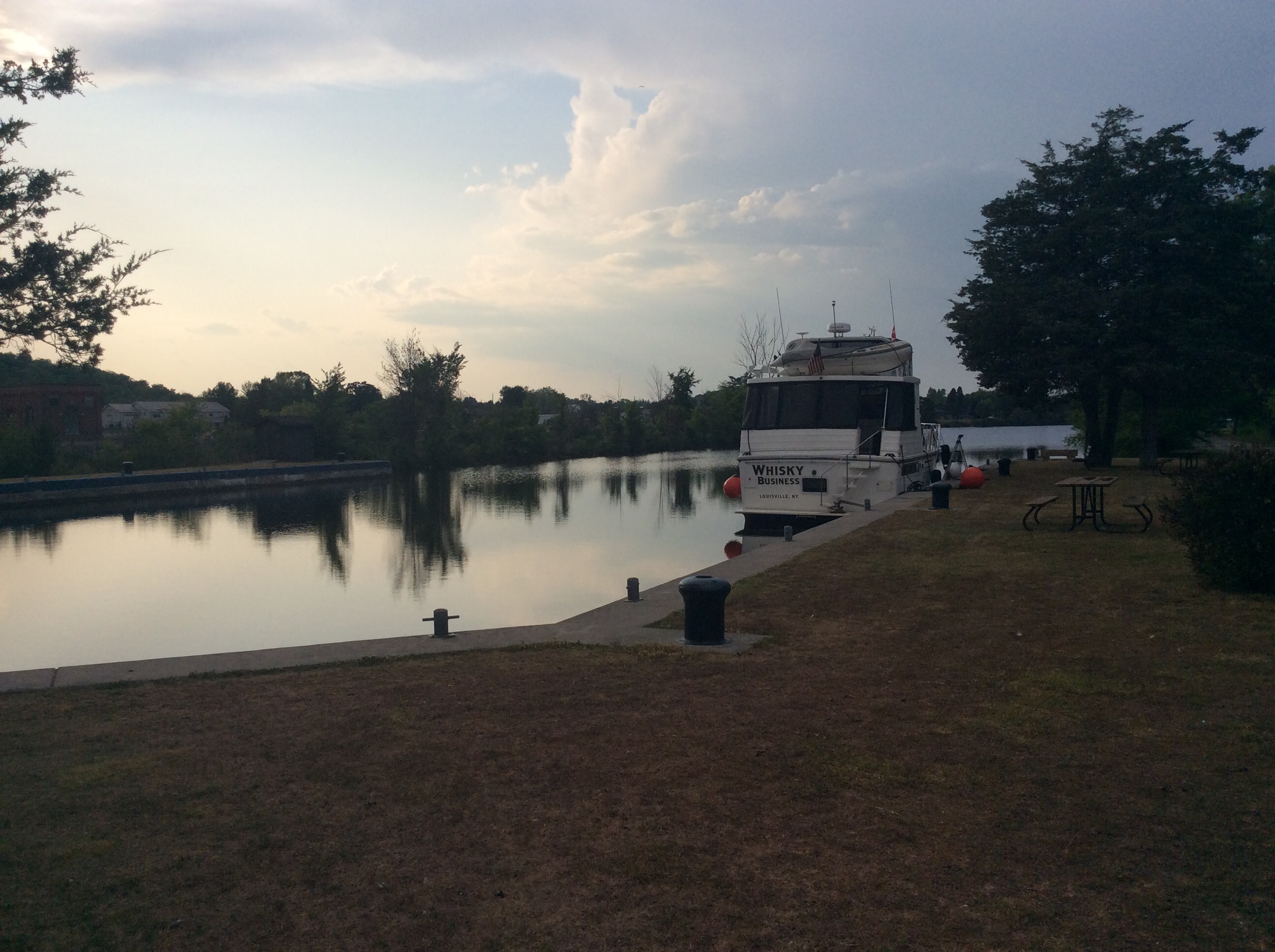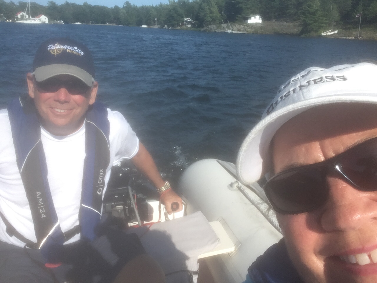 This is an image of our radar screen. Whisky Business’ location is at the bottom of the vertical white line. The large green blob is Golden Daze. It’s green because they are moving away from us at a faster speed. If we were moving faster and closing in on them, it would be red. Below the end of the white line in the center of the image you can see 2 red-ish blobs. Captains Dan and Sam were doing such a splendid job of matching WB’s warp like speed (that would be 9 MPH) that the doppler effect built in to our radar isn’t really sure if we are going faster or slower. Maybe fast-ish.