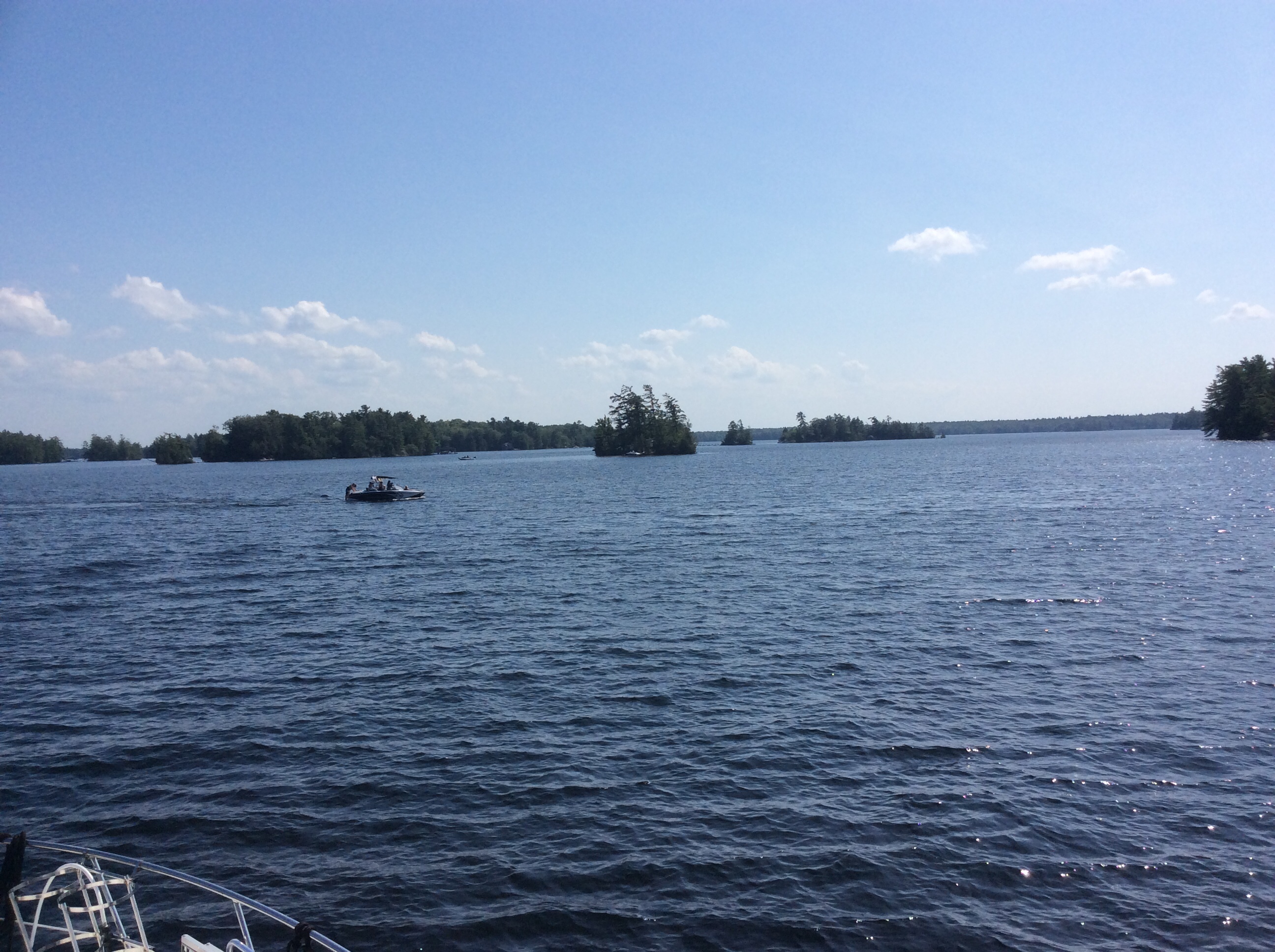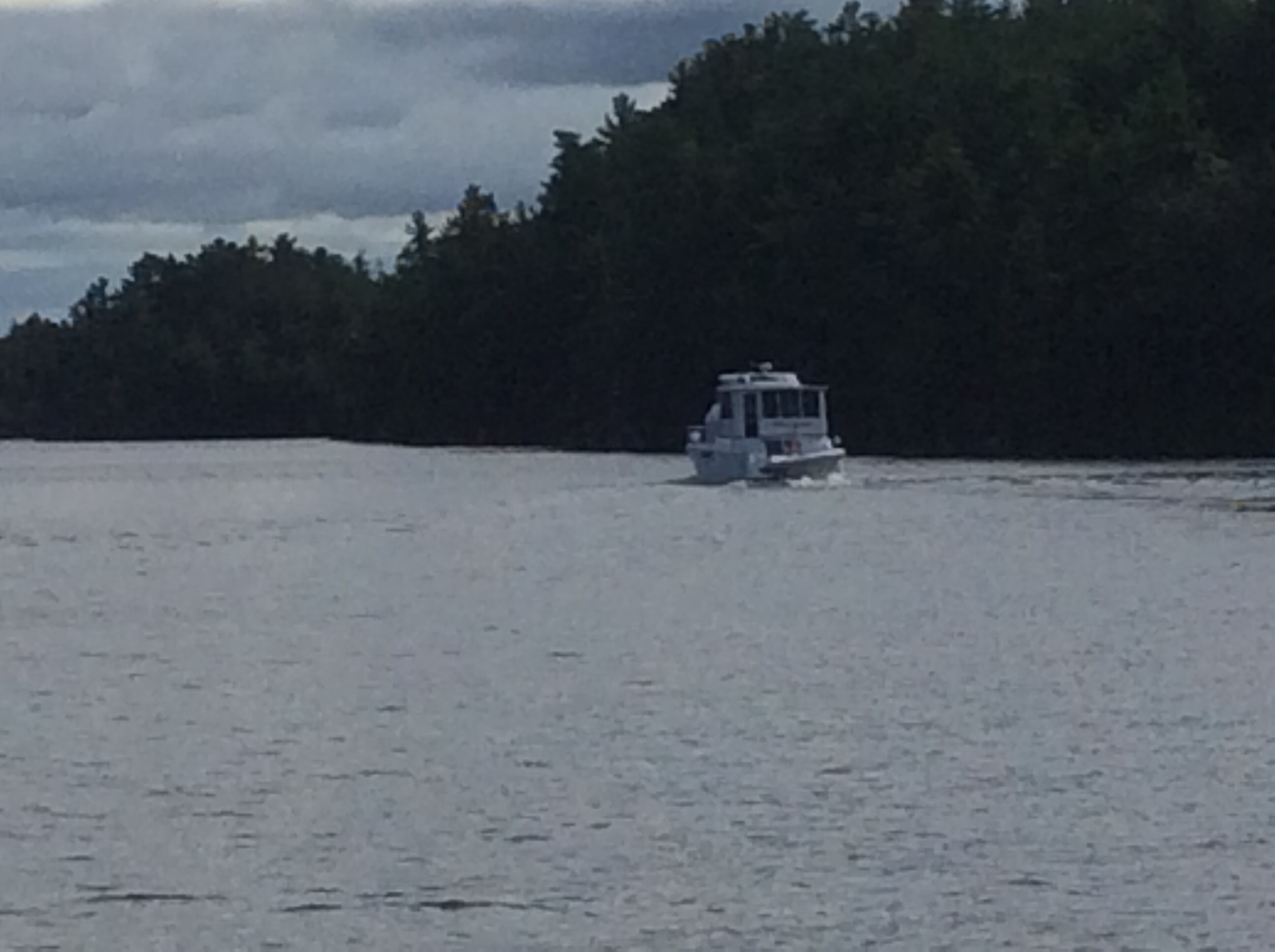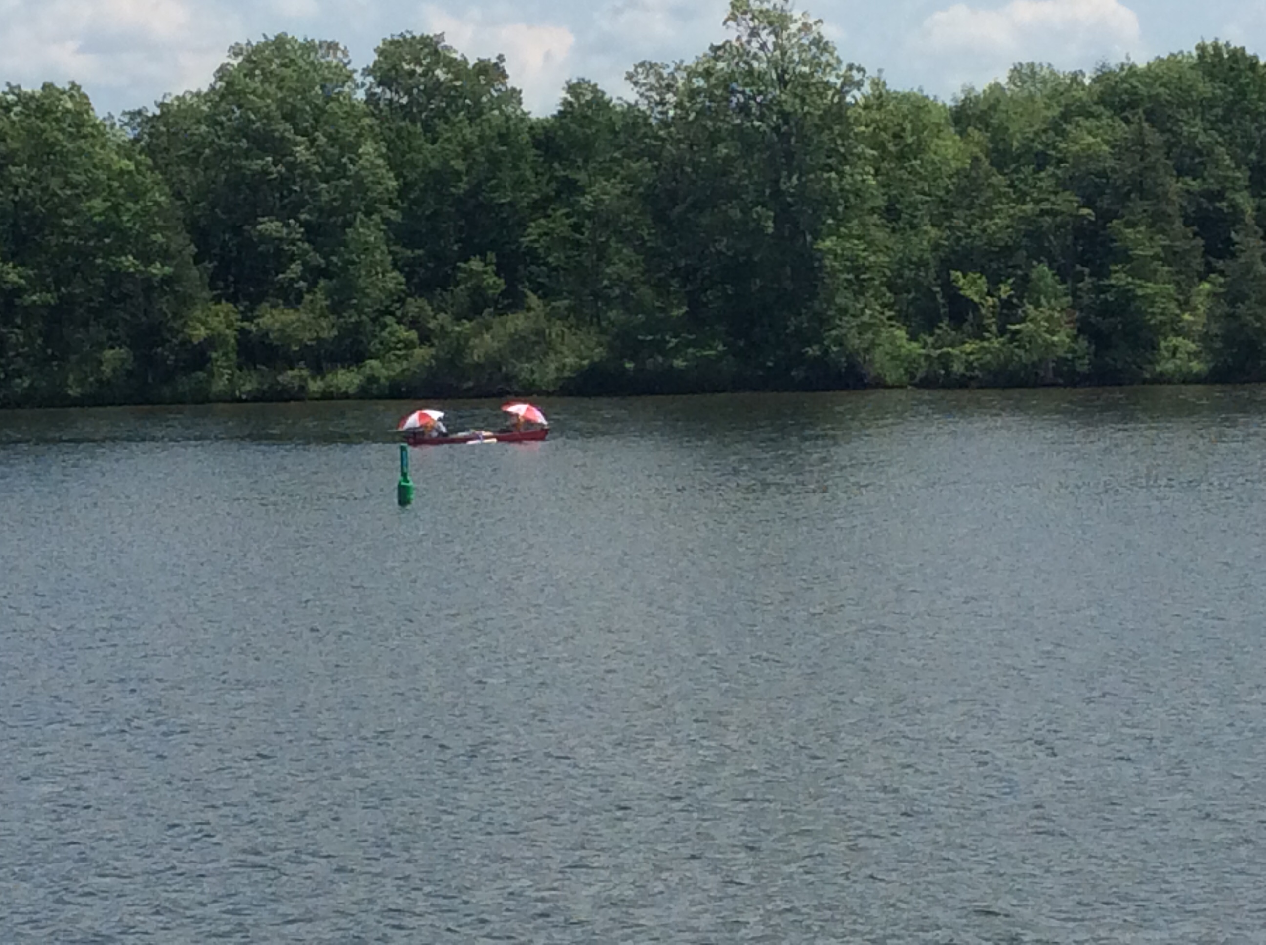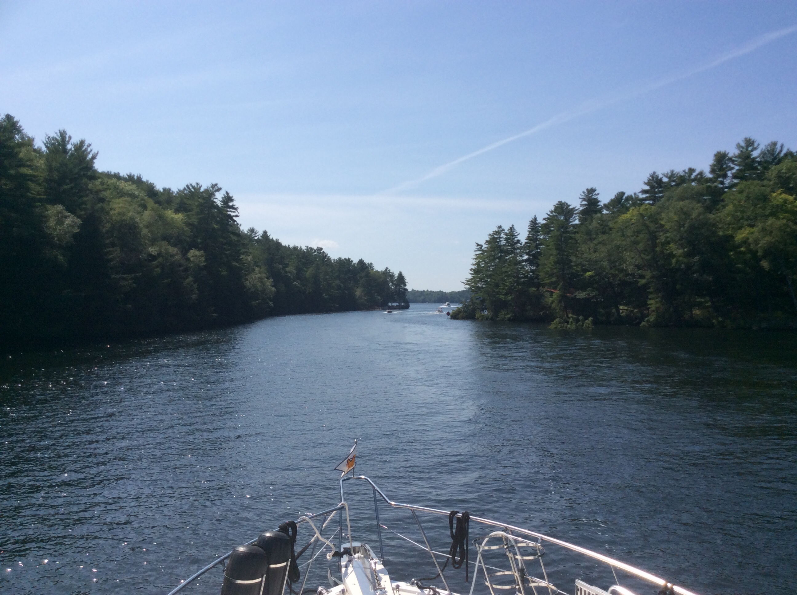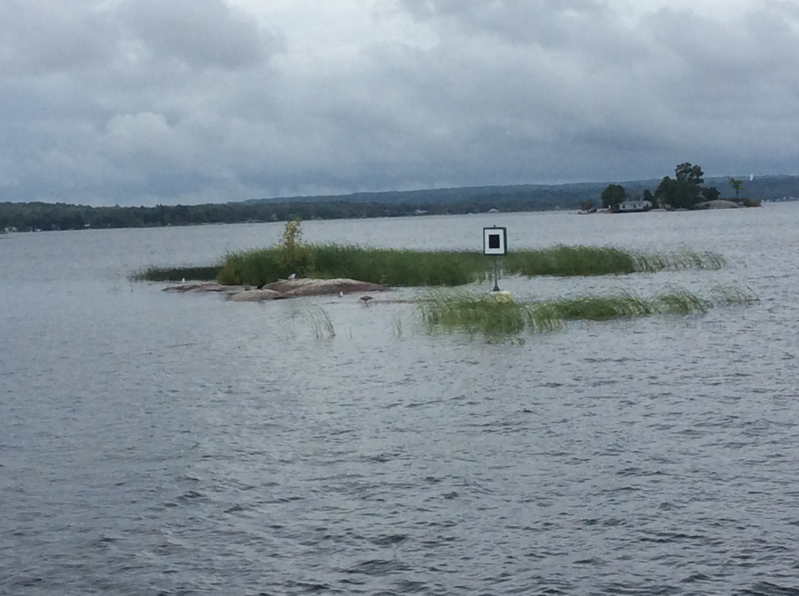 This is an image of our radar screen. Whisky Business’ location is at the bottom of the vertical white line. The large green blob is Golden Daze. It’s green because they are moving away from us at a faster speed. If we were moving faster and closing in on them, it would be red. Below the end of the white line in the center of the image you can see 2 red-ish blobs. Captains Dan and Sam were doing such a splendid job of matching WB’s warp like speed (that would be 9 MPH) that the doppler effect built in to our radar isn’t really sure if we are going faster or slower. Maybe fast-ish.