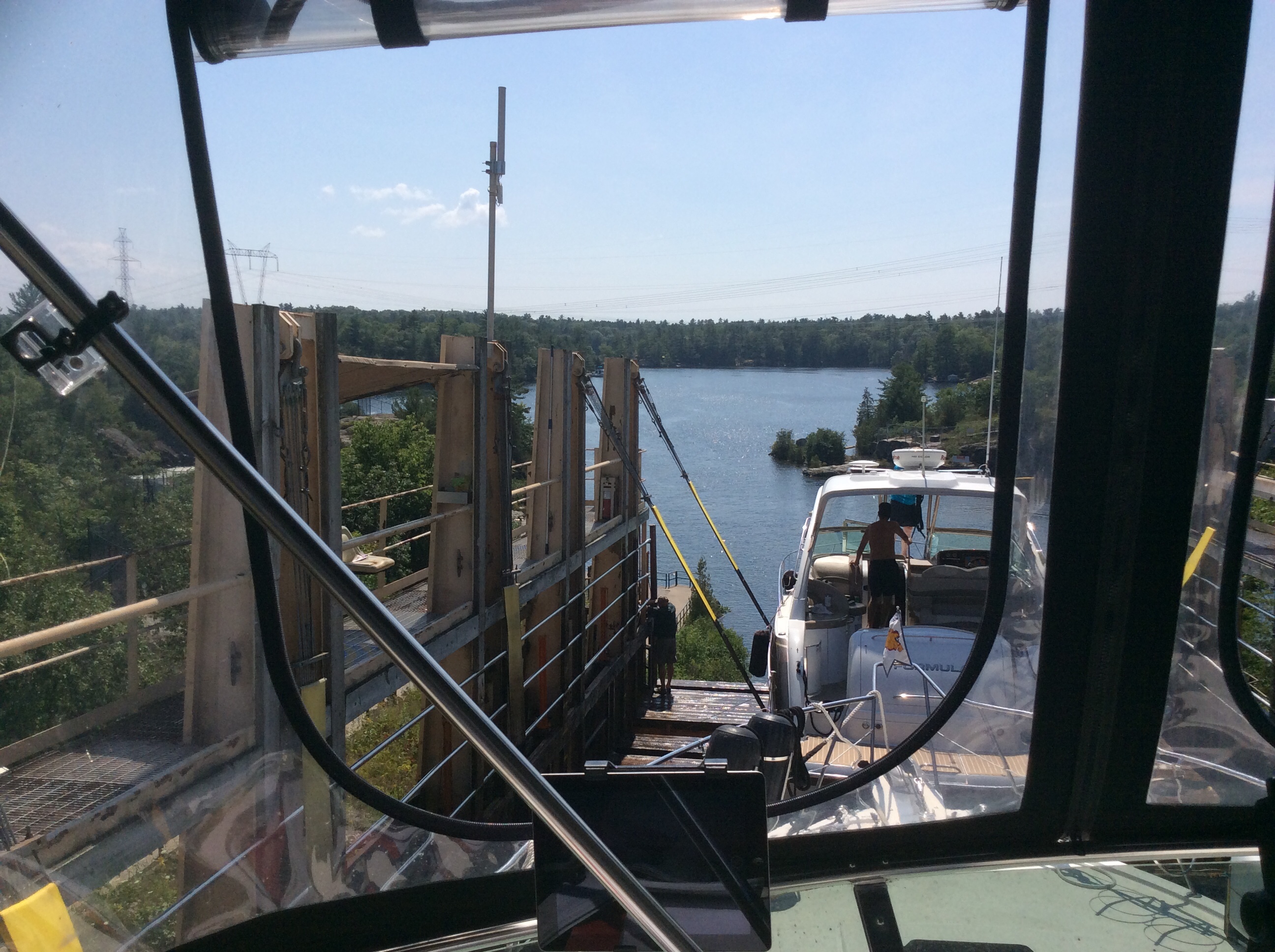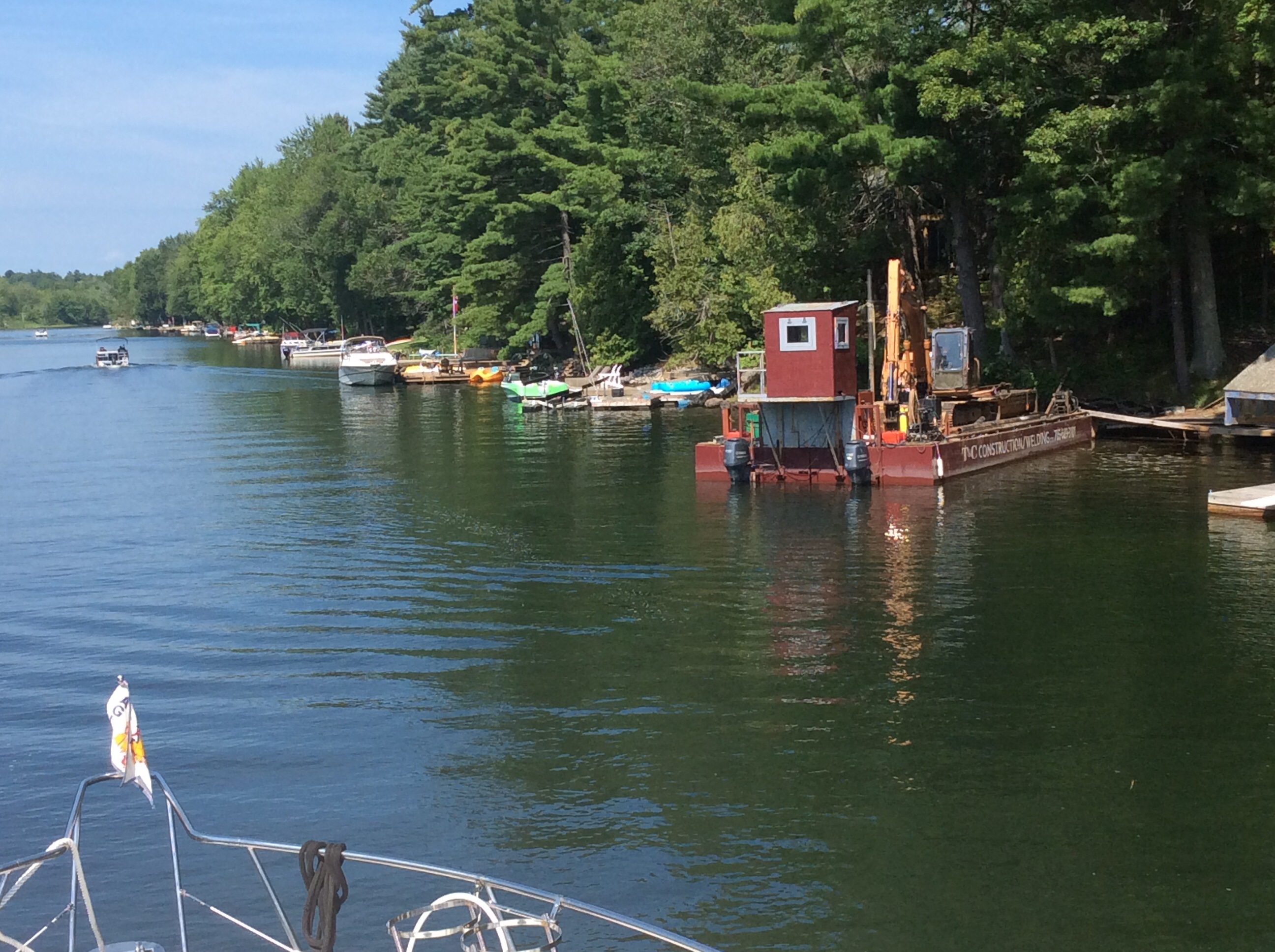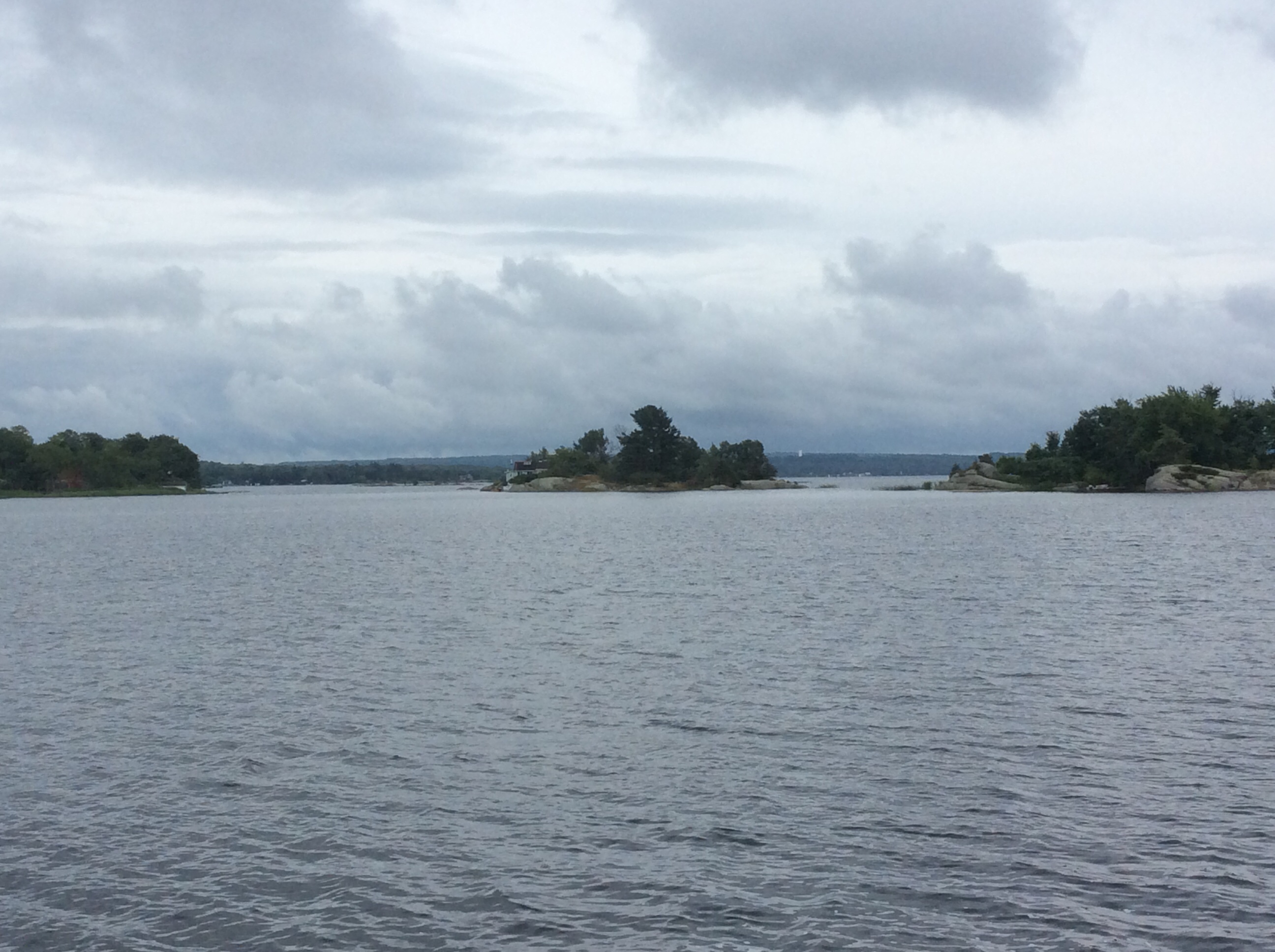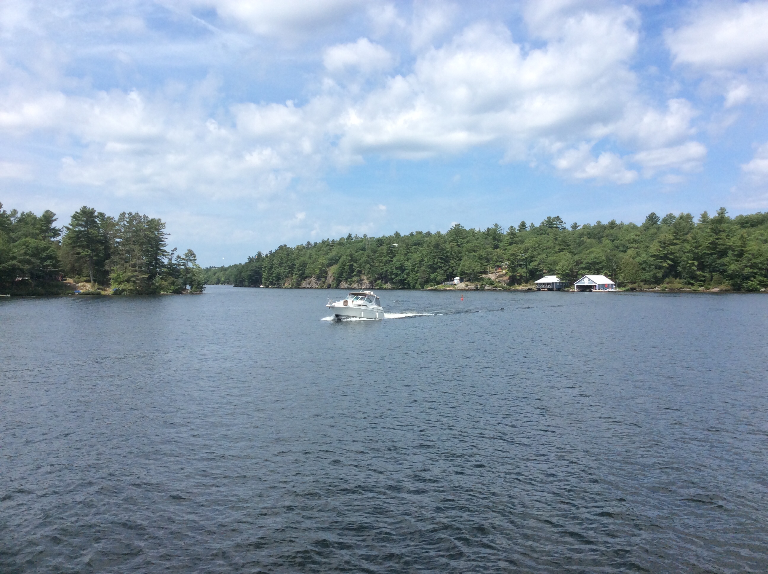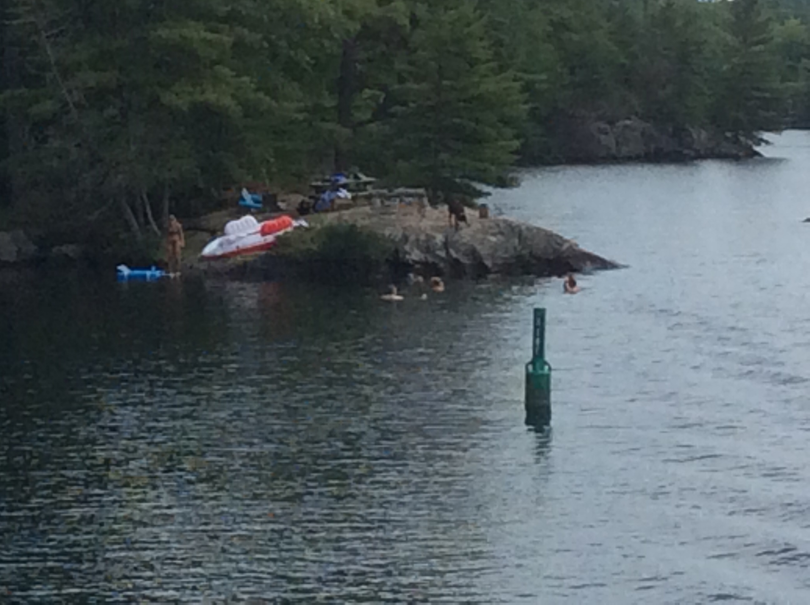 This is an image of our radar screen. Whisky Business’ location is at the bottom of the vertical white line. The large green blob is Golden Daze. It’s green because they are moving away from us at a faster speed. If we were moving faster and closing in on them, it would be red. Below the end of the white line in the center of the image you can see 2 red-ish blobs. Captains Dan and Sam were doing such a splendid job of matching WB’s warp like speed (that would be 9 MPH) that the doppler effect built in to our radar isn’t really sure if we are going faster or slower. Maybe fast-ish.