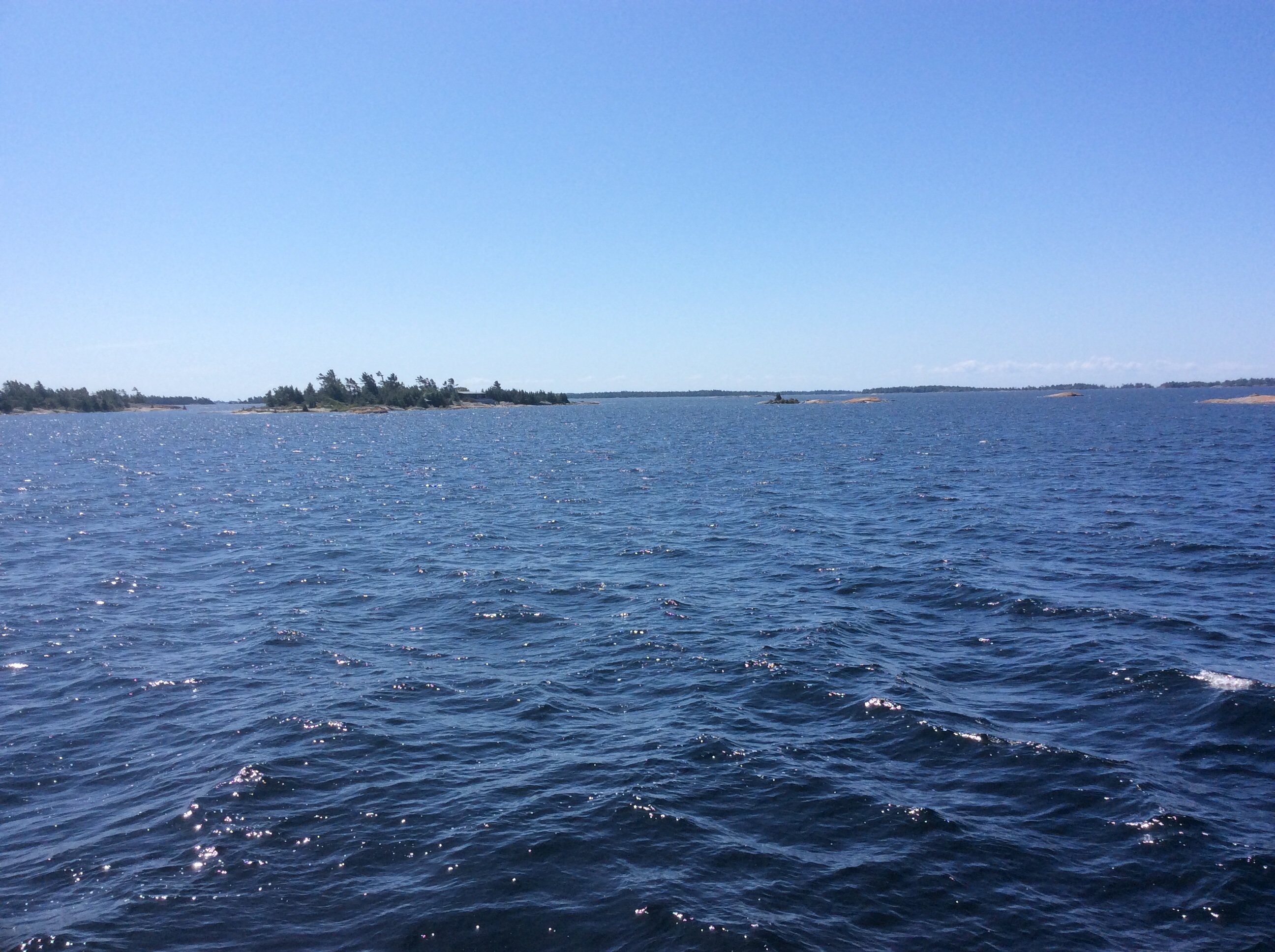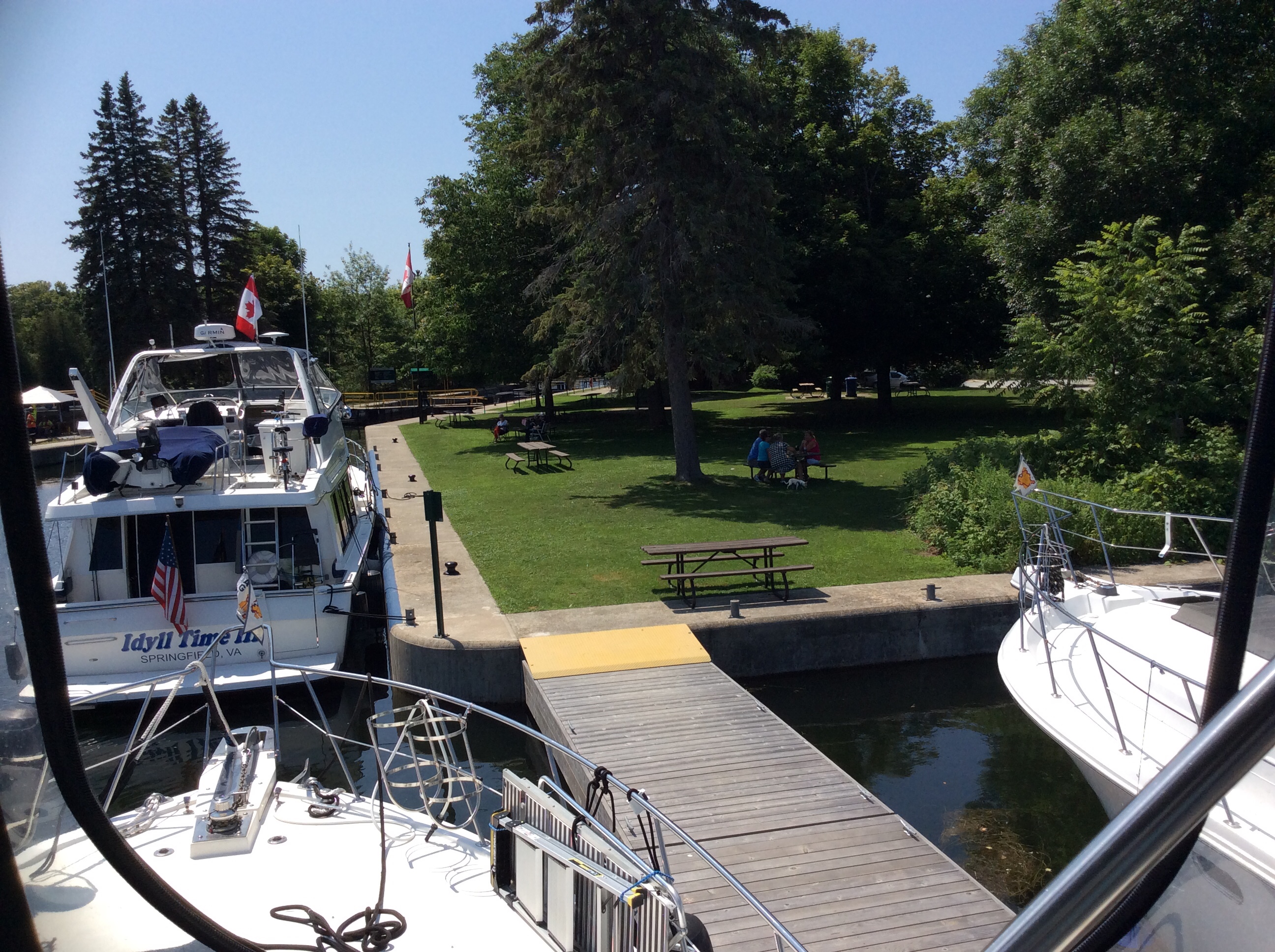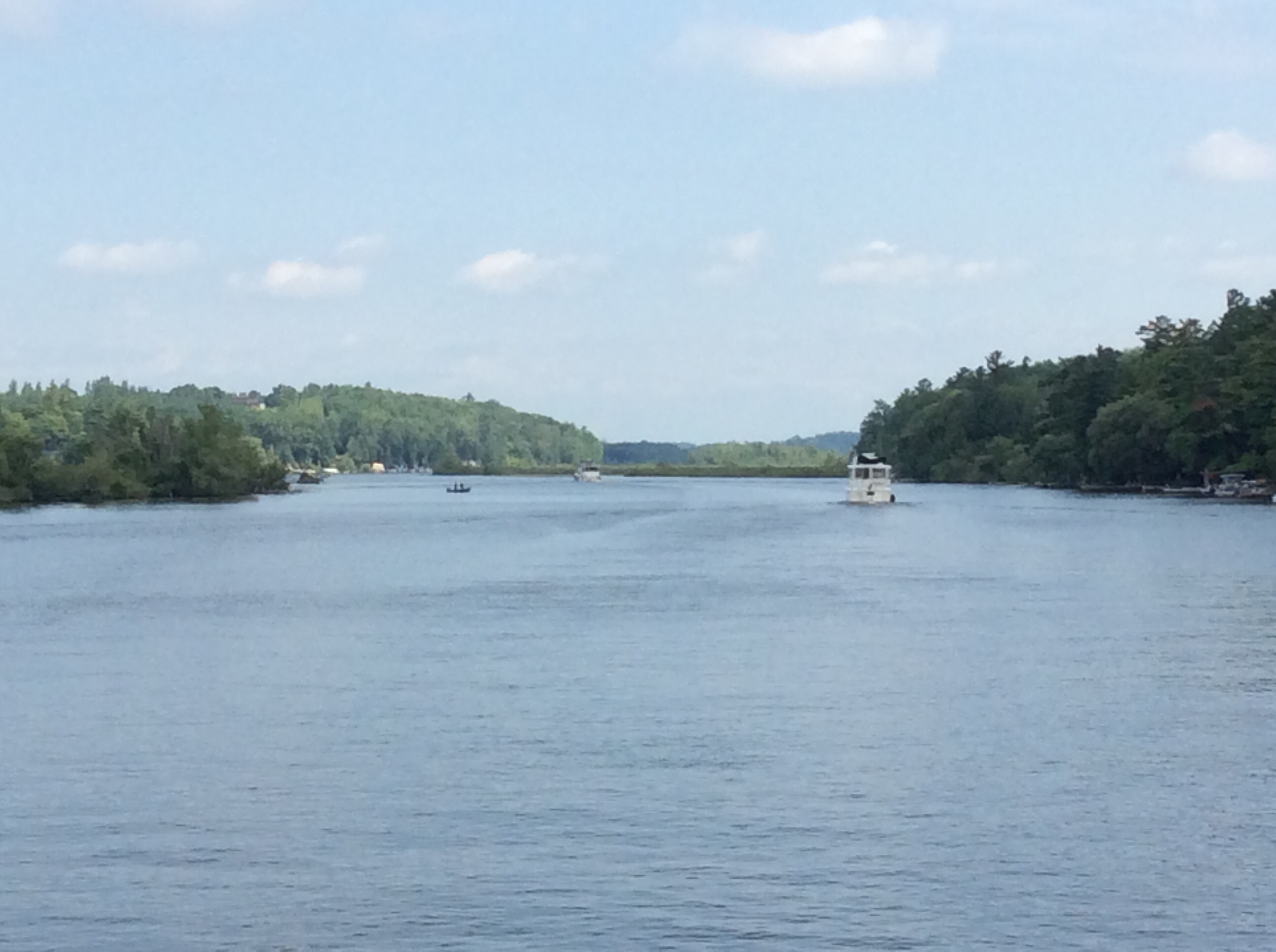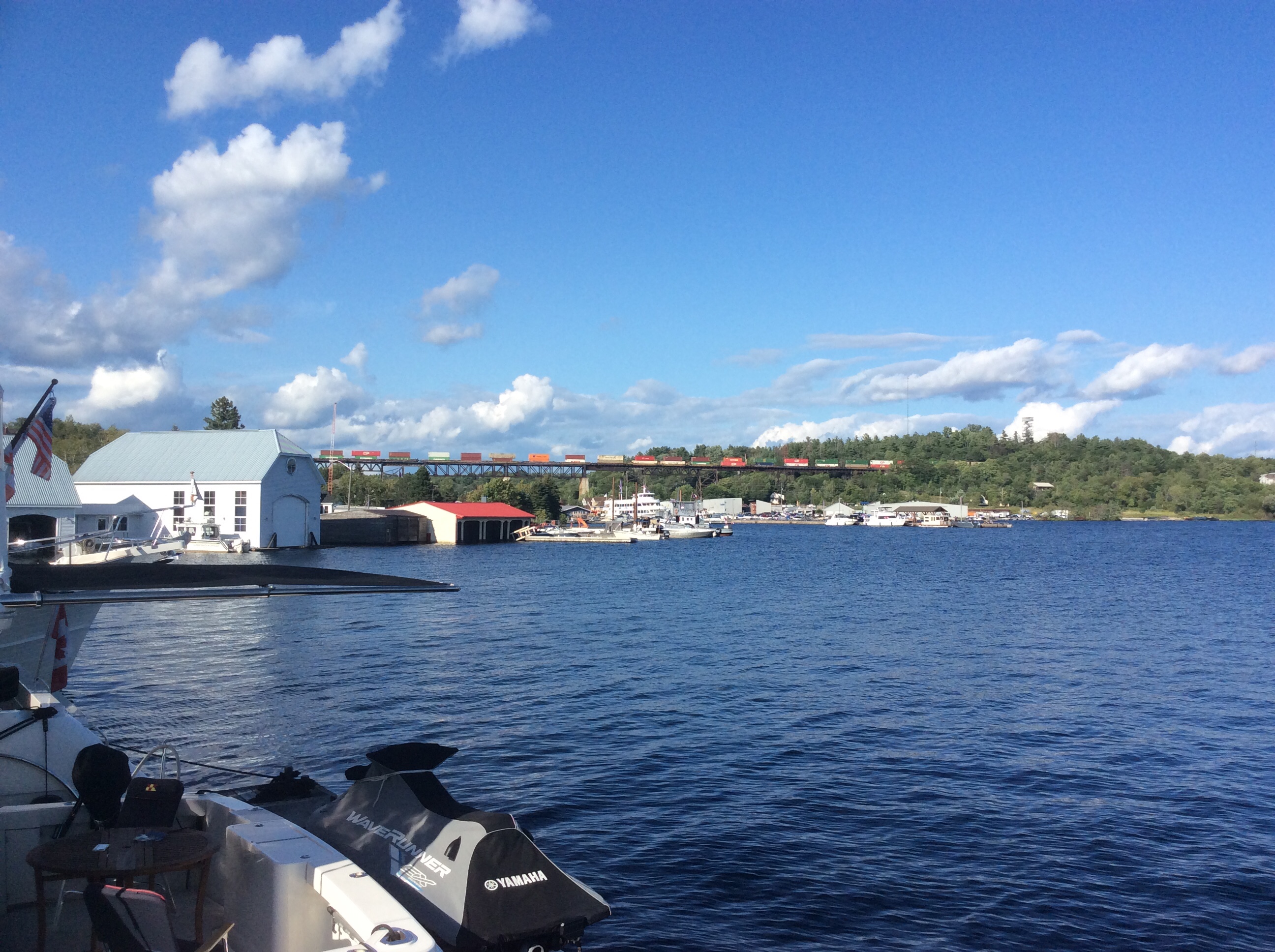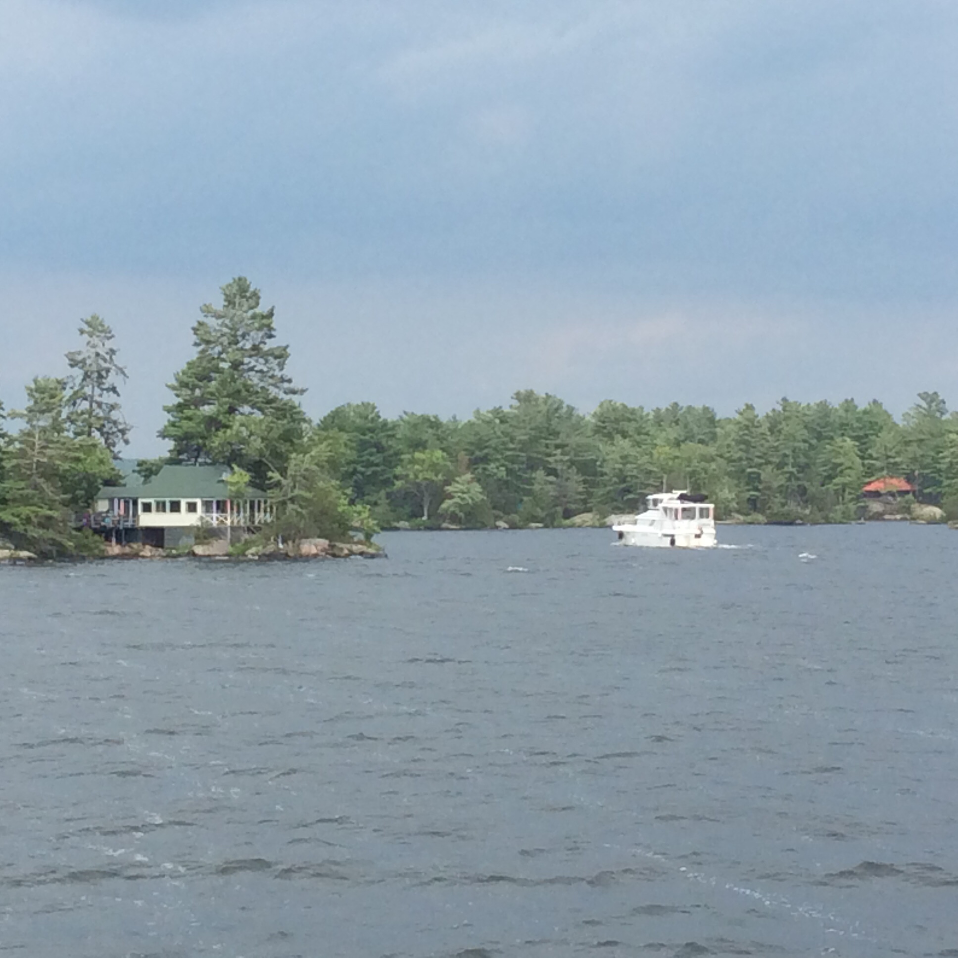 This is an image of our radar screen. Whisky Business’ location is at the bottom of the vertical white line. The large green blob is Golden Daze. It’s green because they are moving away from us at a faster speed. If we were moving faster and closing in on them, it would be red. Below the end of the white line in the center of the image you can see 2 red-ish blobs. Captains Dan and Sam were doing such a splendid job of matching WB’s warp like speed (that would be 9 MPH) that the doppler effect built in to our radar isn’t really sure if we are going faster or slower. Maybe fast-ish.