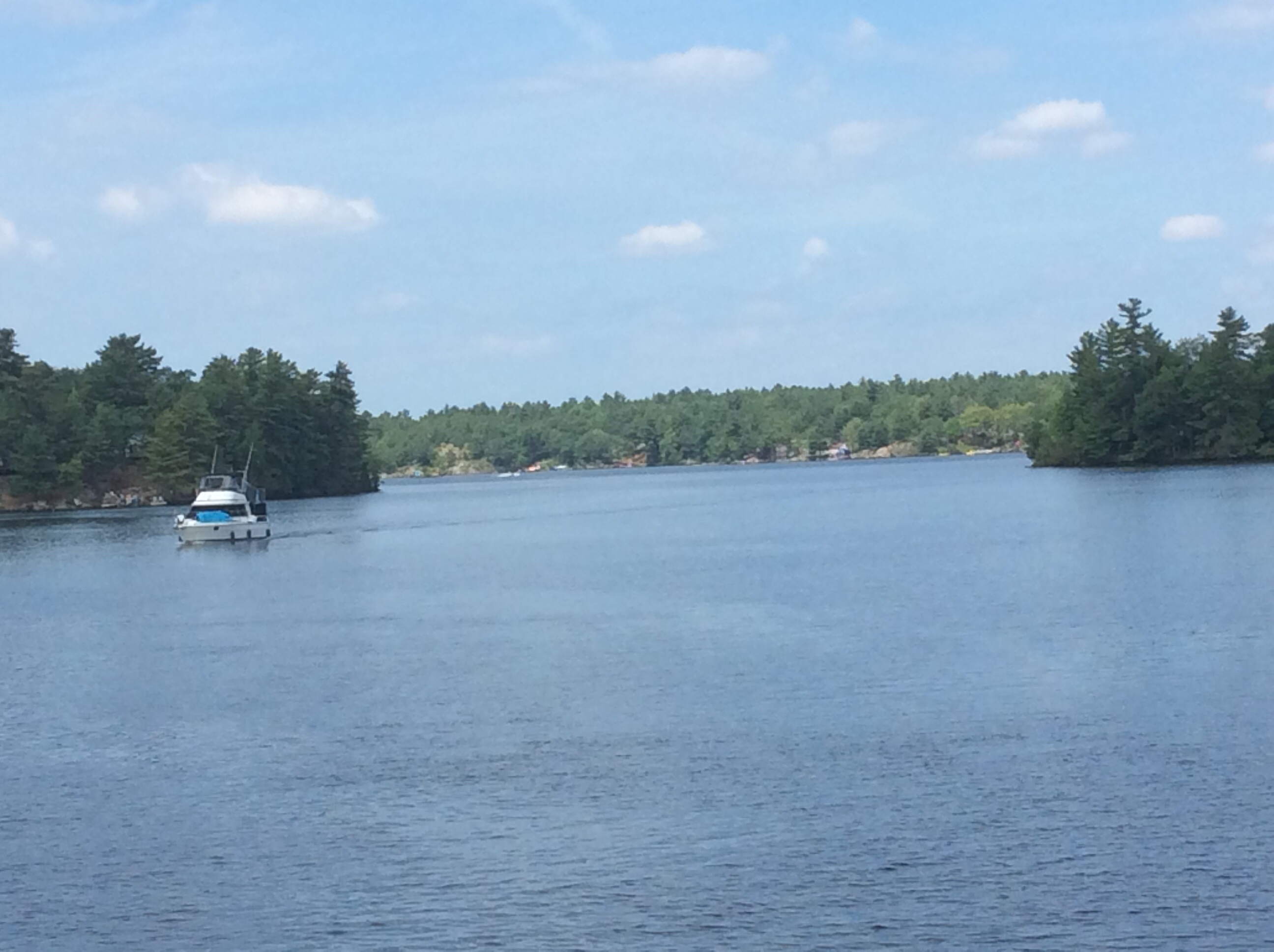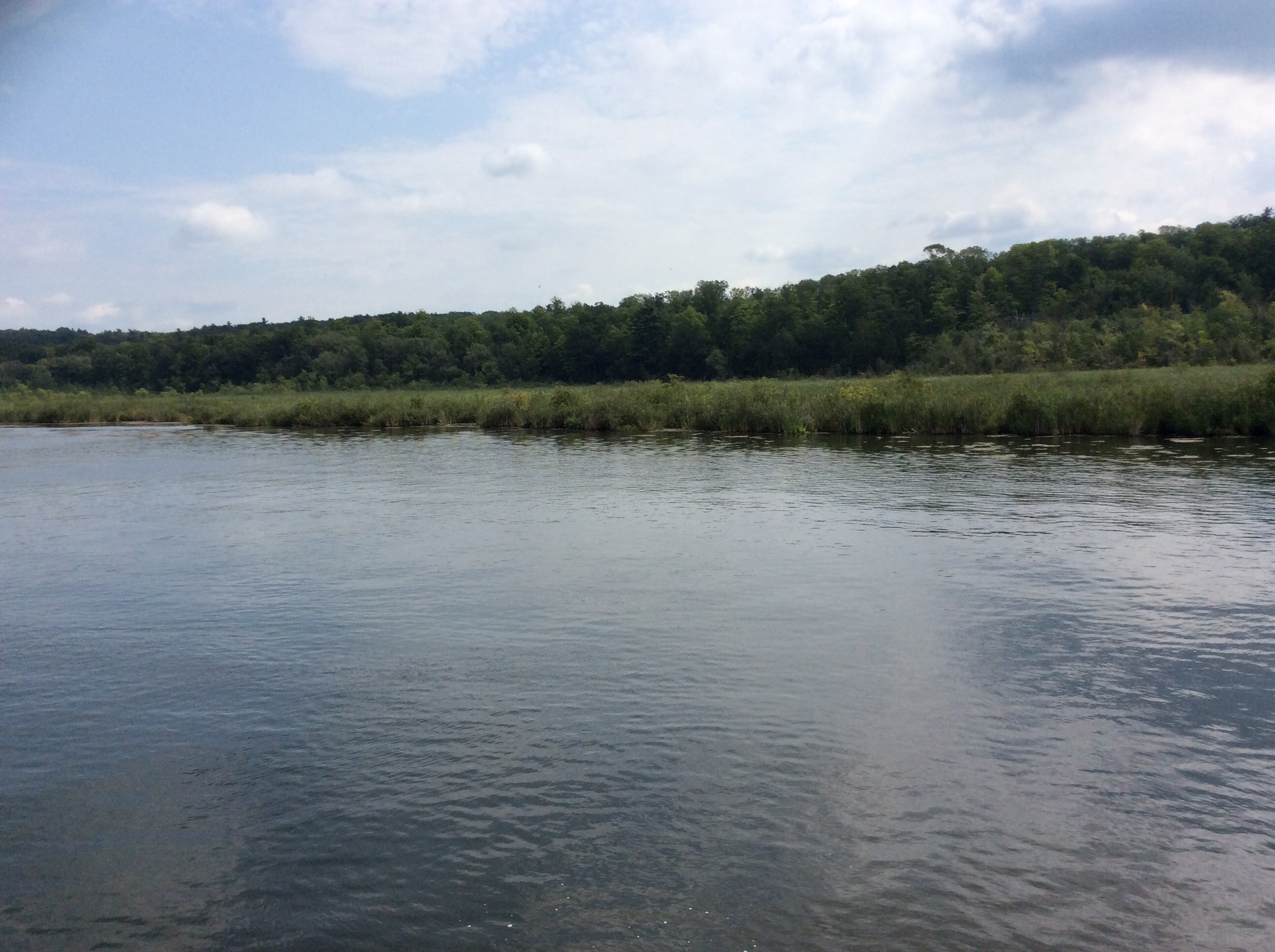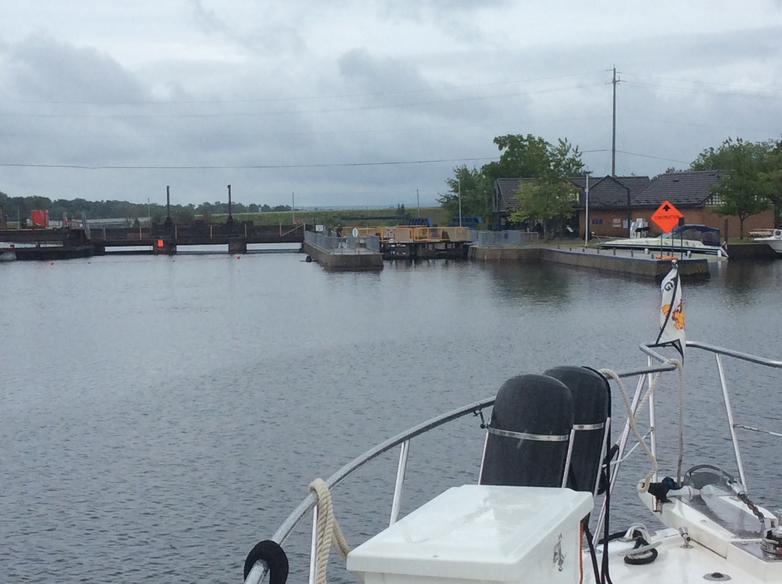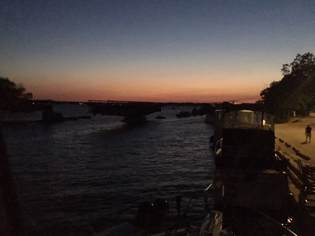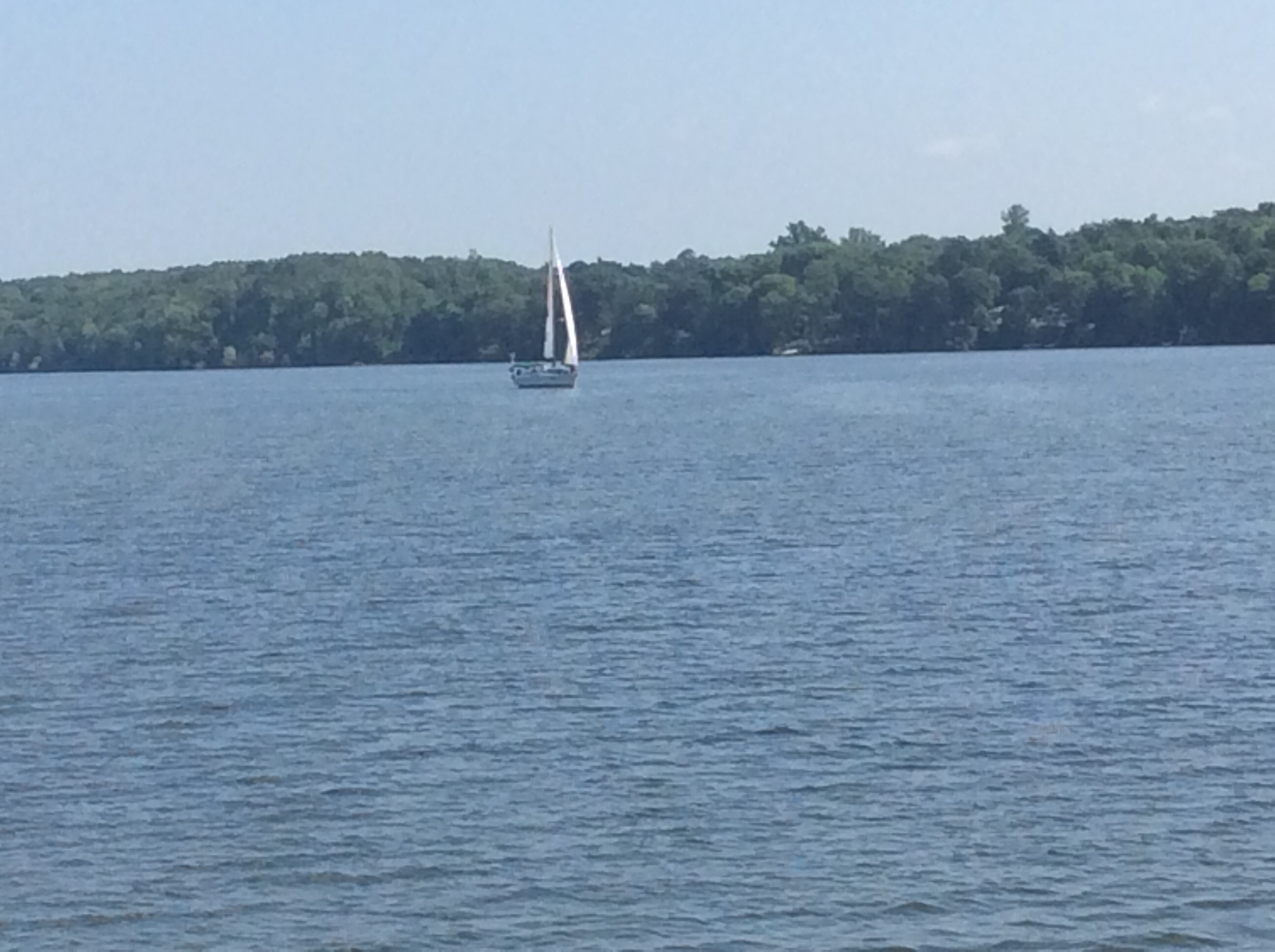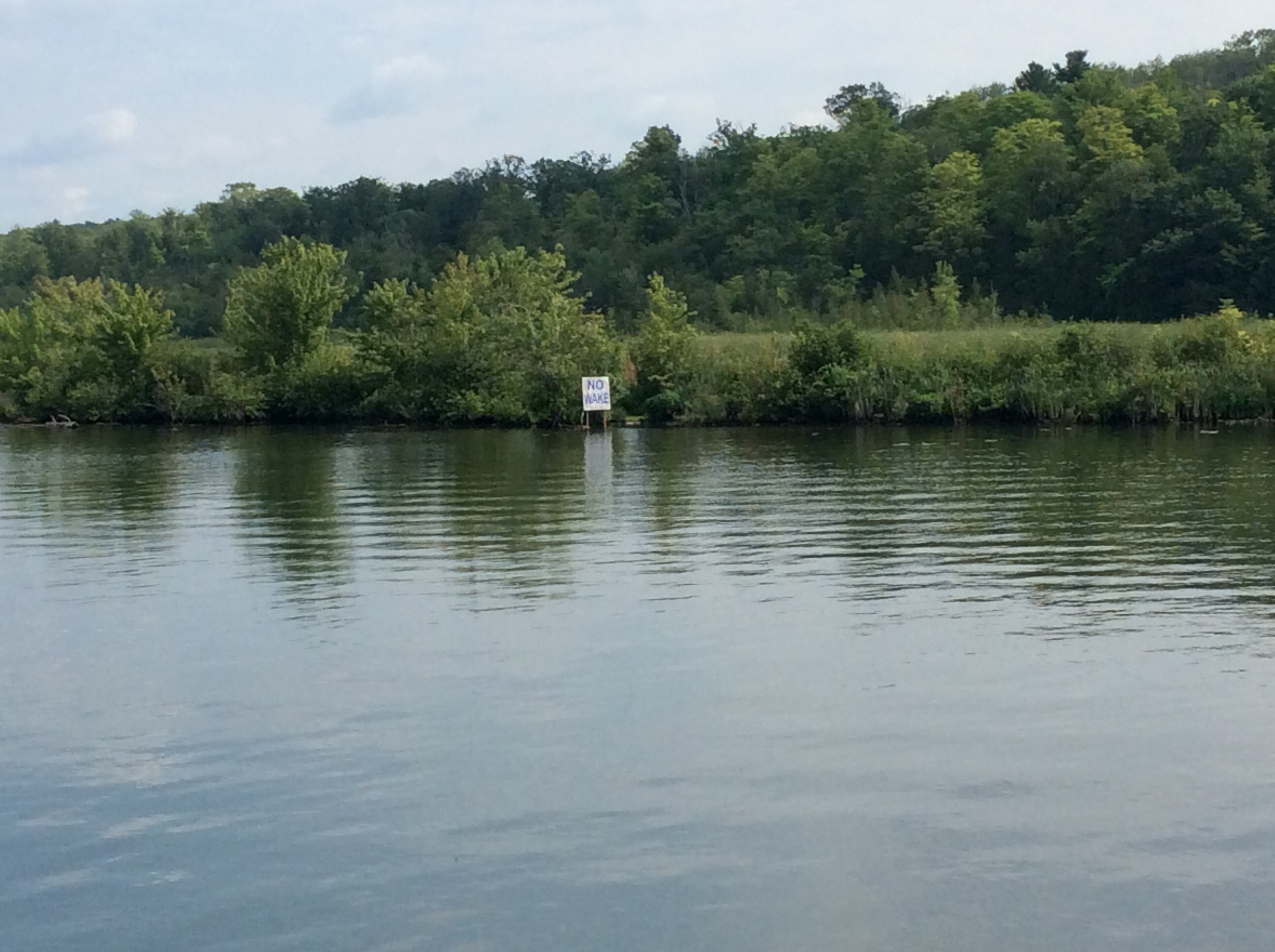 This is an image of our radar screen. Whisky Business’ location is at the bottom of the vertical white line. The large green blob is Golden Daze. It’s green because they are moving away from us at a faster speed. If we were moving faster and closing in on them, it would be red. Below the end of the white line in the center of the image you can see 2 red-ish blobs. Captains Dan and Sam were doing such a splendid job of matching WB’s warp like speed (that would be 9 MPH) that the doppler effect built in to our radar isn’t really sure if we are going faster or slower. Maybe fast-ish.