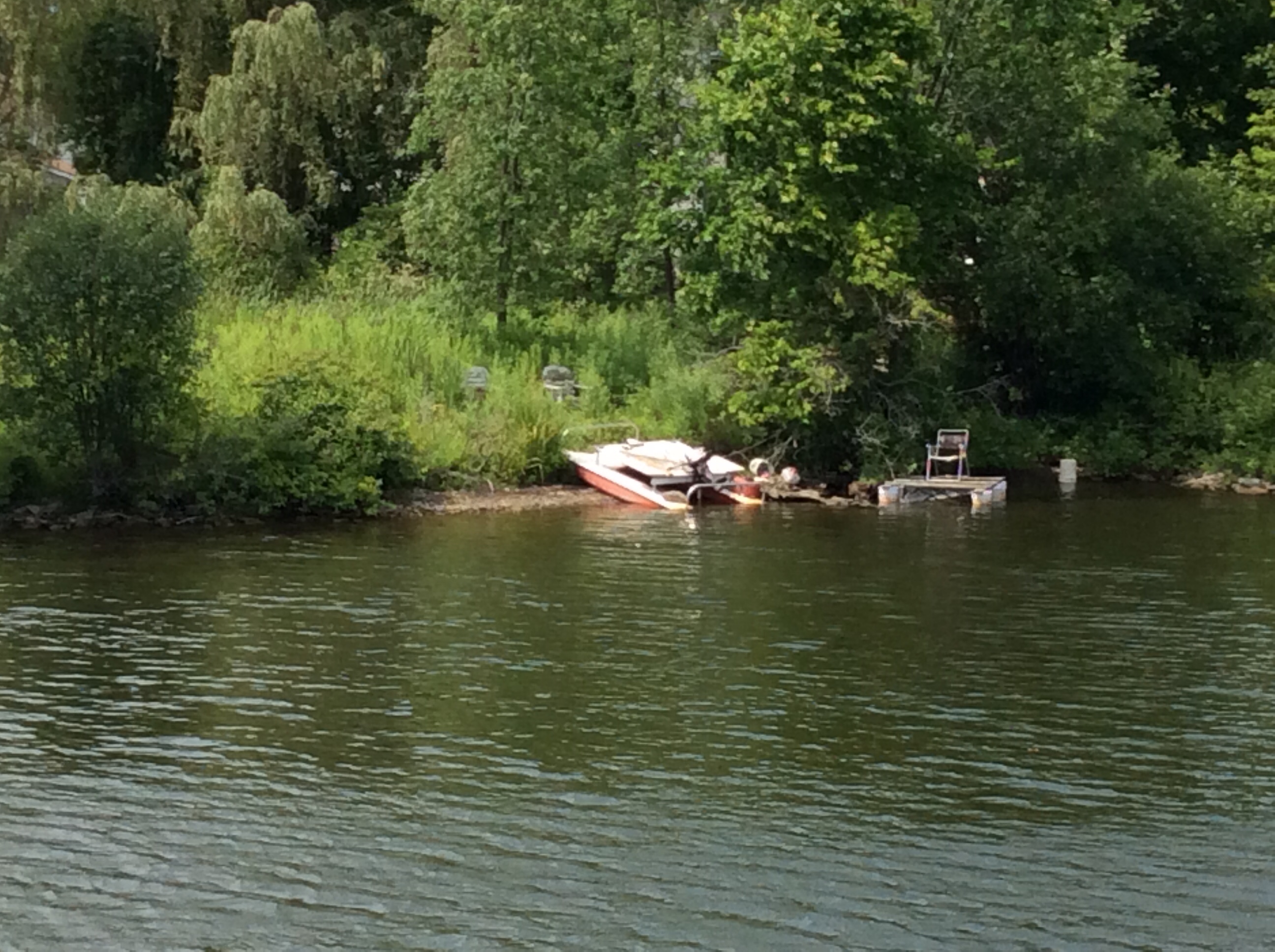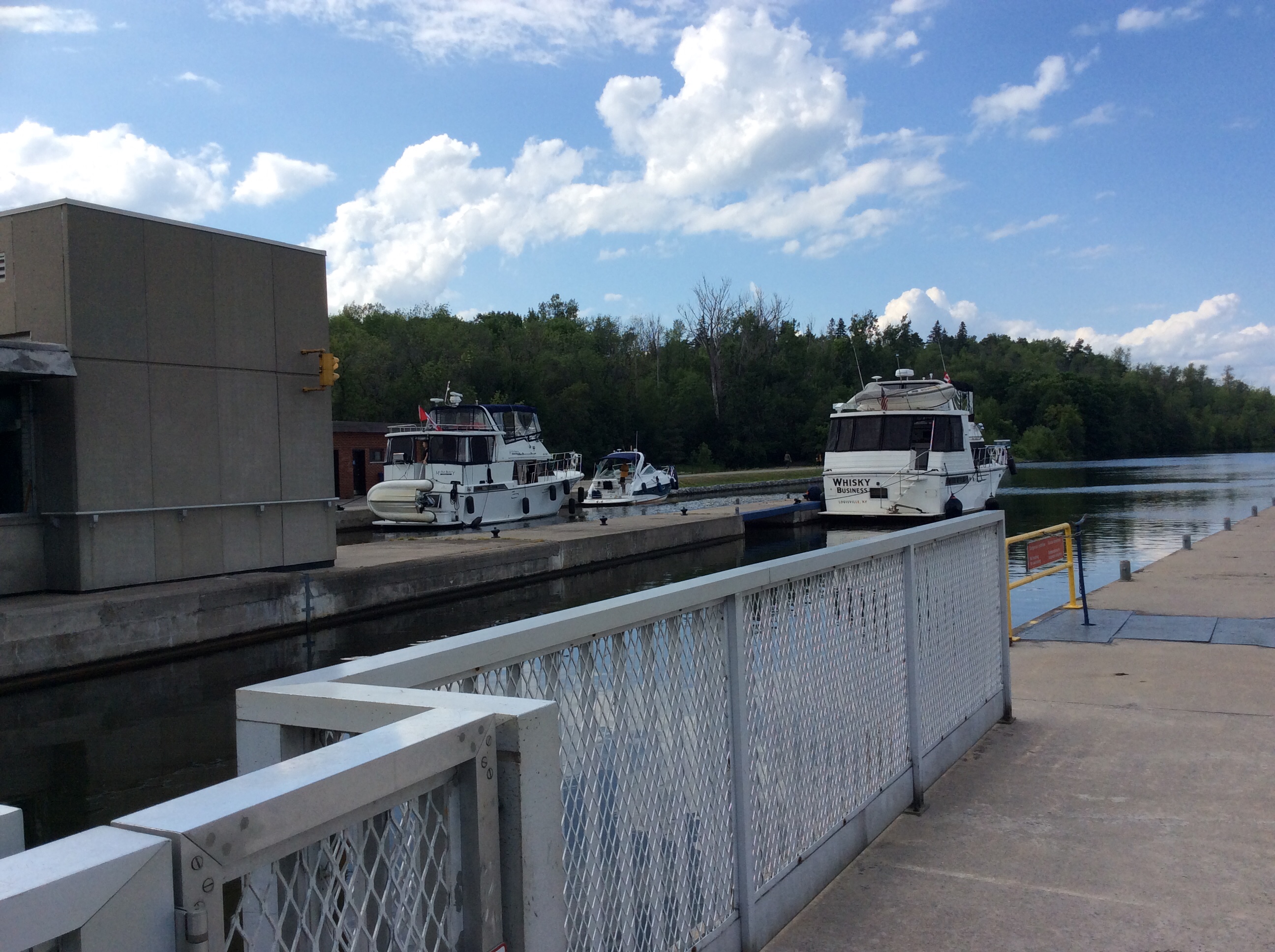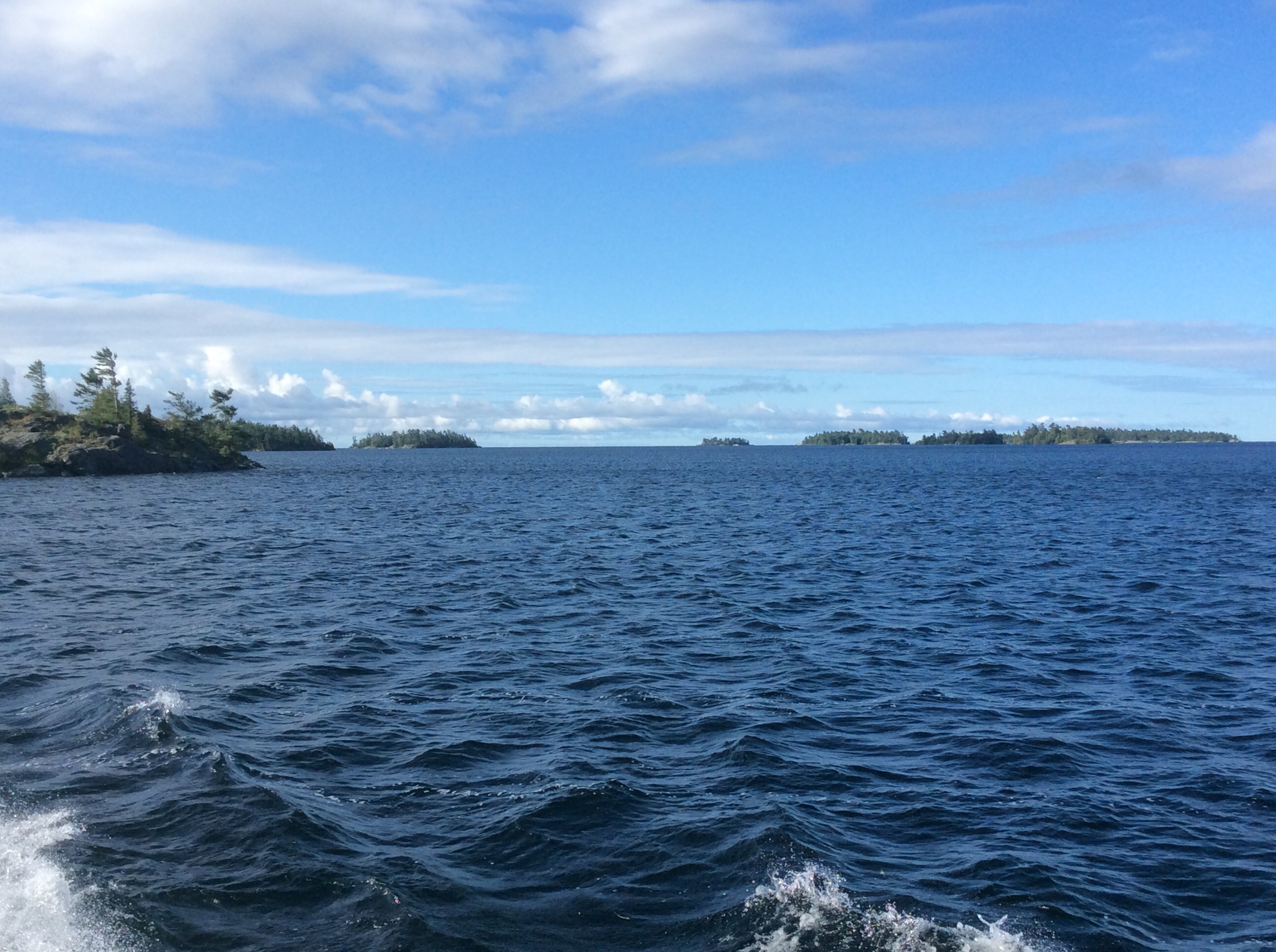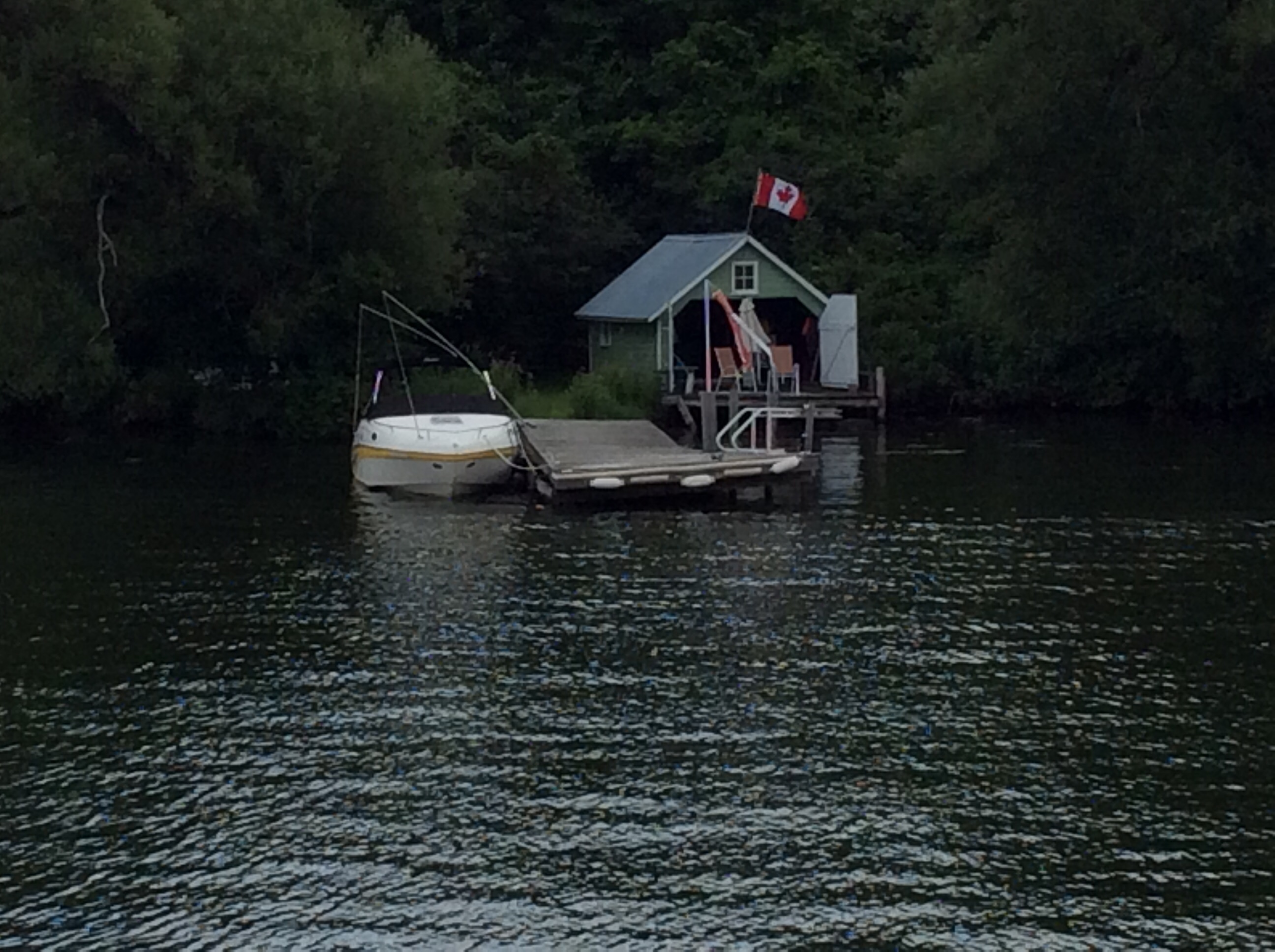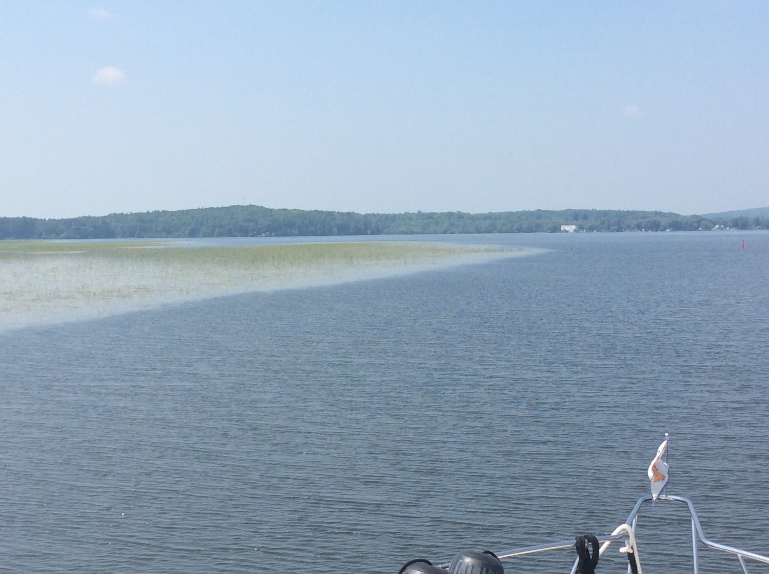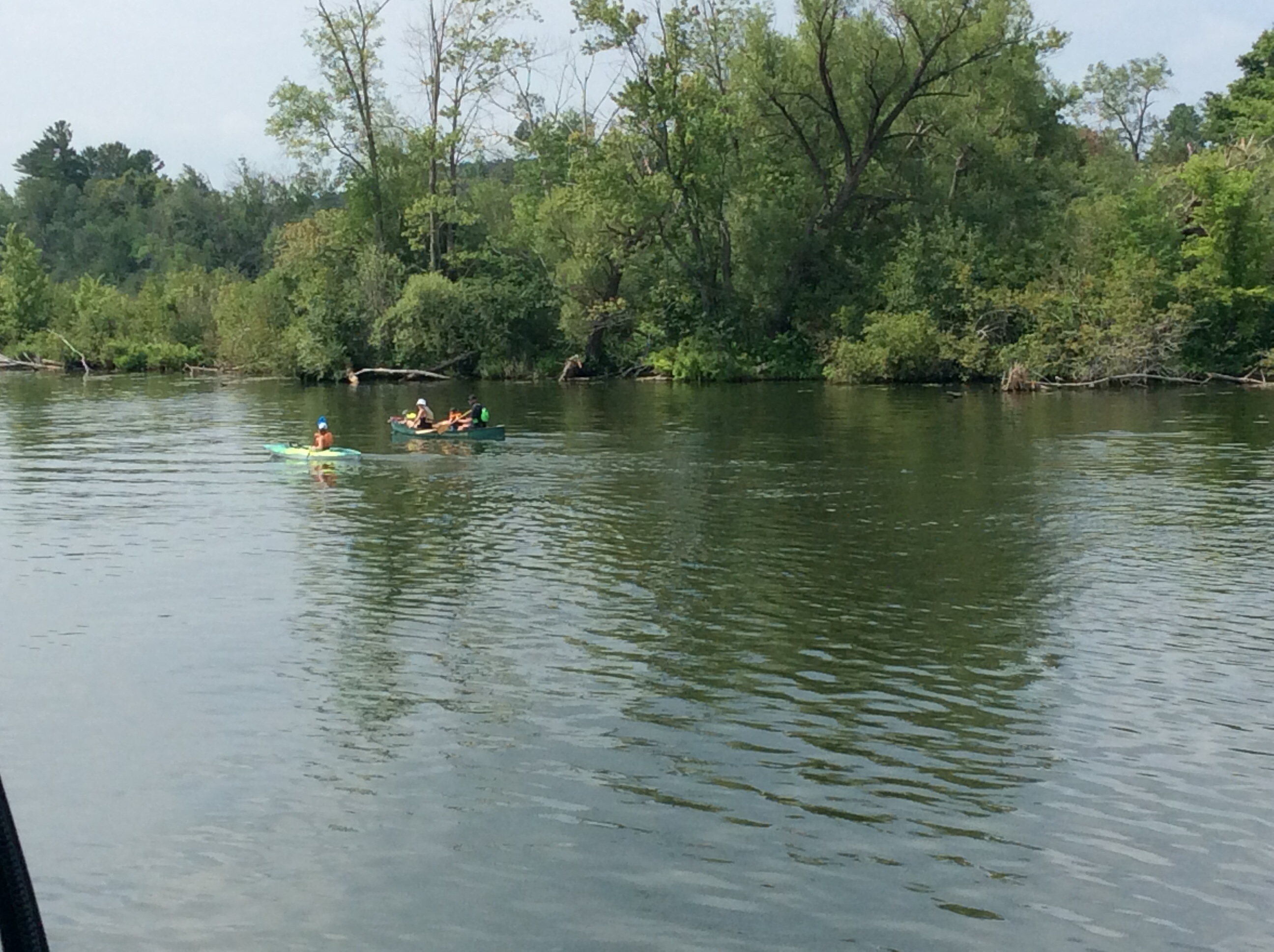 This is an image of our radar screen. Whisky Business’ location is at the bottom of the vertical white line. The large green blob is Golden Daze. It’s green because they are moving away from us at a faster speed. If we were moving faster and closing in on them, it would be red. Below the end of the white line in the center of the image you can see 2 red-ish blobs. Captains Dan and Sam were doing such a splendid job of matching WB’s warp like speed (that would be 9 MPH) that the doppler effect built in to our radar isn’t really sure if we are going faster or slower. Maybe fast-ish.