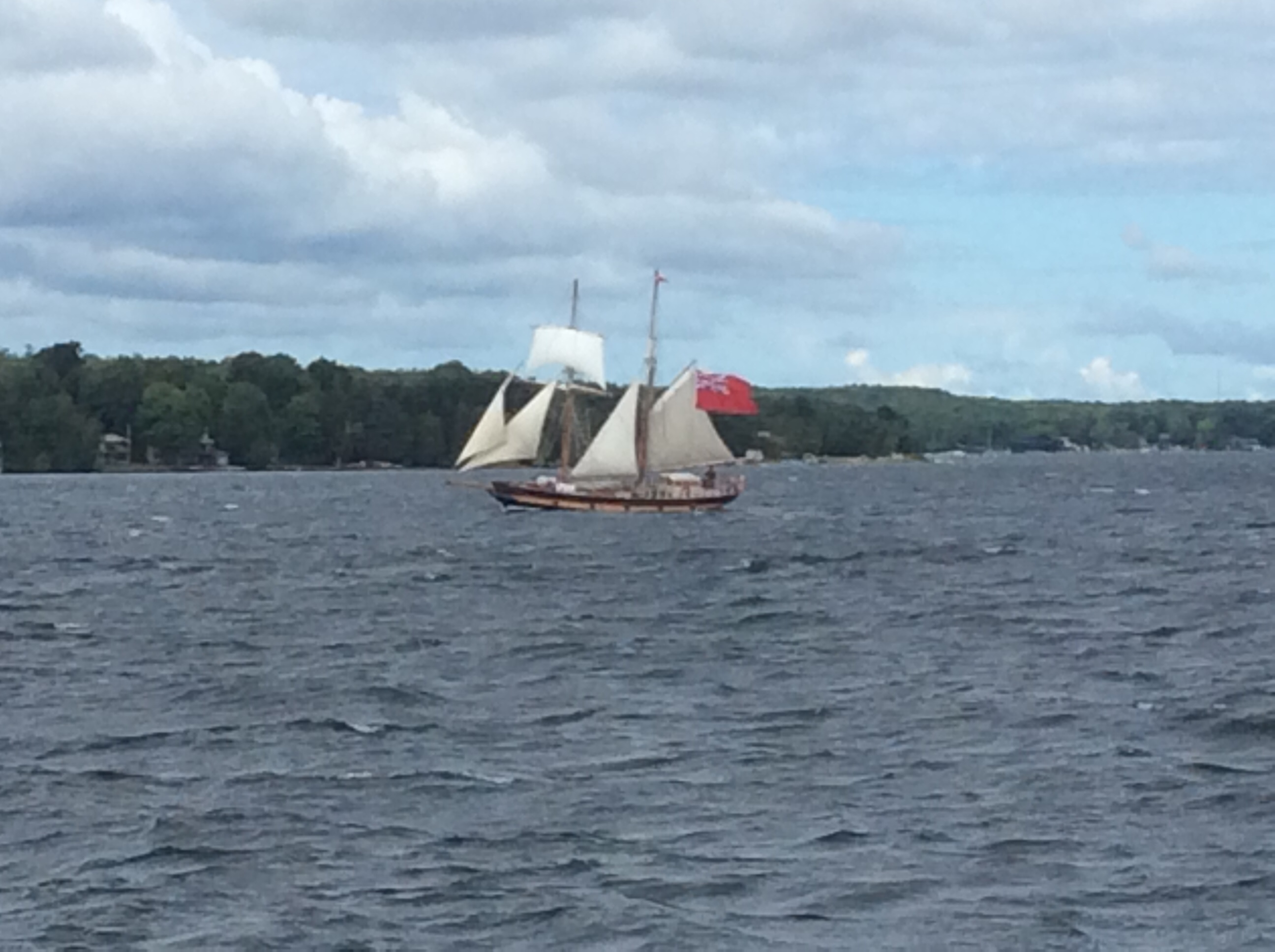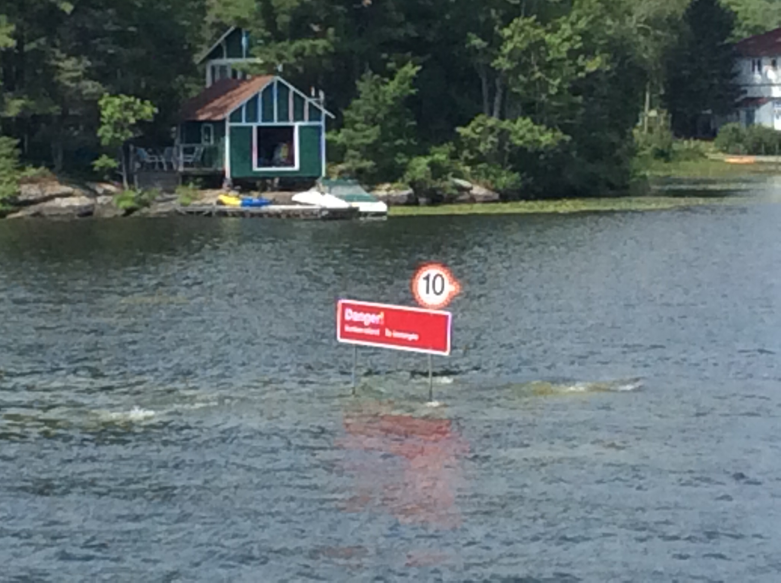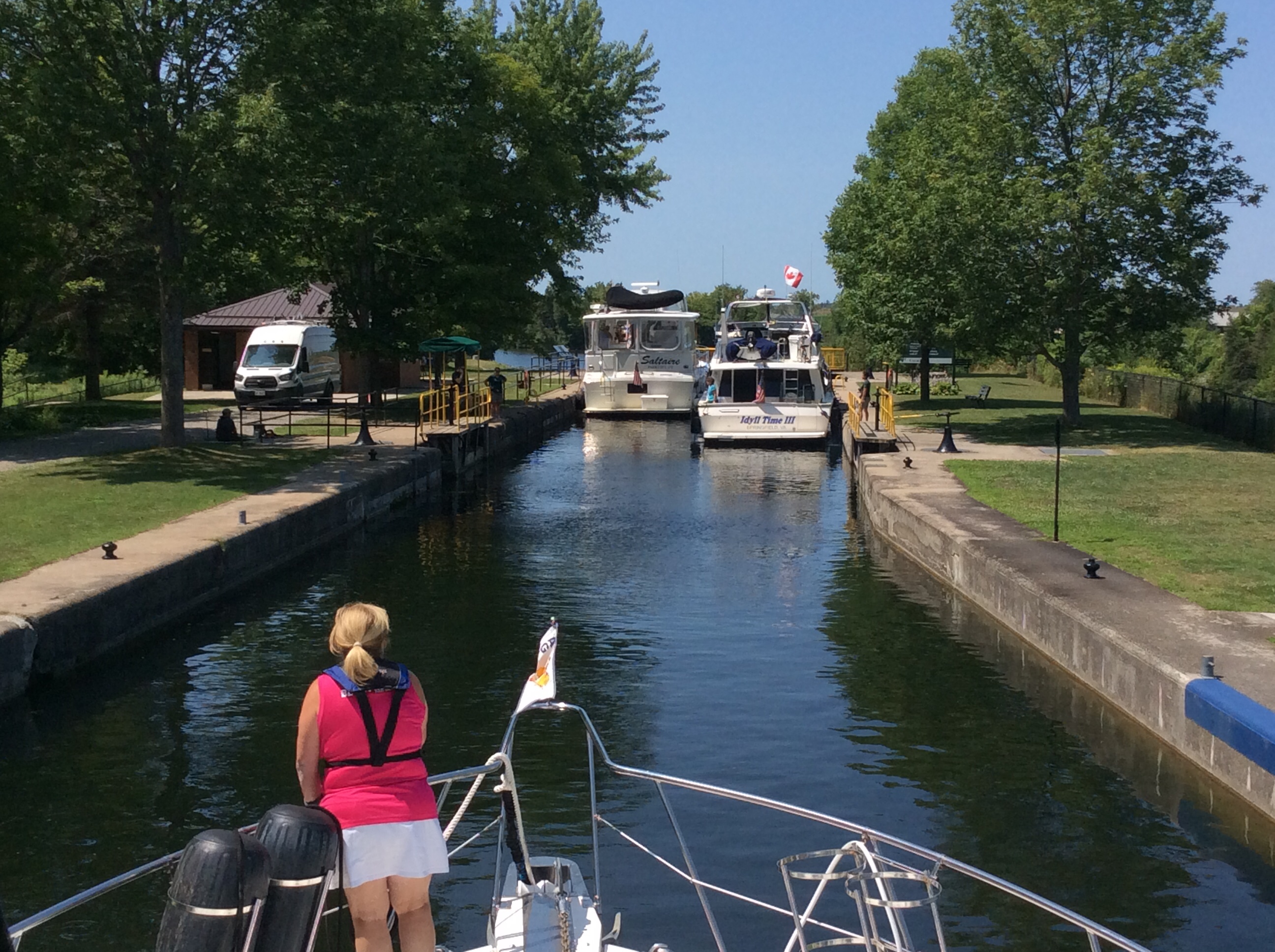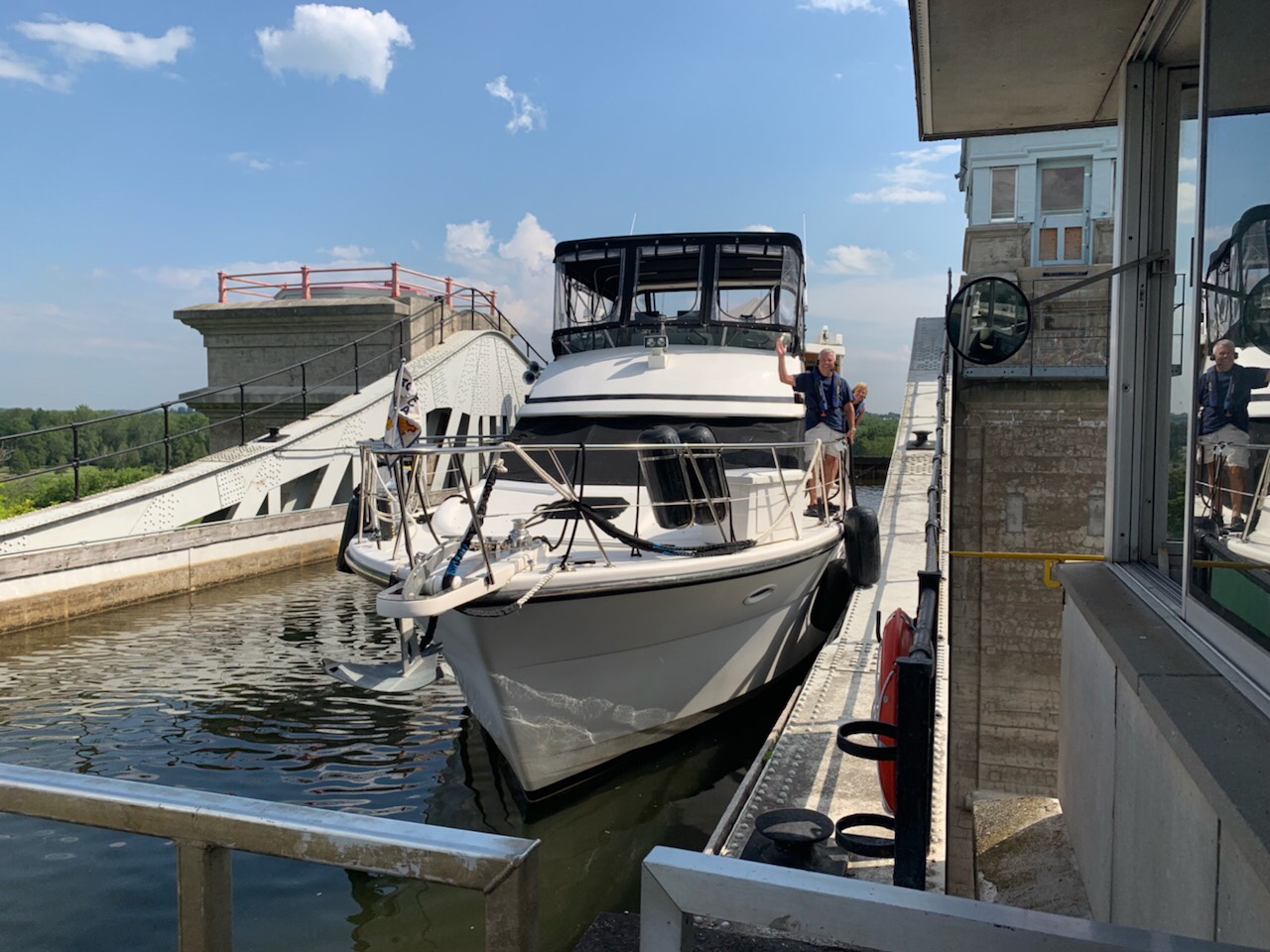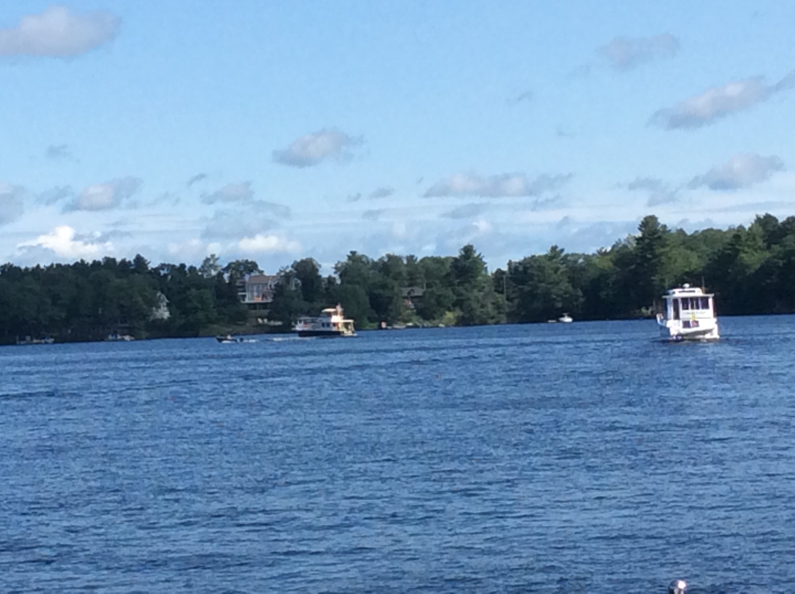 This is an image of our radar screen. Whisky Business’ location is at the bottom of the vertical white line. The large green blob is Golden Daze. It’s green because they are moving away from us at a faster speed. If we were moving faster and closing in on them, it would be red. Below the end of the white line in the center of the image you can see 2 red-ish blobs. Captains Dan and Sam were doing such a splendid job of matching WB’s warp like speed (that would be 9 MPH) that the doppler effect built in to our radar isn’t really sure if we are going faster or slower. Maybe fast-ish.