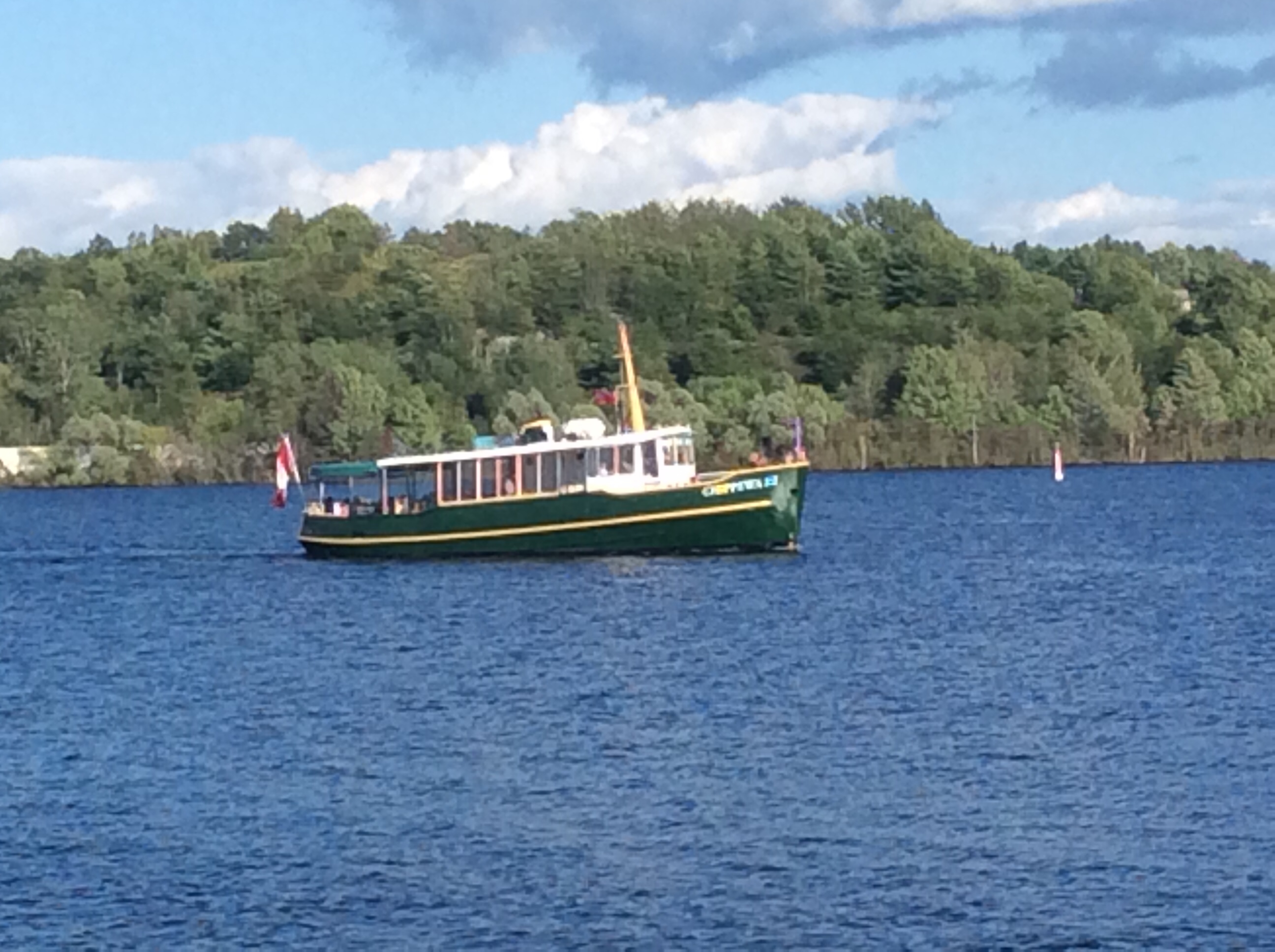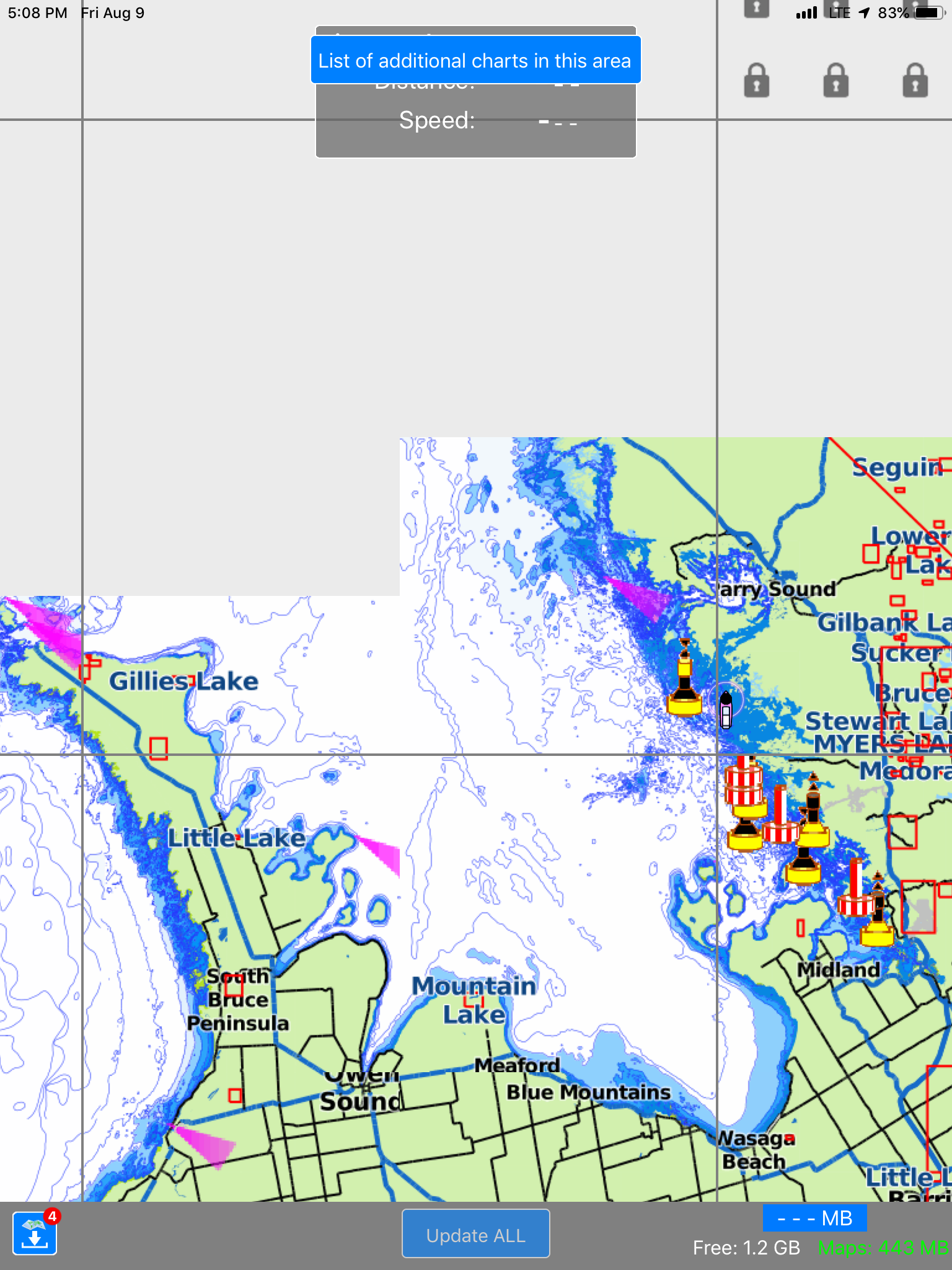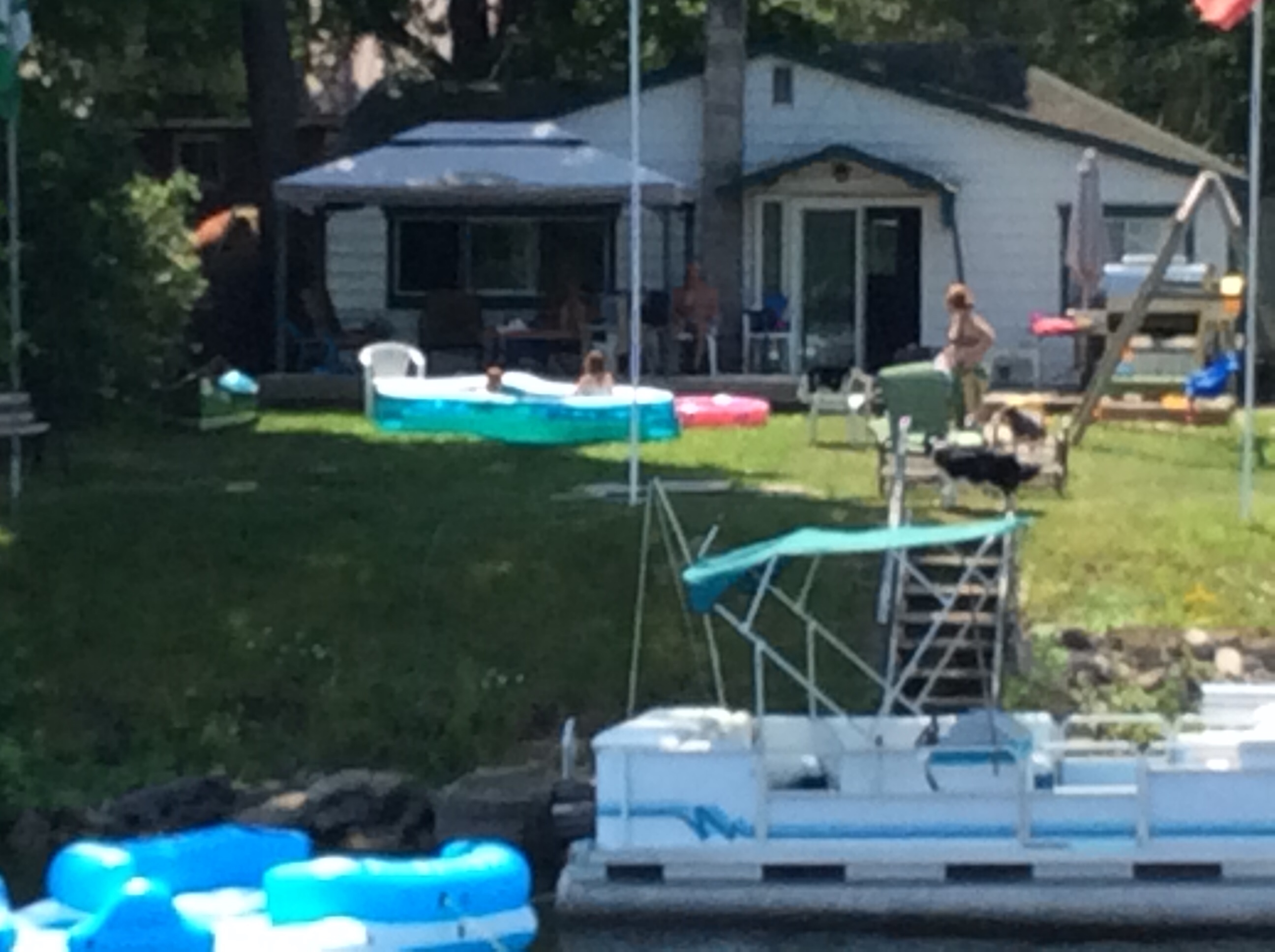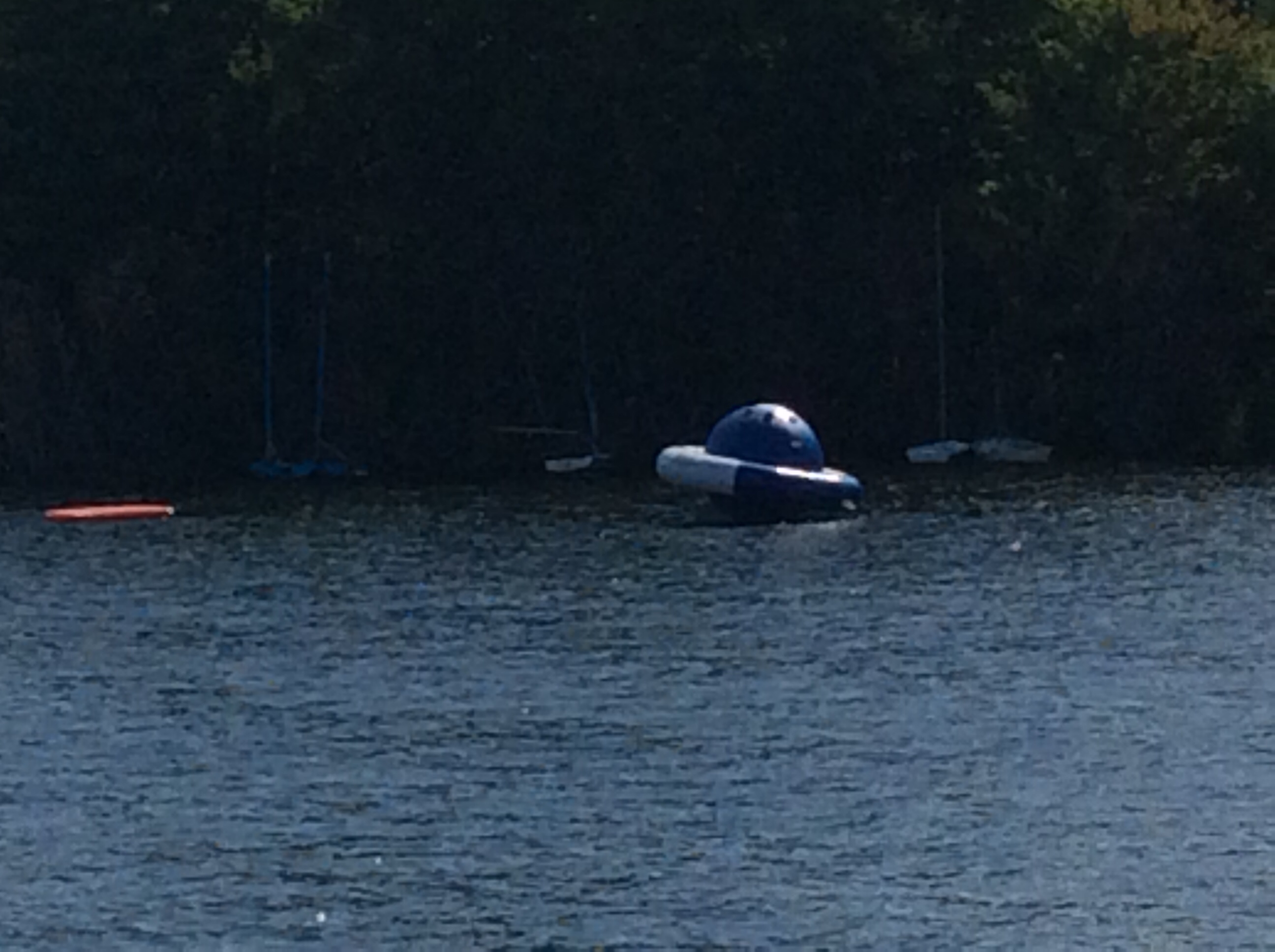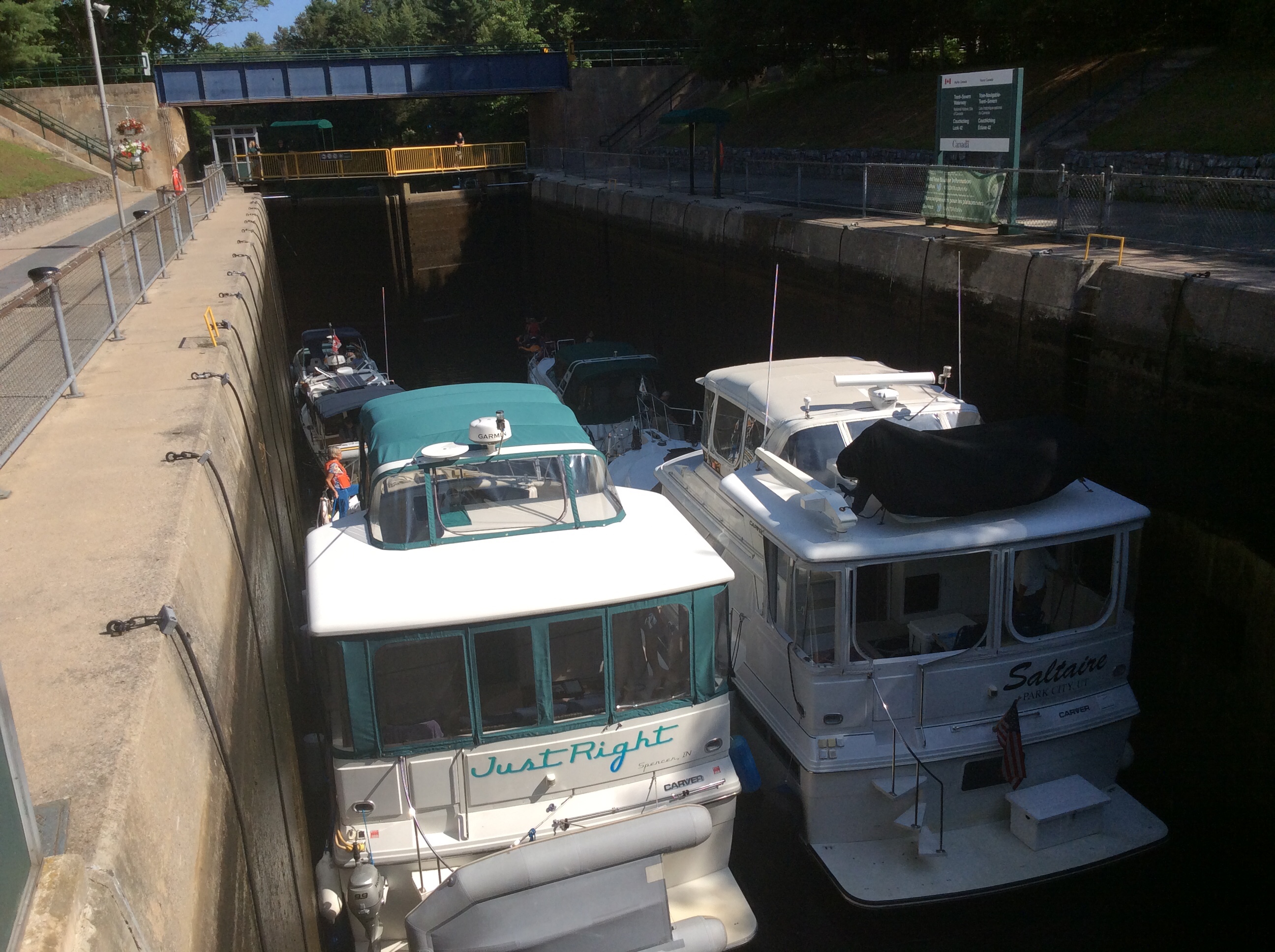 This is an image of our radar screen. Whisky Business’ location is at the bottom of the vertical white line. The large green blob is Golden Daze. It’s green because they are moving away from us at a faster speed. If we were moving faster and closing in on them, it would be red. Below the end of the white line in the center of the image you can see 2 red-ish blobs. Captains Dan and Sam were doing such a splendid job of matching WB’s warp like speed (that would be 9 MPH) that the doppler effect built in to our radar isn’t really sure if we are going faster or slower. Maybe fast-ish.