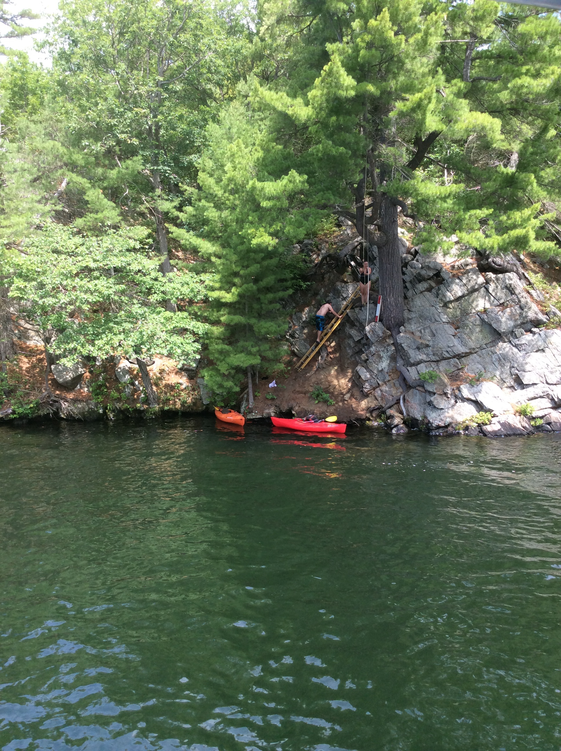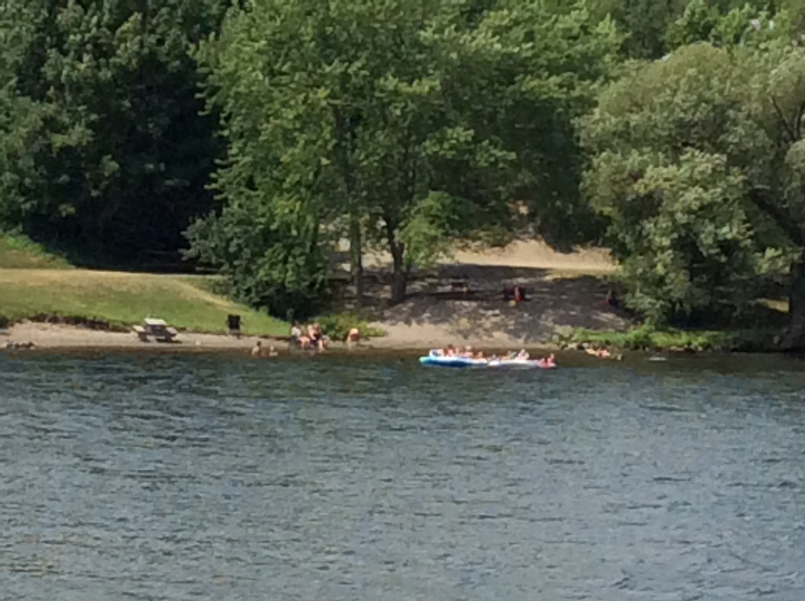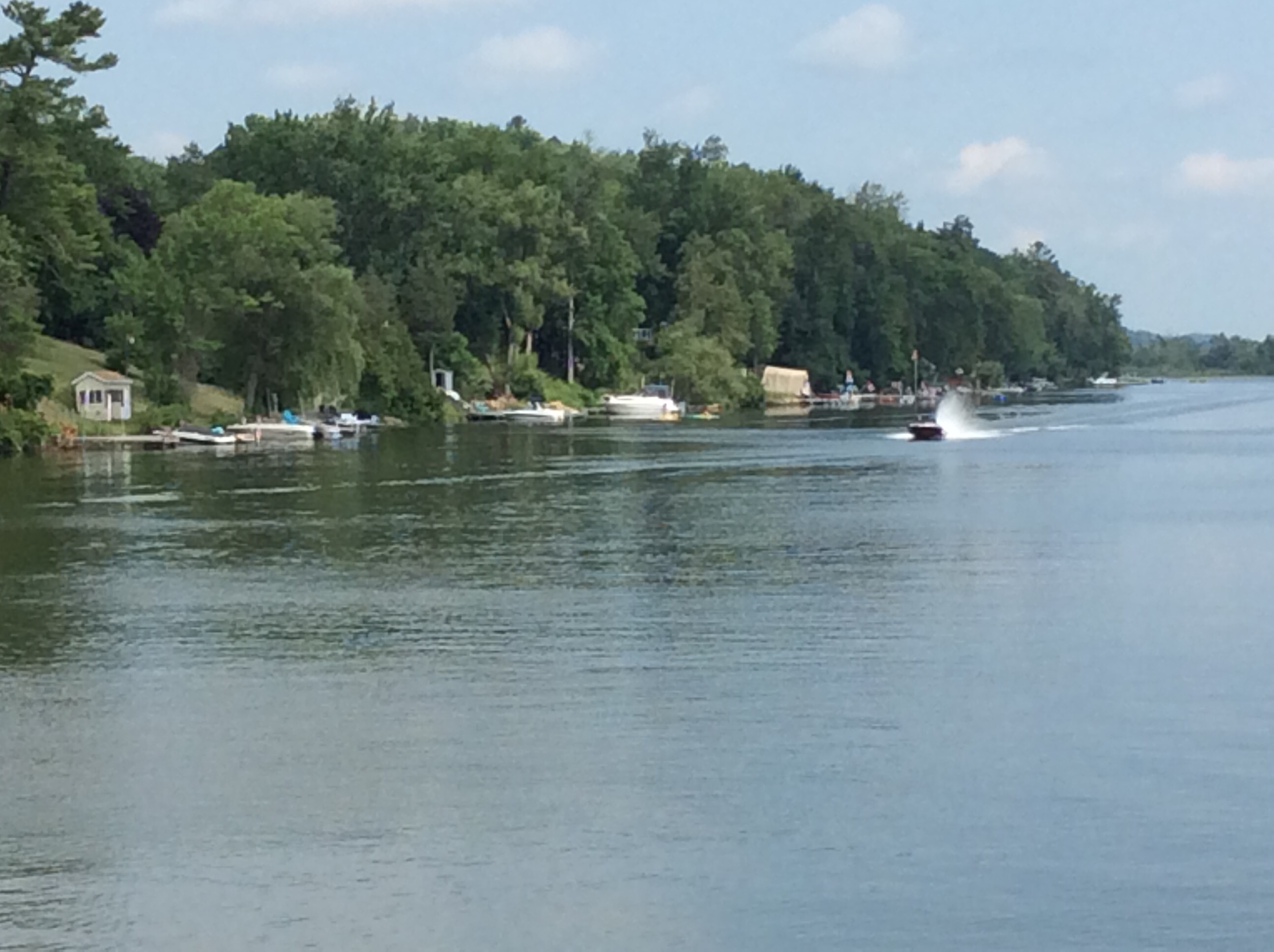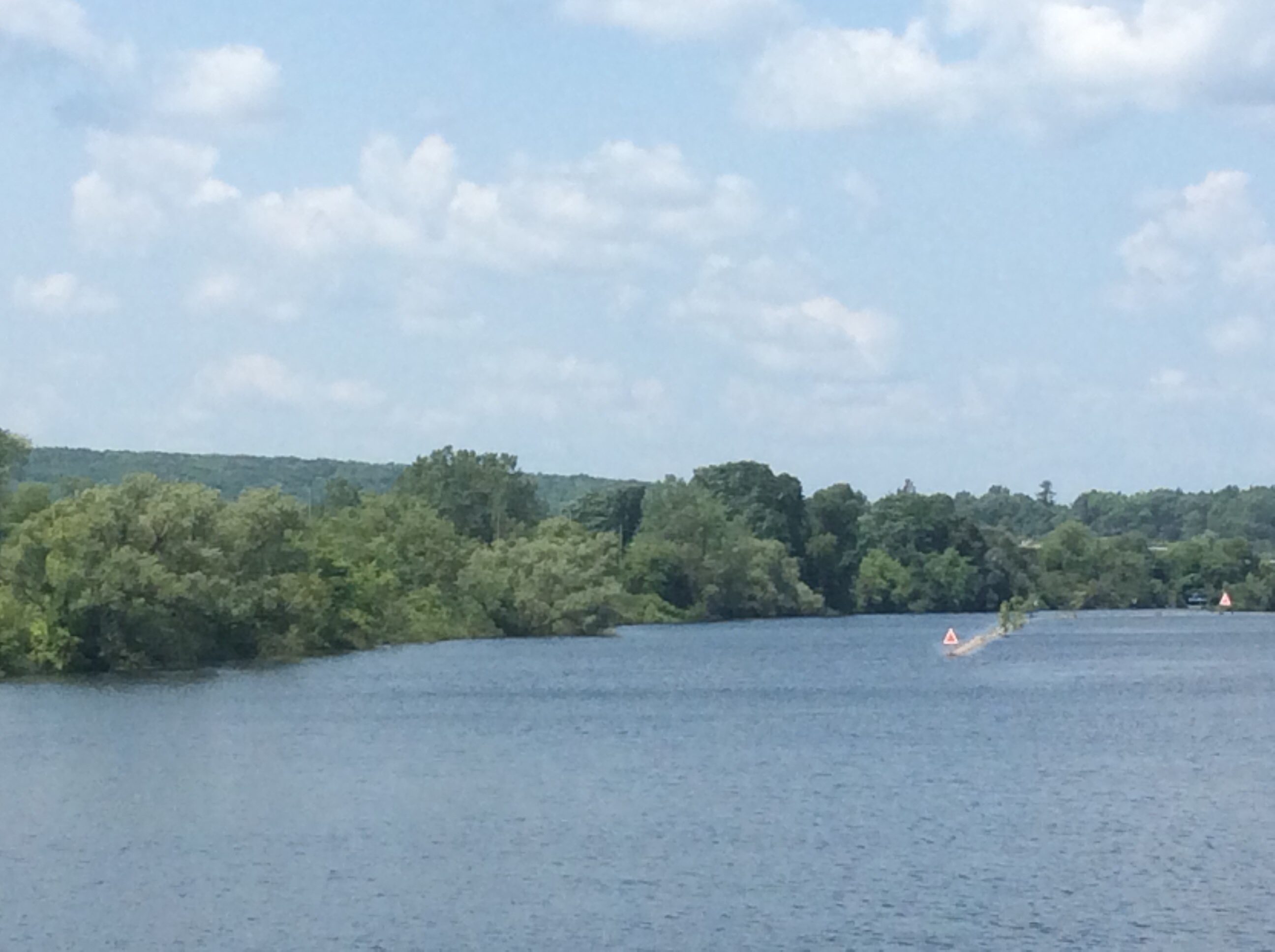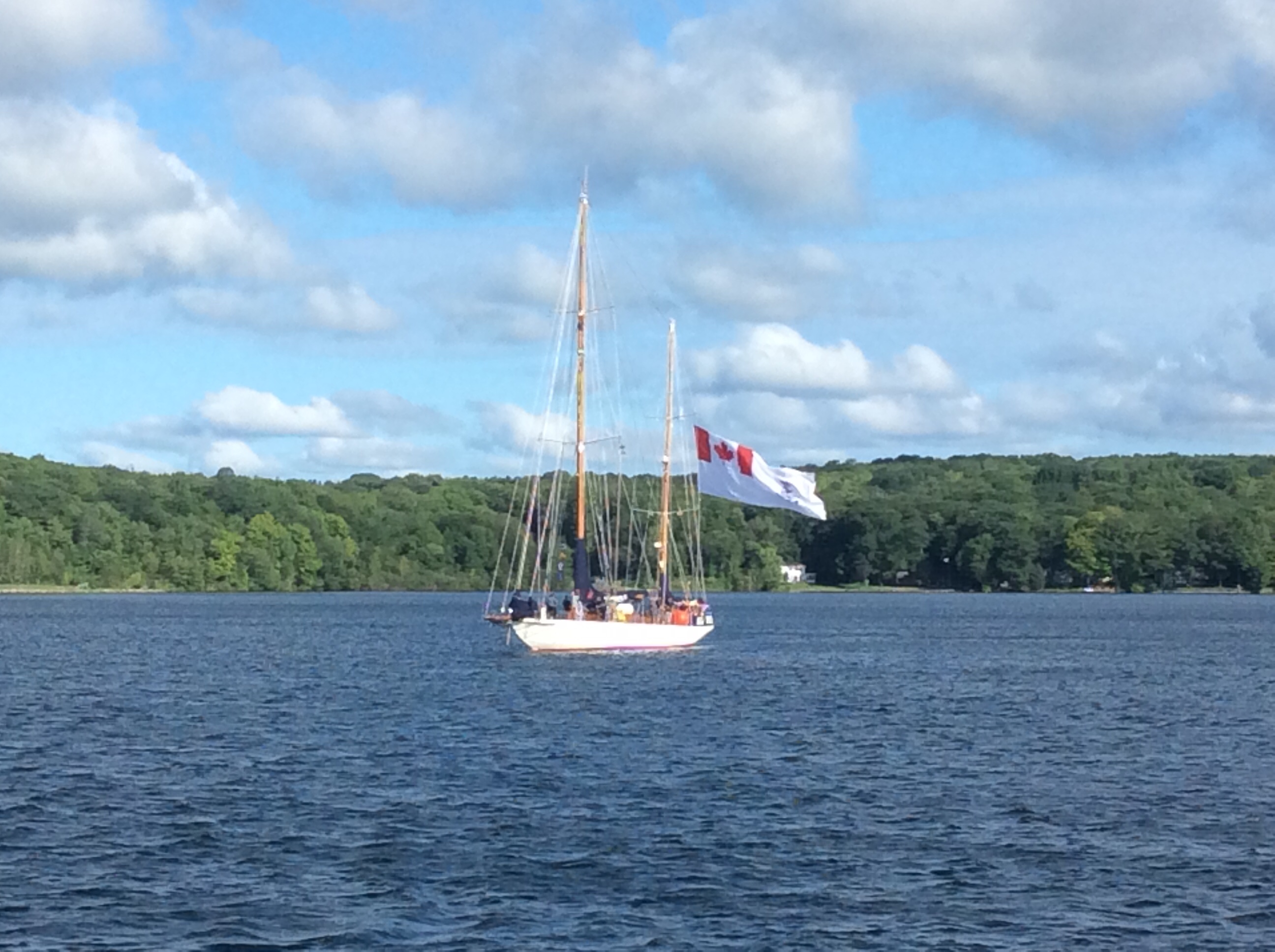 This is an image of our radar screen. Whisky Business’ location is at the bottom of the vertical white line. The large green blob is Golden Daze. It’s green because they are moving away from us at a faster speed. If we were moving faster and closing in on them, it would be red. Below the end of the white line in the center of the image you can see 2 red-ish blobs. Captains Dan and Sam were doing such a splendid job of matching WB’s warp like speed (that would be 9 MPH) that the doppler effect built in to our radar isn’t really sure if we are going faster or slower. Maybe fast-ish.