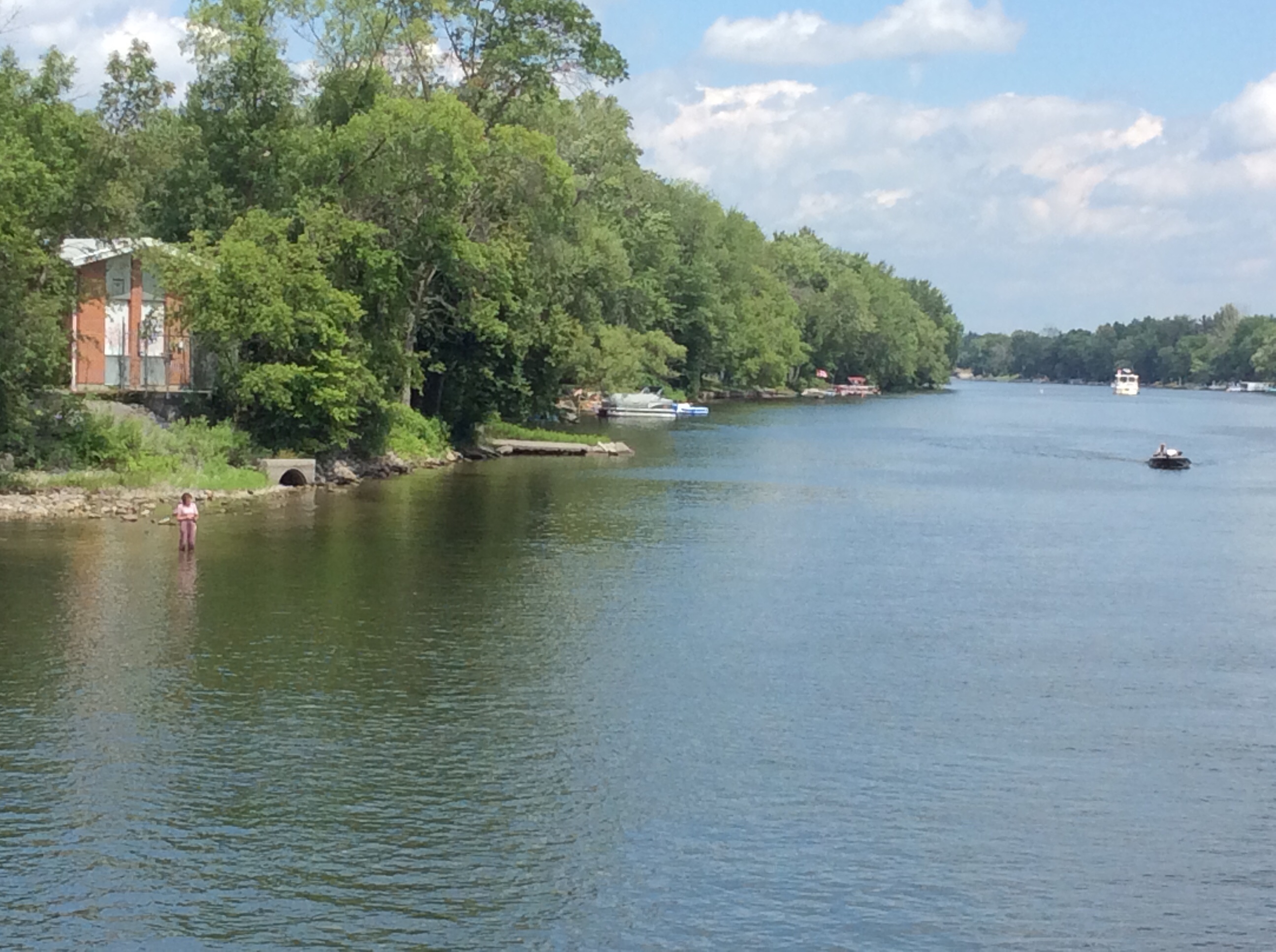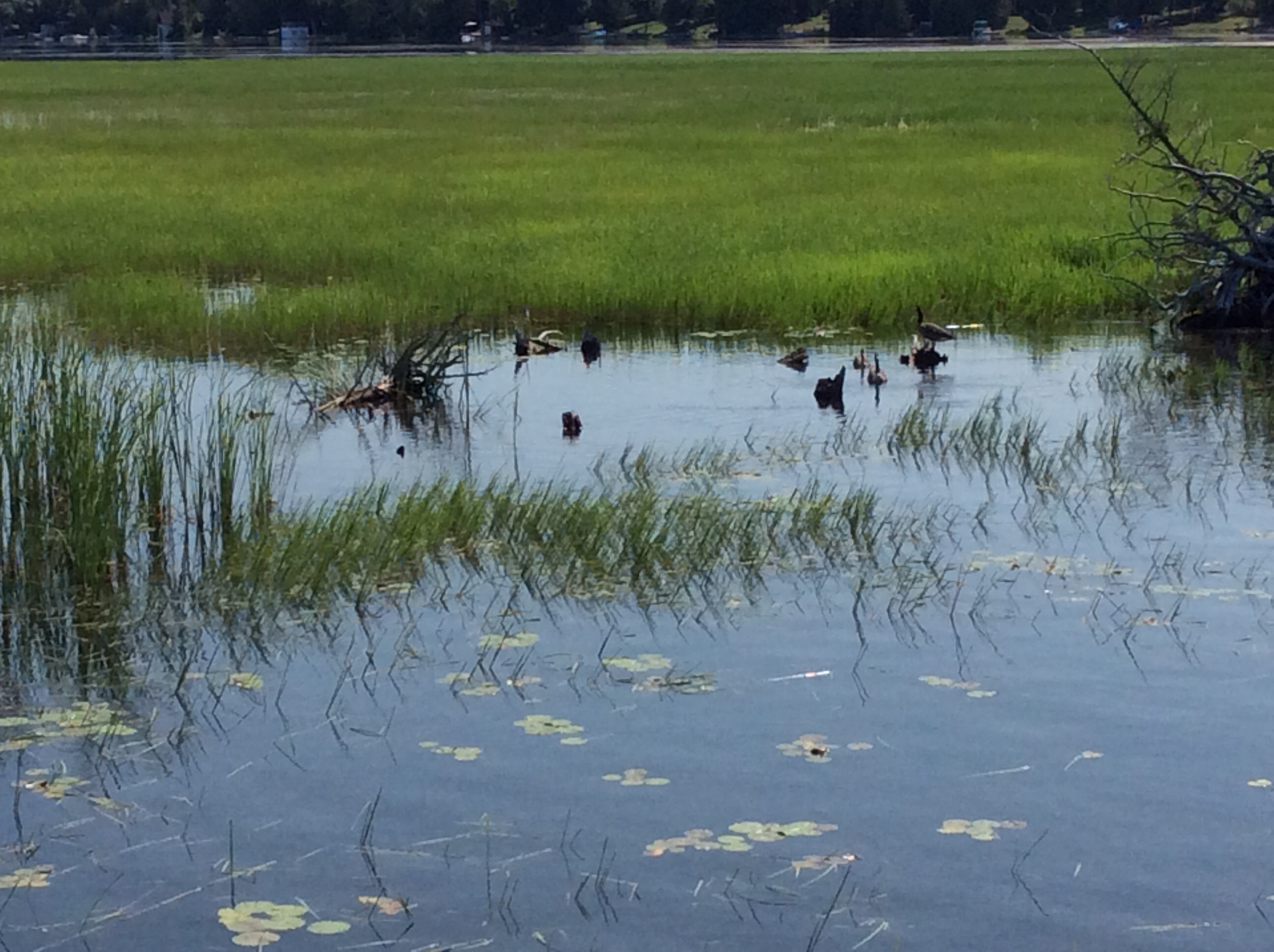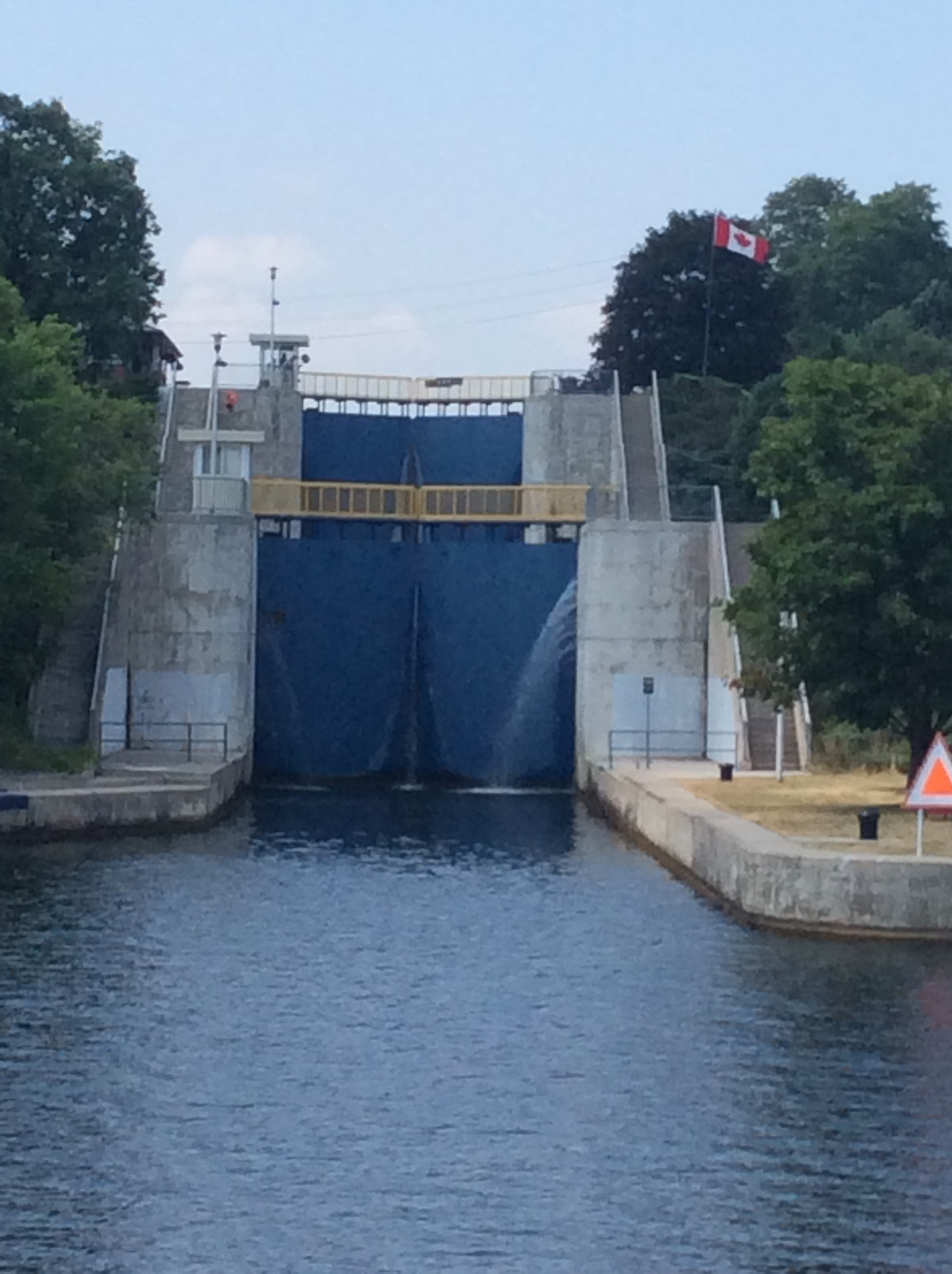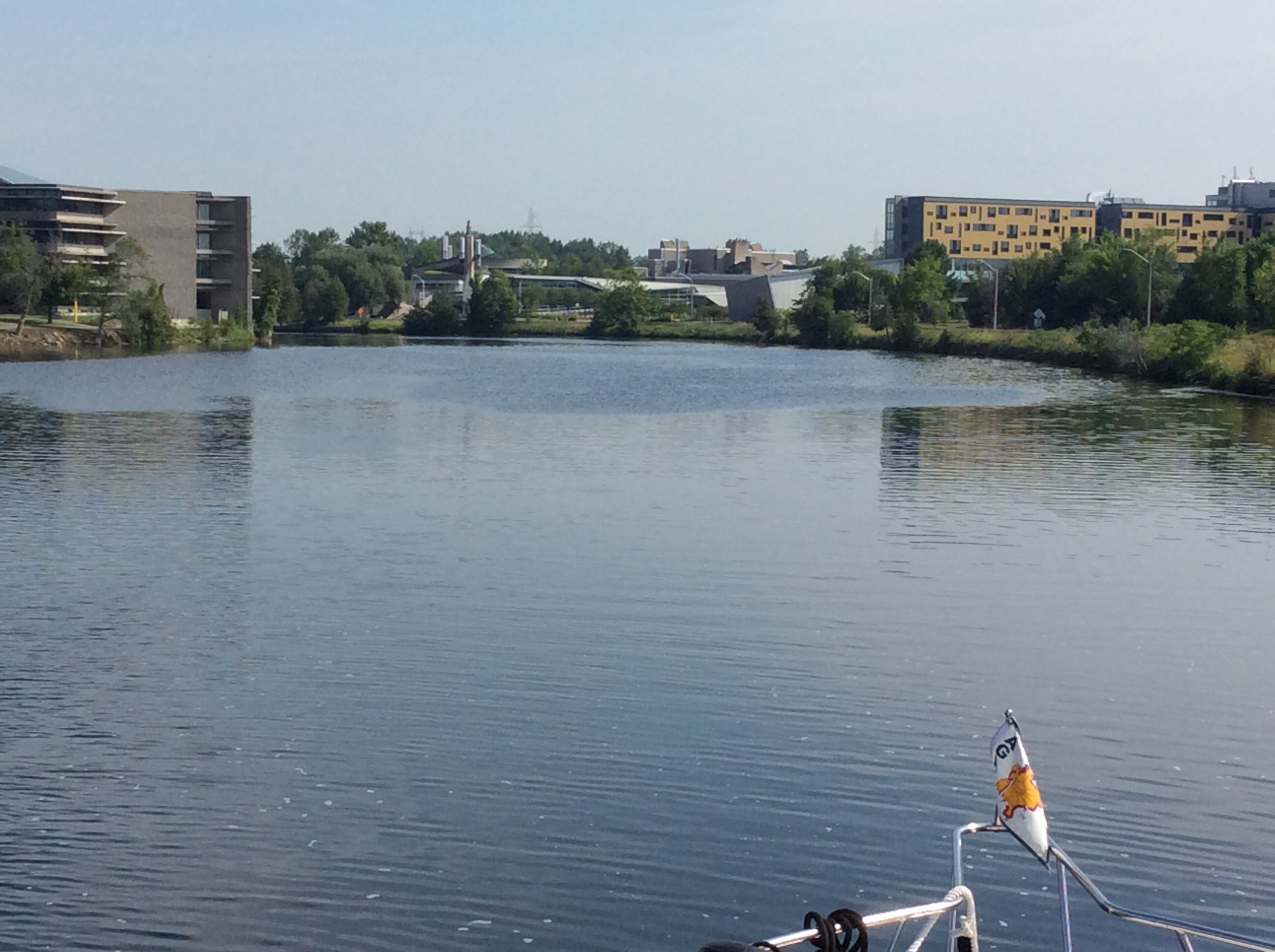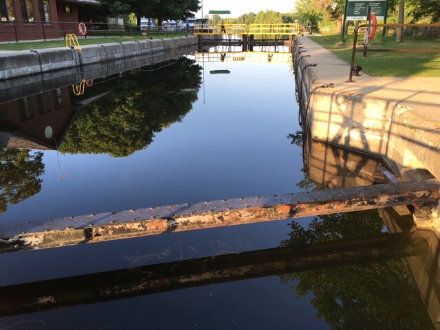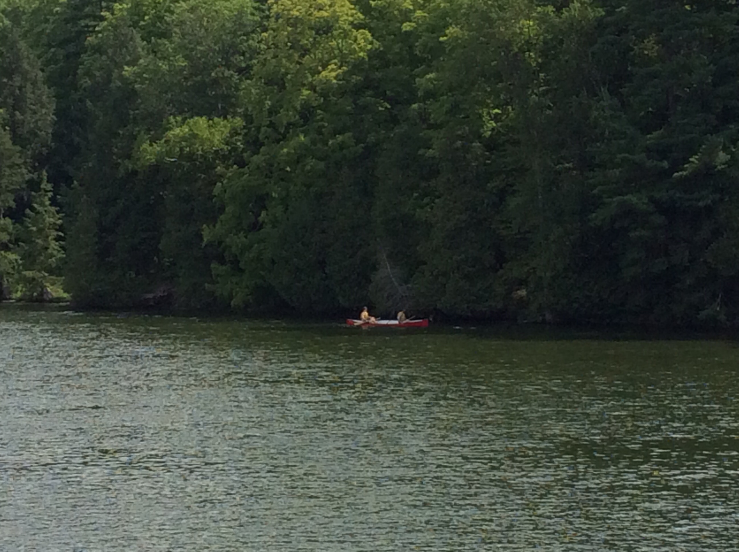 This is an image of our radar screen. Whisky Business’ location is at the bottom of the vertical white line. The large green blob is Golden Daze. It’s green because they are moving away from us at a faster speed. If we were moving faster and closing in on them, it would be red. Below the end of the white line in the center of the image you can see 2 red-ish blobs. Captains Dan and Sam were doing such a splendid job of matching WB’s warp like speed (that would be 9 MPH) that the doppler effect built in to our radar isn’t really sure if we are going faster or slower. Maybe fast-ish.