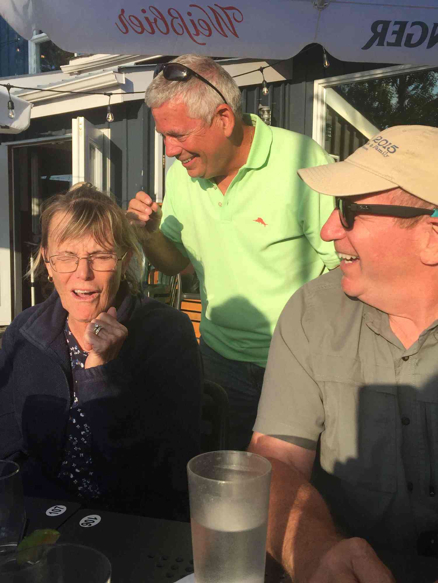 Sam and Rev. She is a SCREAM! Celebrating her newly acquired anchoring skill set.