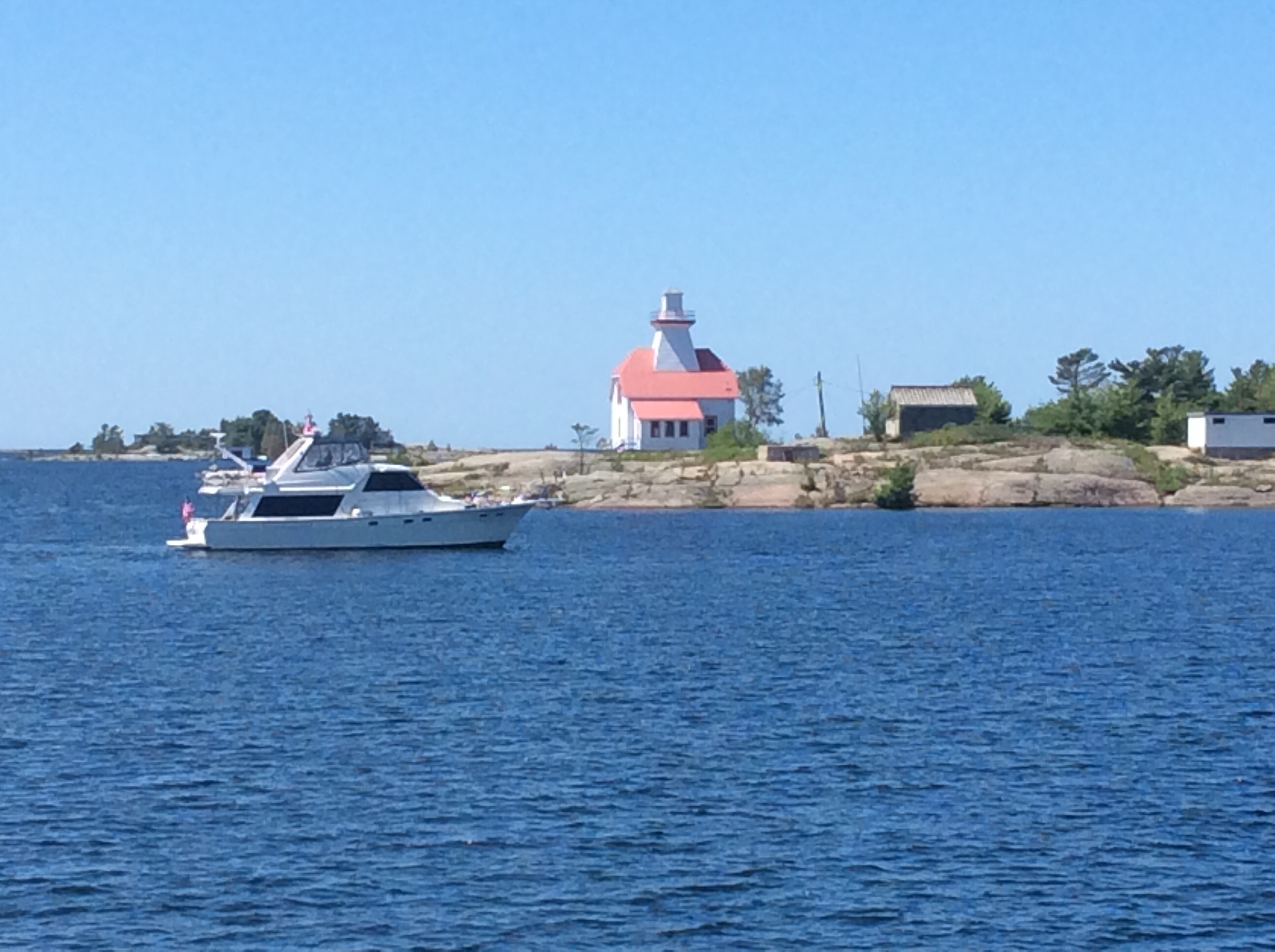 Idyll Time III and a really cool lighthouse. This is the entrance to Snug Harbor. Since this was to be the first time Sam and Rev on Here’s to Us have anchored we let them drop their hook first. Then Idyll Time came in.
