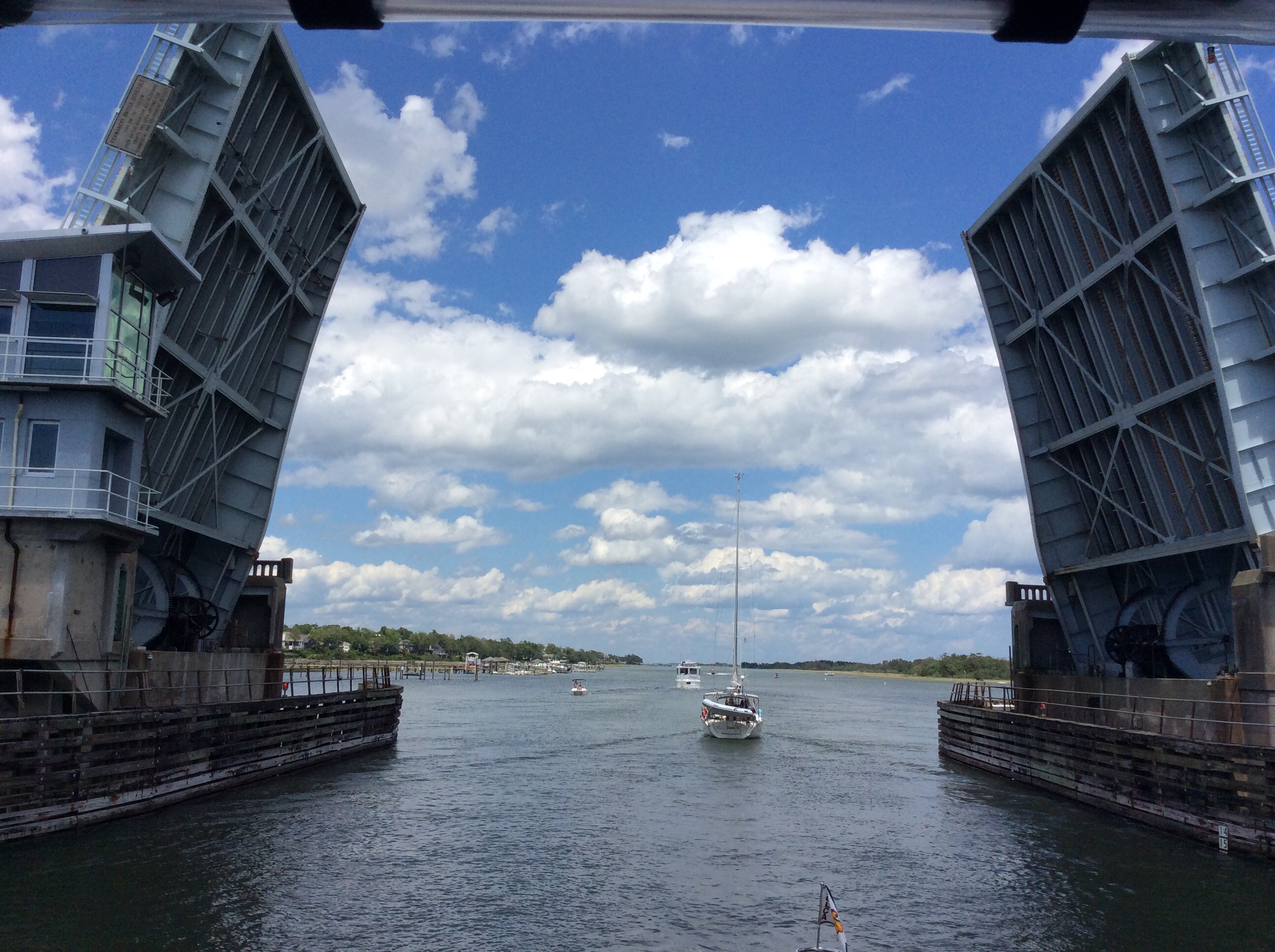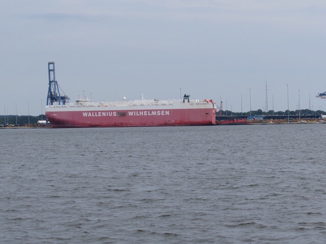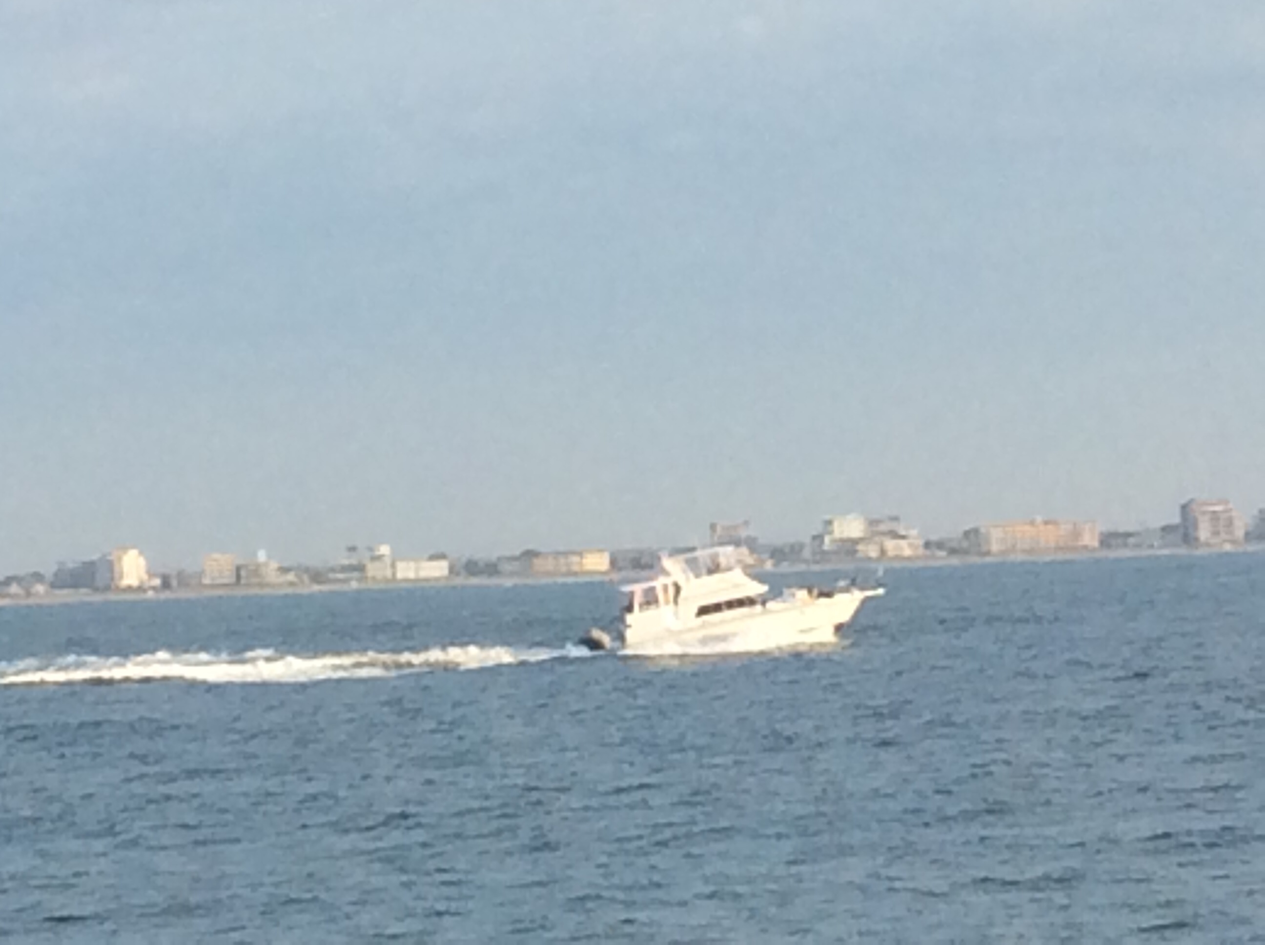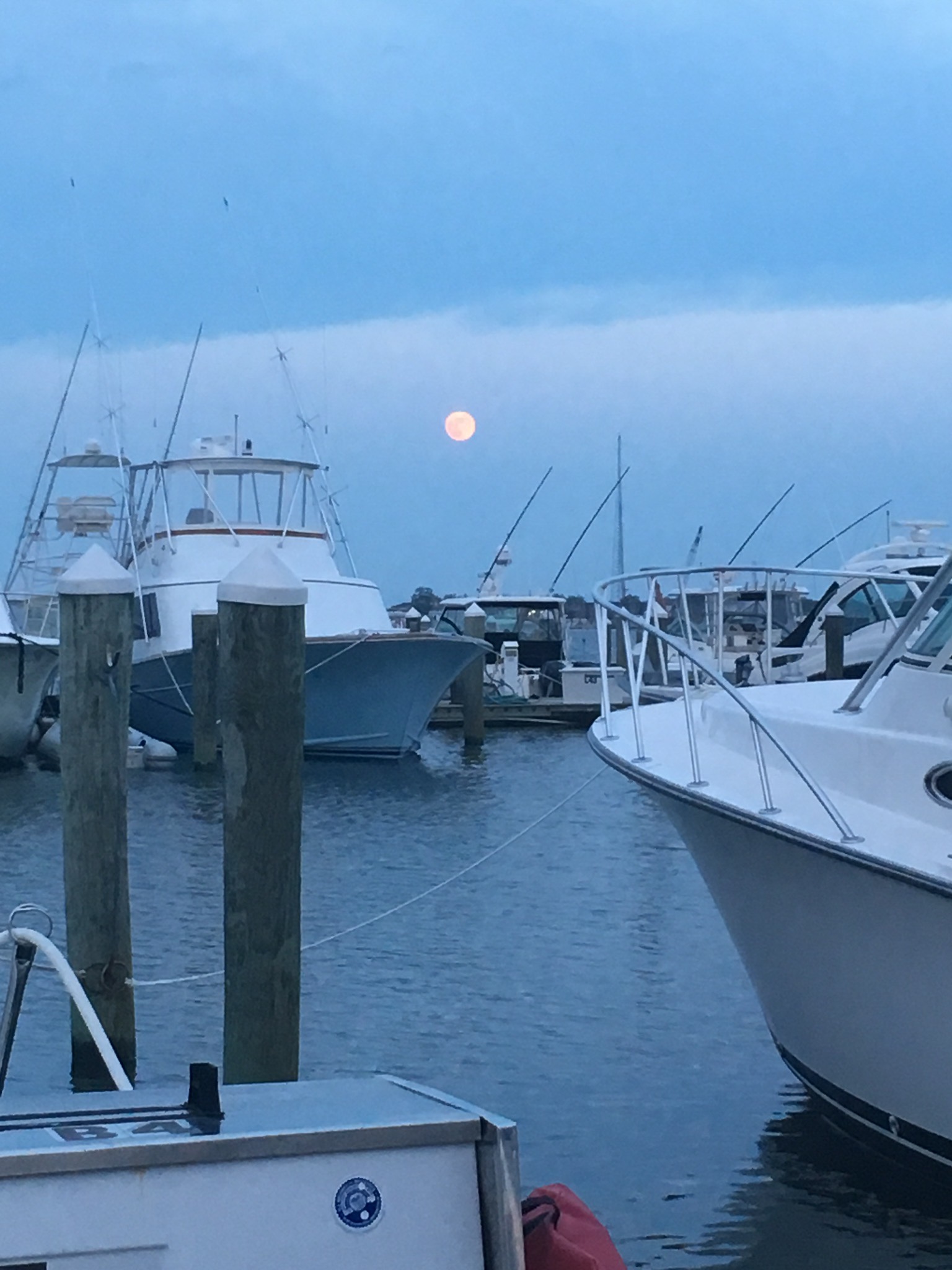 Monday morning. Decided to get up at 4 AM again and depart for the long run to New York. We had 3 bail out points if the seas got too rough. NOAA (National Oceanic and Atmospheric Administration) forecasts for wave and winds was about as ideal as you can get in the Atlantic Ocean. Minor hiccup though, At 5 AM when we had planned to depart, we were experiencing a very low Low Tide due to the full moon you saw in the above photo. We were close to the bottom so we had to wait an hour to get enough water under us to depart. Tide had started to rise at 4 AM. At 6 a 60 footer tied up near us departed so we followed him out with no issues.