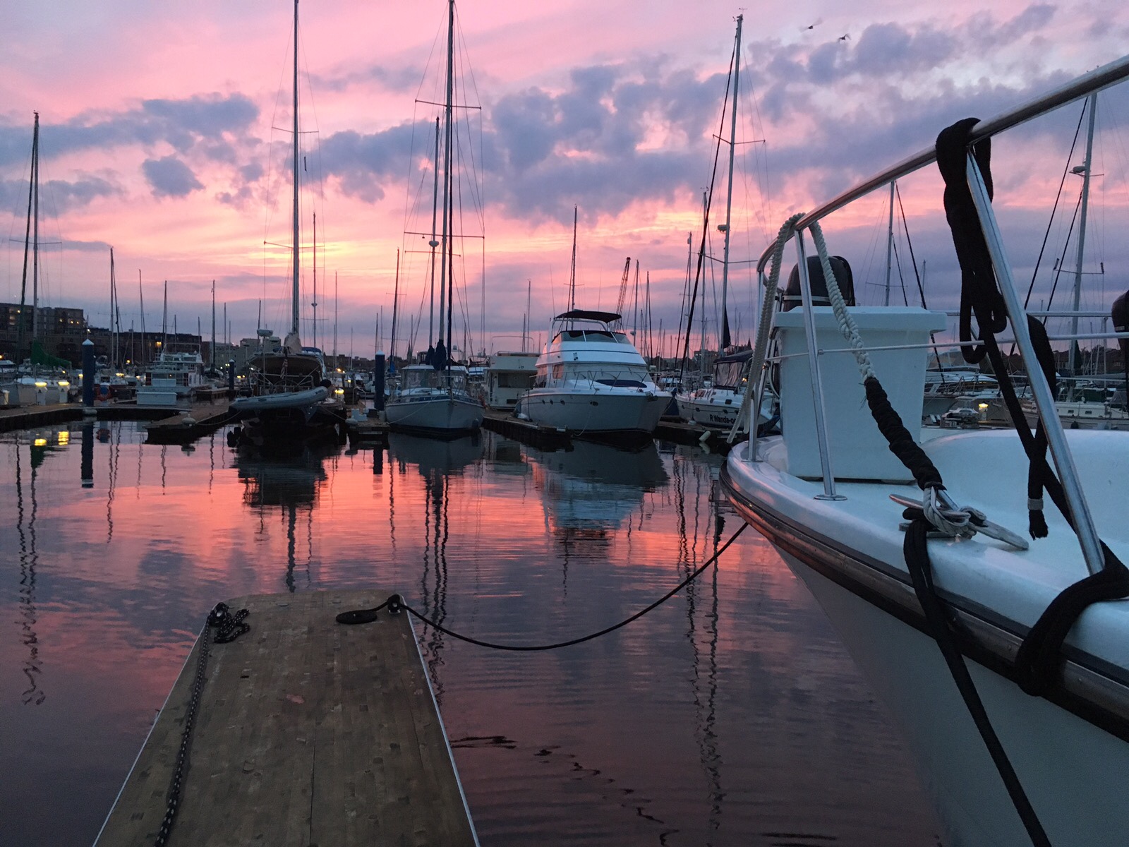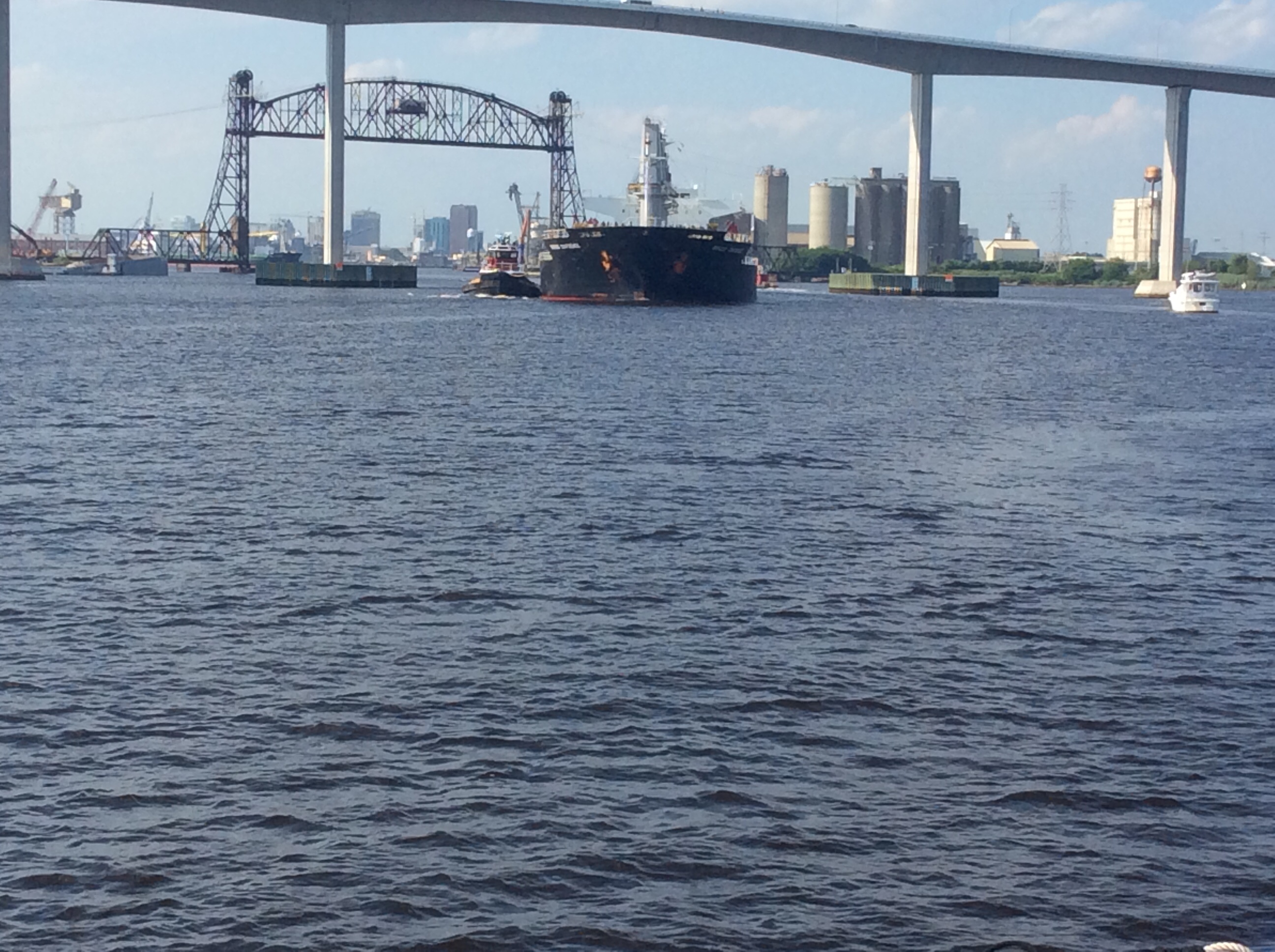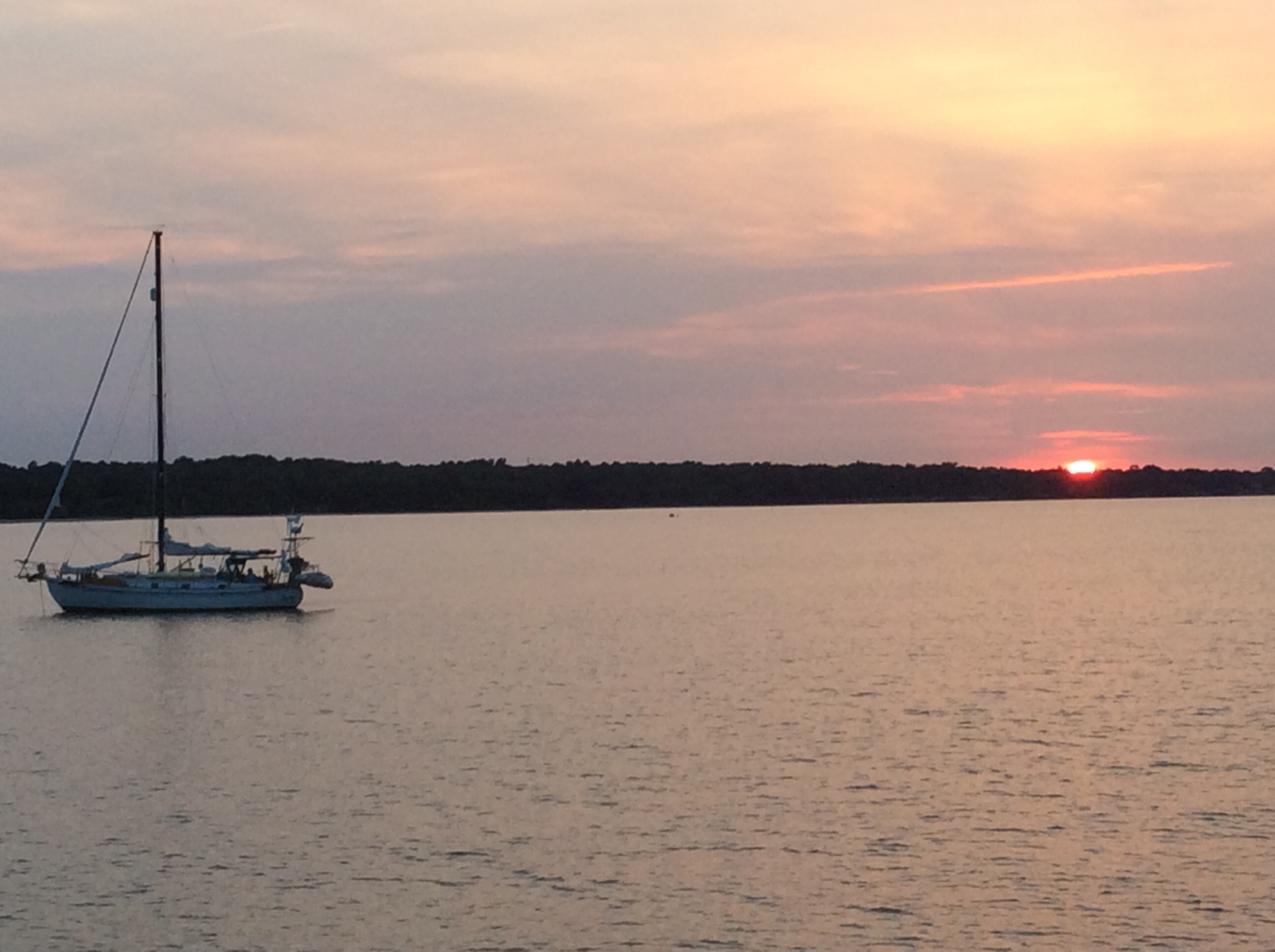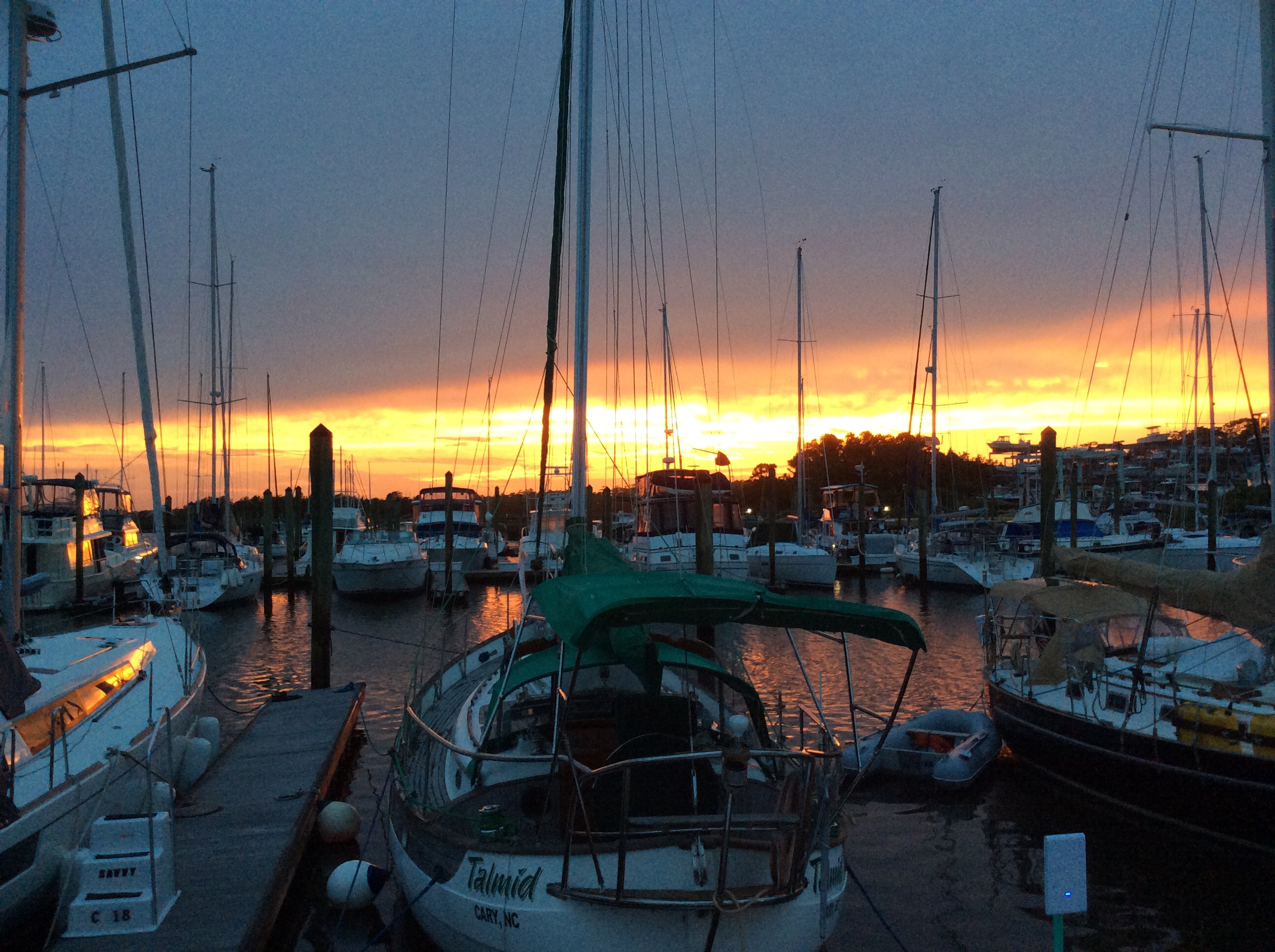 Monday morning. Decided to get up at 4 AM again and depart for the long run to New York. We had 3 bail out points if the seas got too rough. NOAA (National Oceanic and Atmospheric Administration) forecasts for wave and winds was about as ideal as you can get in the Atlantic Ocean. Minor hiccup though, At 5 AM when we had planned to depart, we were experiencing a very low Low Tide due to the full moon you saw in the above photo. We were close to the bottom so we had to wait an hour to get enough water under us to depart. Tide had started to rise at 4 AM. At 6 a 60 footer tied up near us departed so we followed him out with no issues.