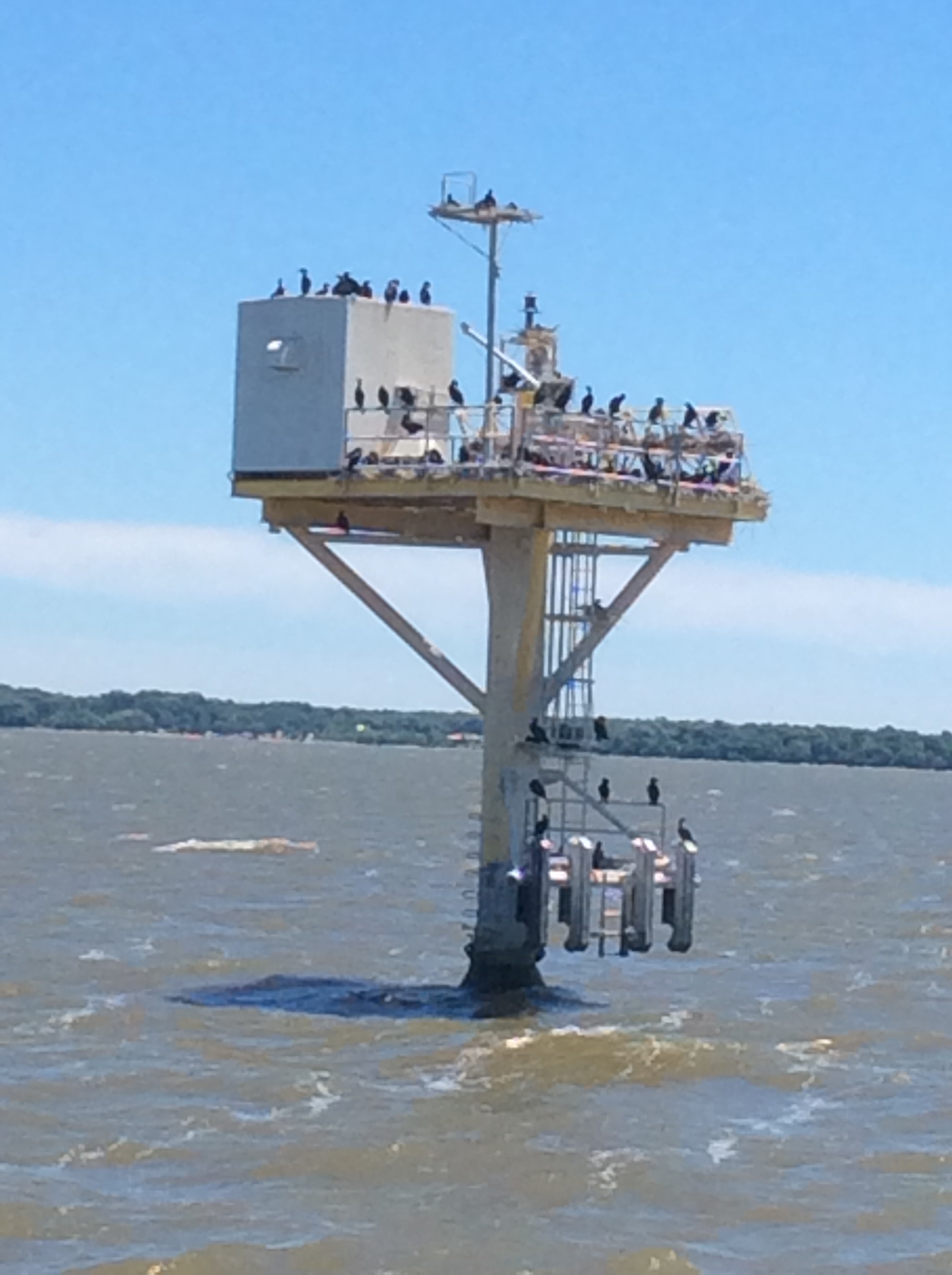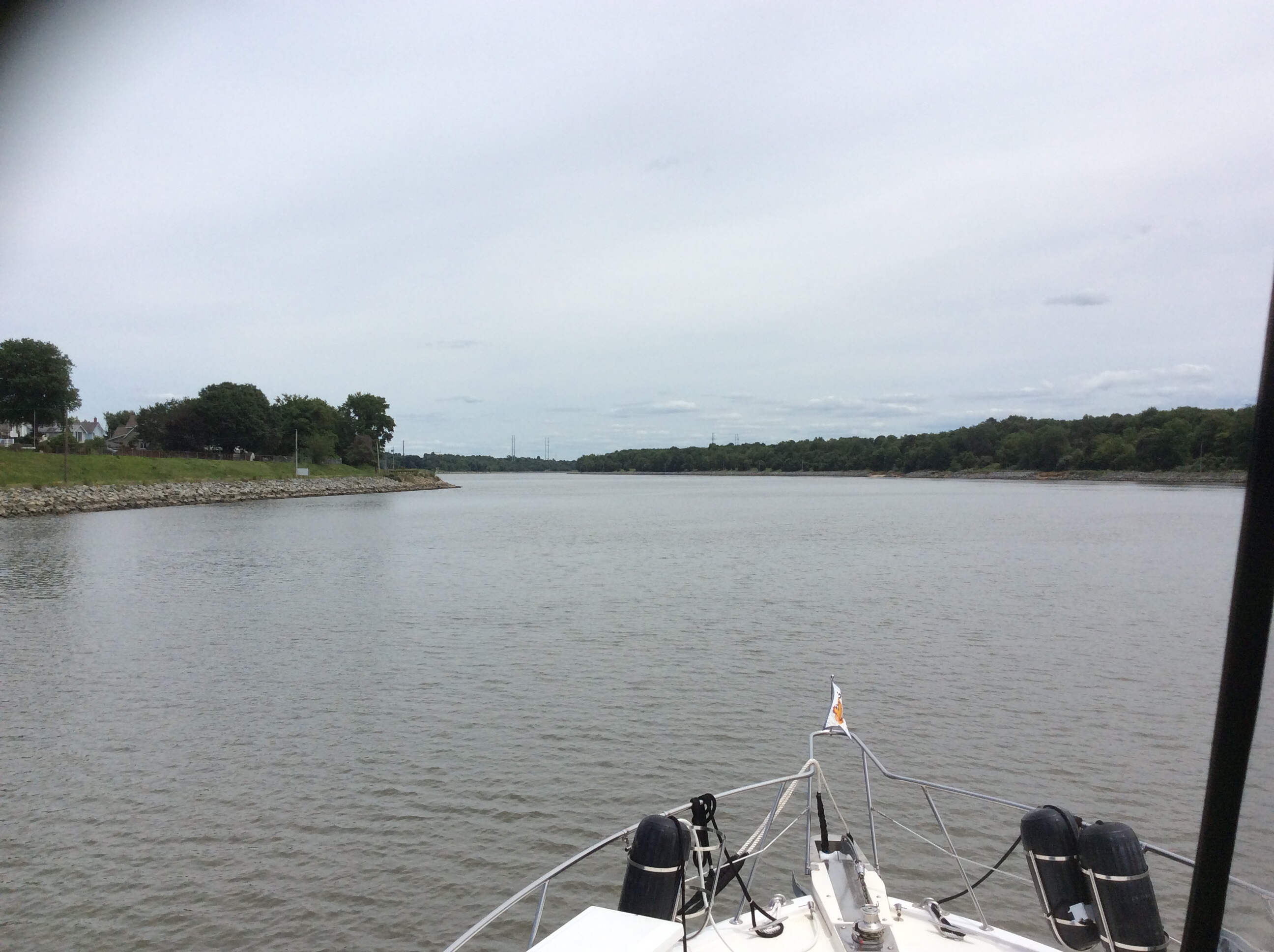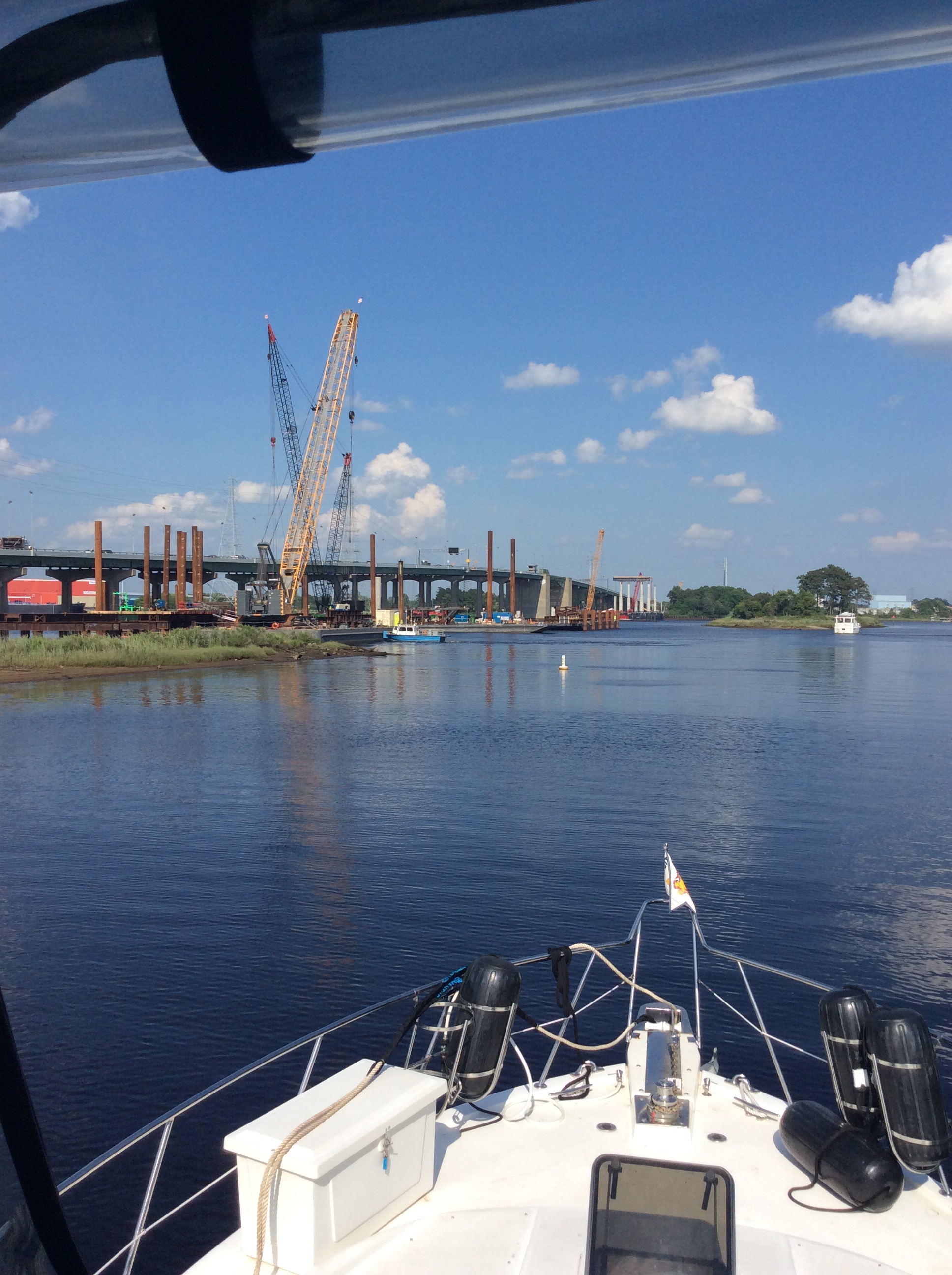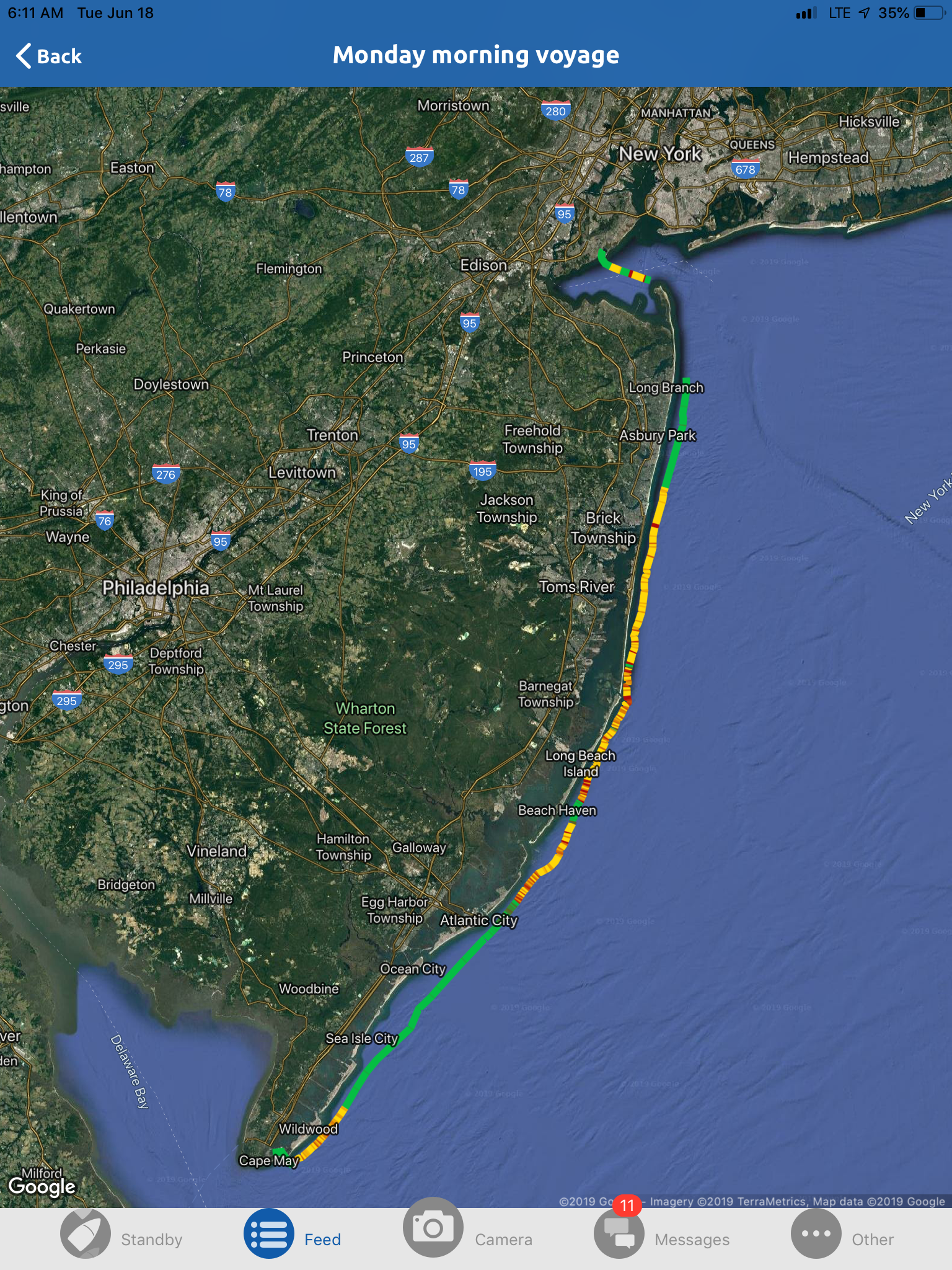 This is a view from the NEBO app of our trip yesterday. The color green denotes our speed at over 10 MPH, yellow at over 15 and red at over 20. On flat water at our “cruise speed” we are running around 18-19 MPH. Had we been running flat and calm water yesterday at cruise the line would have been an unbroken yellow line. Since we had those “swells” or really wide waves we would slow down as we “climbed” the nearest side of the wave but our speed would increase to over 20 as we “sped” down the other side. Close to the top of the photo you can see where we went into “stealth” mode. Not really, NEBO just dropped us for a bit, maybe poor cell signal. We ran 11 hours and covered 135 miles. One Hundred, Thirty Five miles in 11 hours and burned over 100 gallons of fuel. Coulda done it in a car in 2 hours burning less than 5 gallons of gas. ??????????????????????????????????????????????????????????????????????????