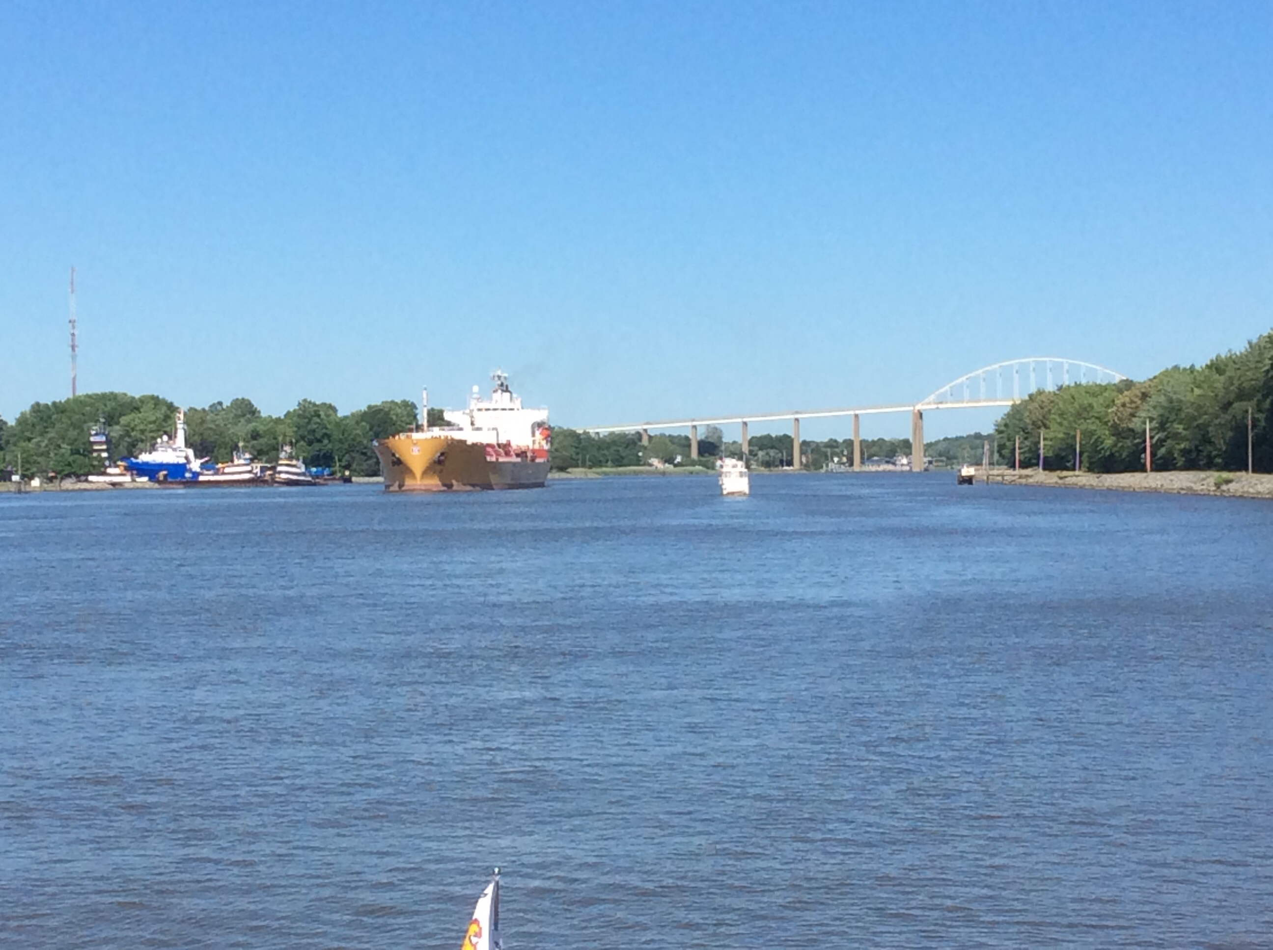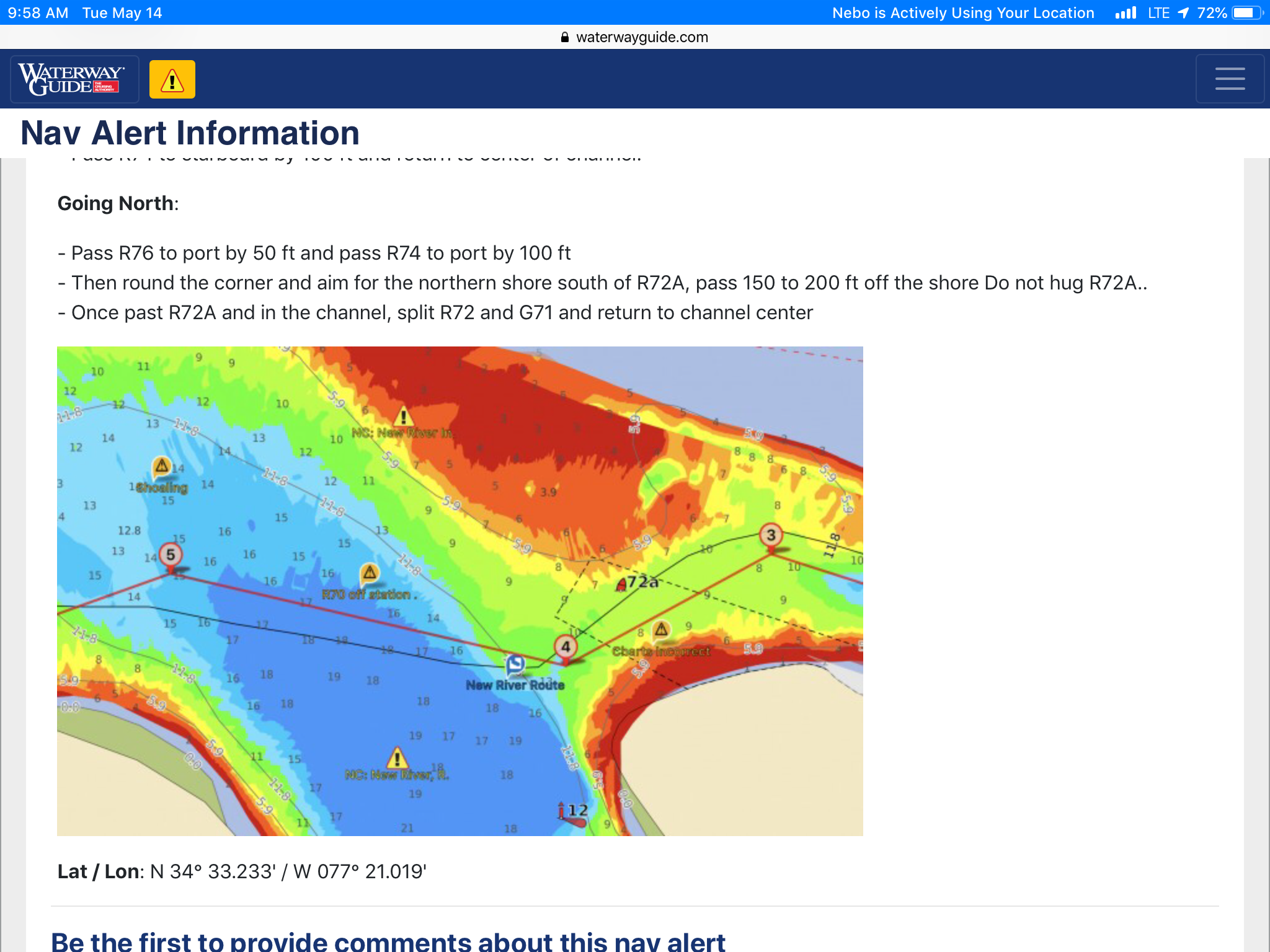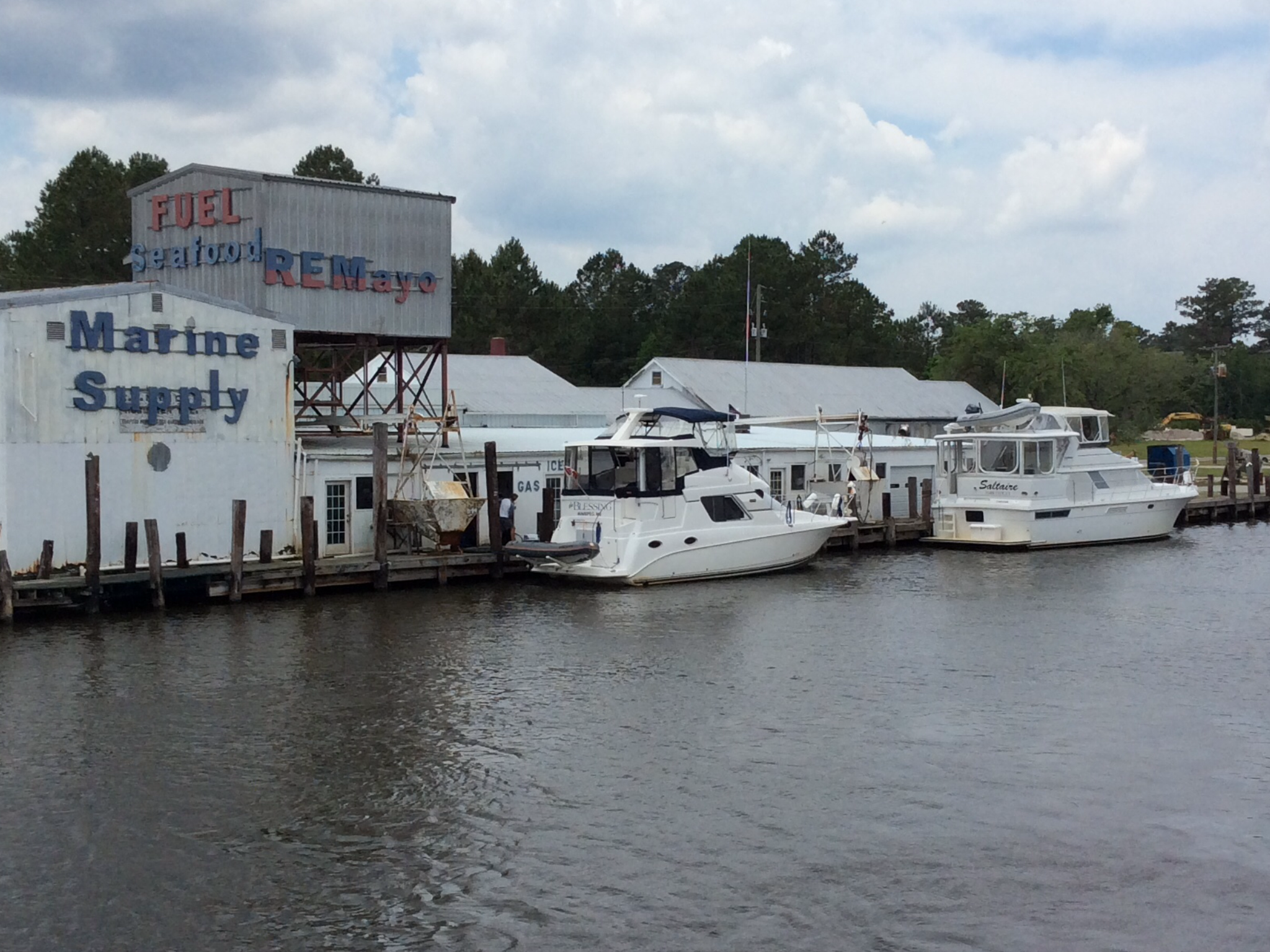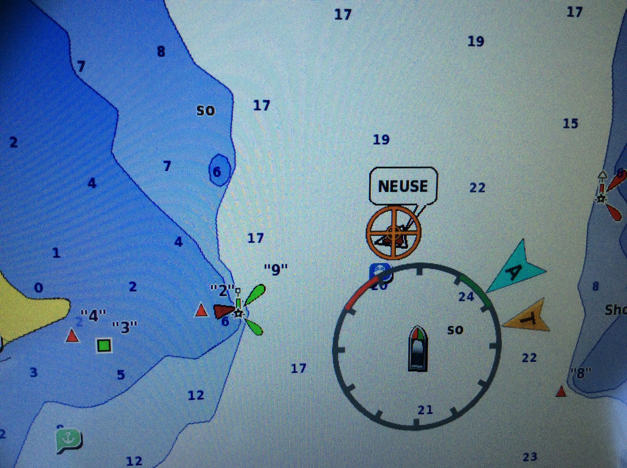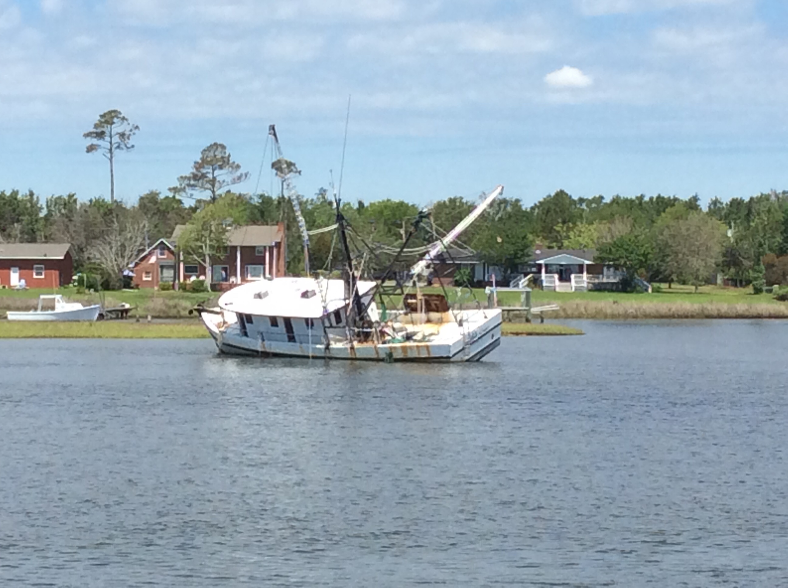 This is a view from the NEBO app of our trip yesterday. The color green denotes our speed at over 10 MPH, yellow at over 15 and red at over 20. On flat water at our “cruise speed” we are running around 18-19 MPH. Had we been running flat and calm water yesterday at cruise the line would have been an unbroken yellow line. Since we had those “swells” or really wide waves we would slow down as we “climbed” the nearest side of the wave but our speed would increase to over 20 as we “sped” down the other side. Close to the top of the photo you can see where we went into “stealth” mode. Not really, NEBO just dropped us for a bit, maybe poor cell signal. We ran 11 hours and covered 135 miles. One Hundred, Thirty Five miles in 11 hours and burned over 100 gallons of fuel. Coulda done it in a car in 2 hours burning less than 5 gallons of gas. ??????????????????????????????????????????????????????????????????????????