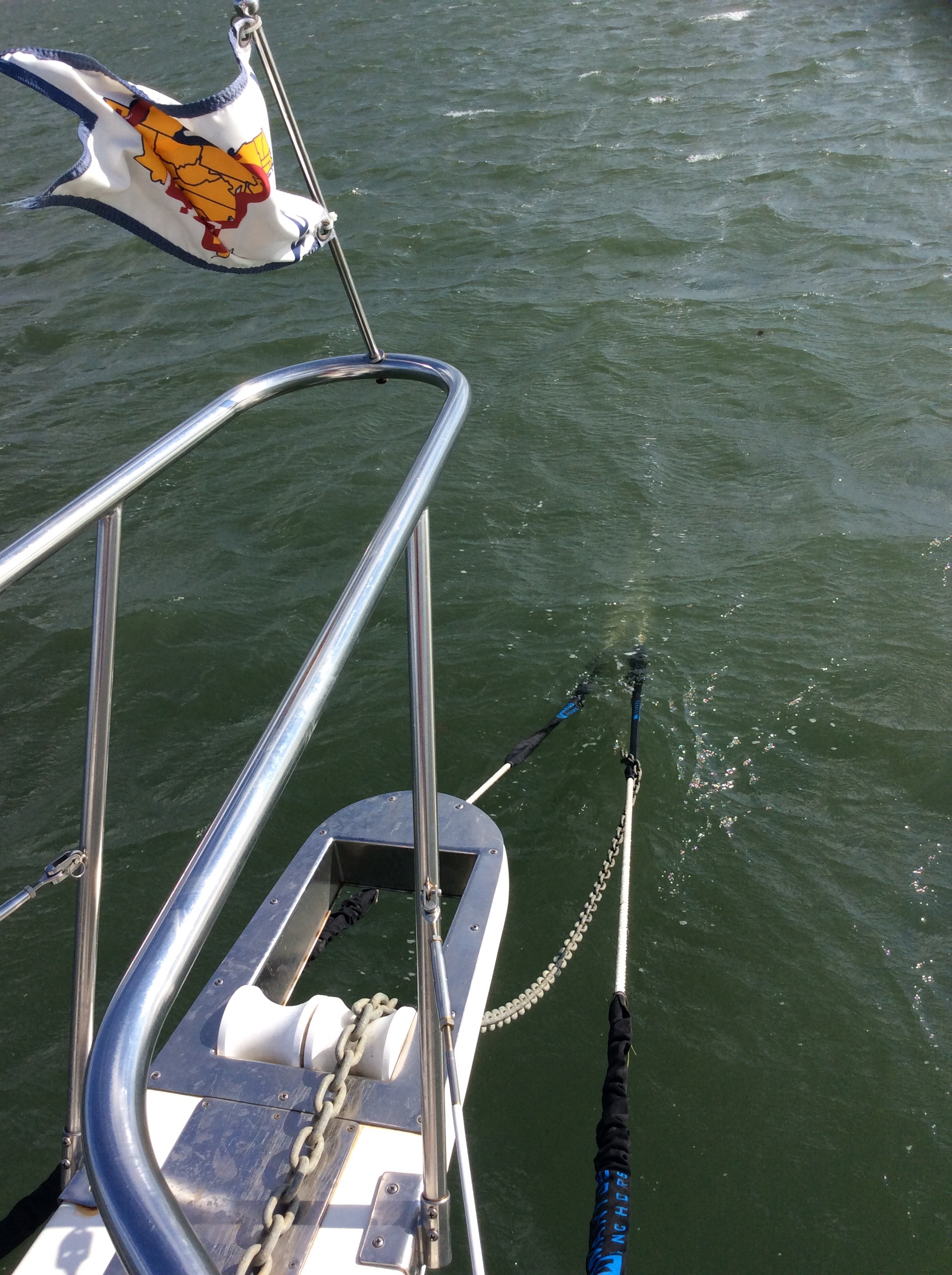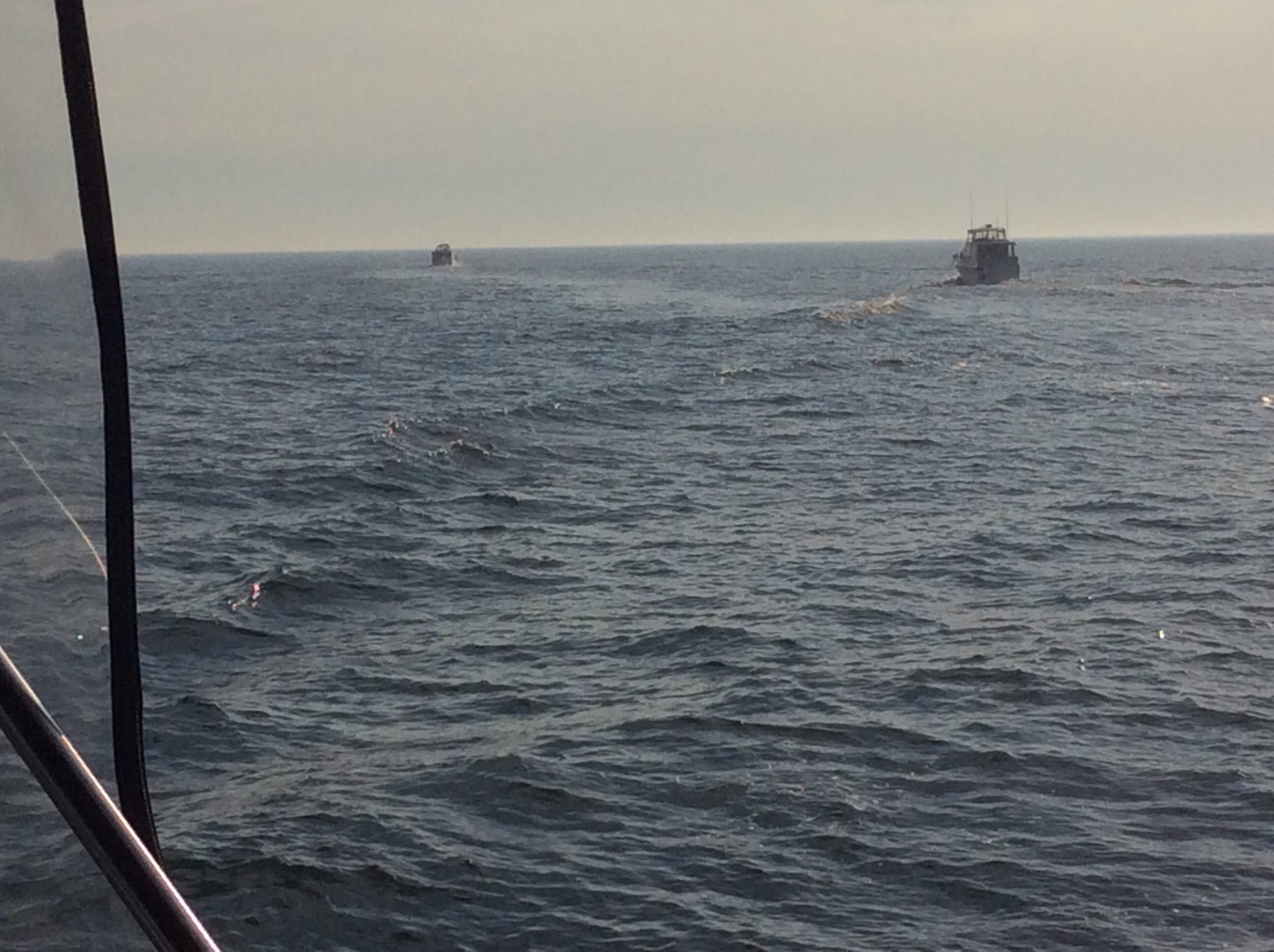 This is a 30 second video giving you an idea of what the seas were like. We had 3 and sometimes 4′ waves but they were really wide, with as much as 8 seconds between them. This means they are pretty flat but since they were coming from the right rear quarter of the boat it rolled us rather than rock us like waves will with only a few seconds between them. Those waves are steeper and make white caps. They will beat you up pretty badly at 3′ and 4′ heights.
