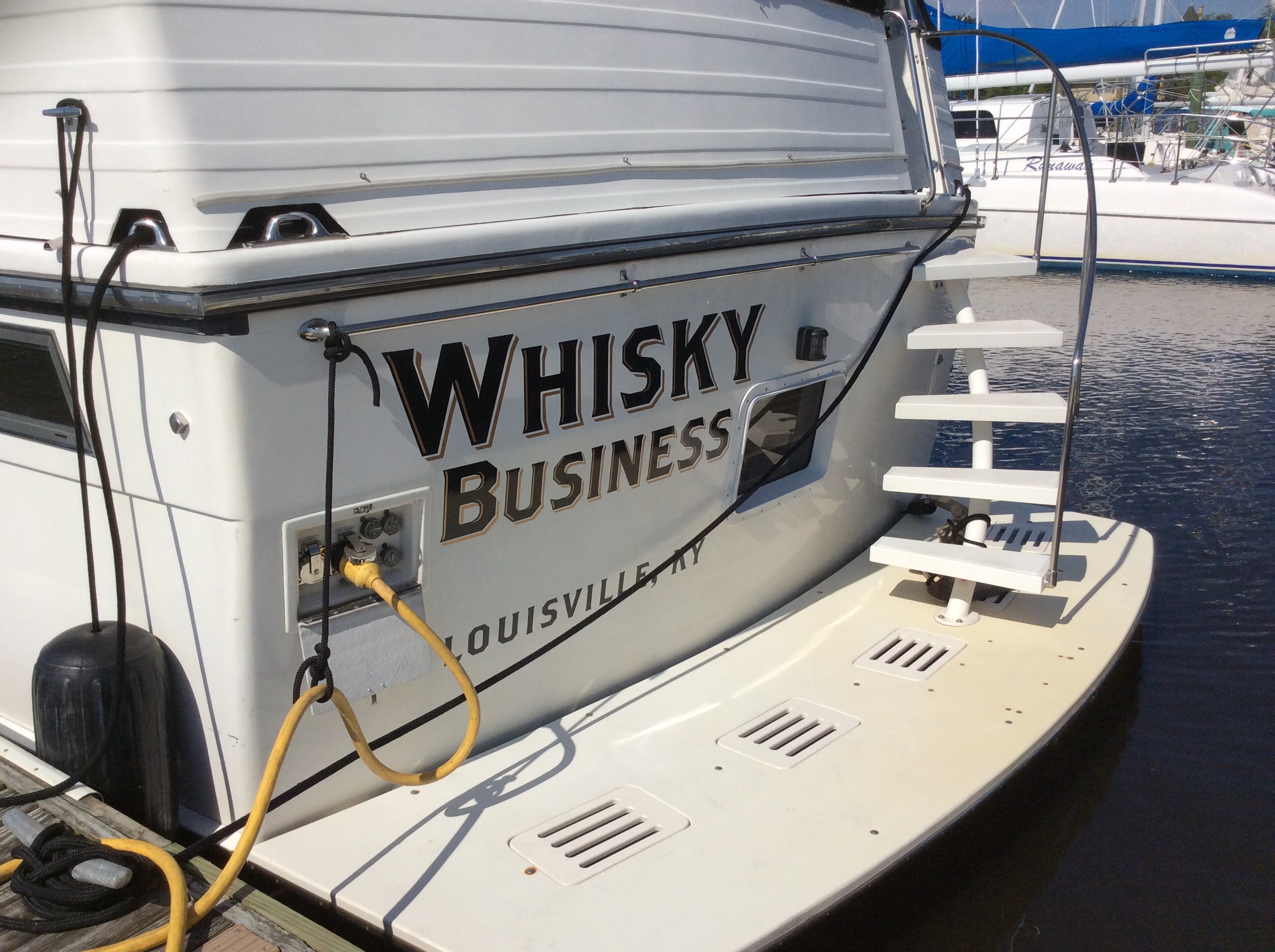 Carried Away under way. This boat is 40′ long, weighs almost half of what Whisky Business weighs and has 950 horse power compared to our 840 HP. It is a really fast boat!