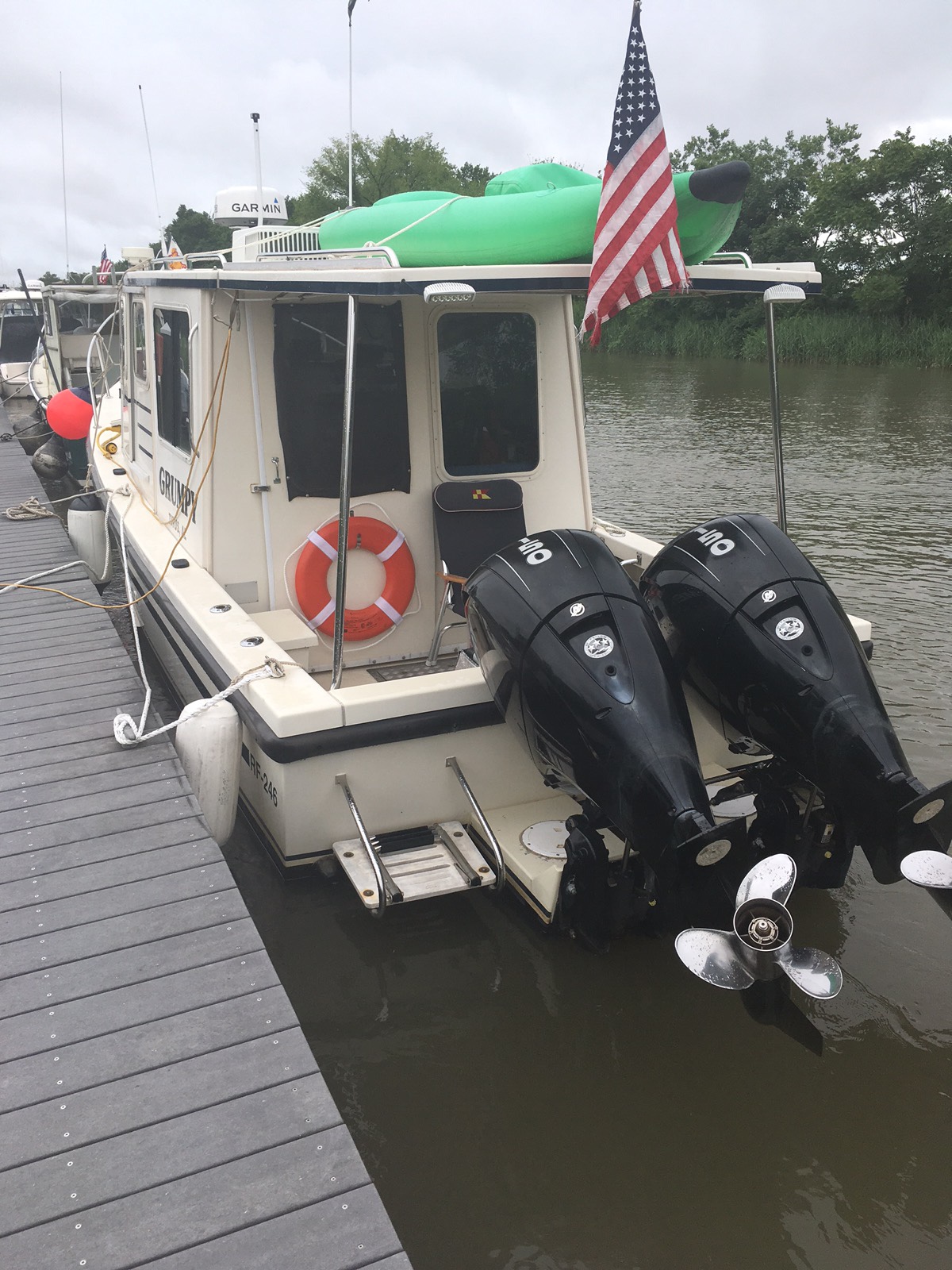 So just for the heck of it I called Dave Shaw at Kentuckiana Yacht Service and asked him what a set of props this size would cost. He said when they get this big they have special tweaks. Maybe $10,000 per prop. Yikes!