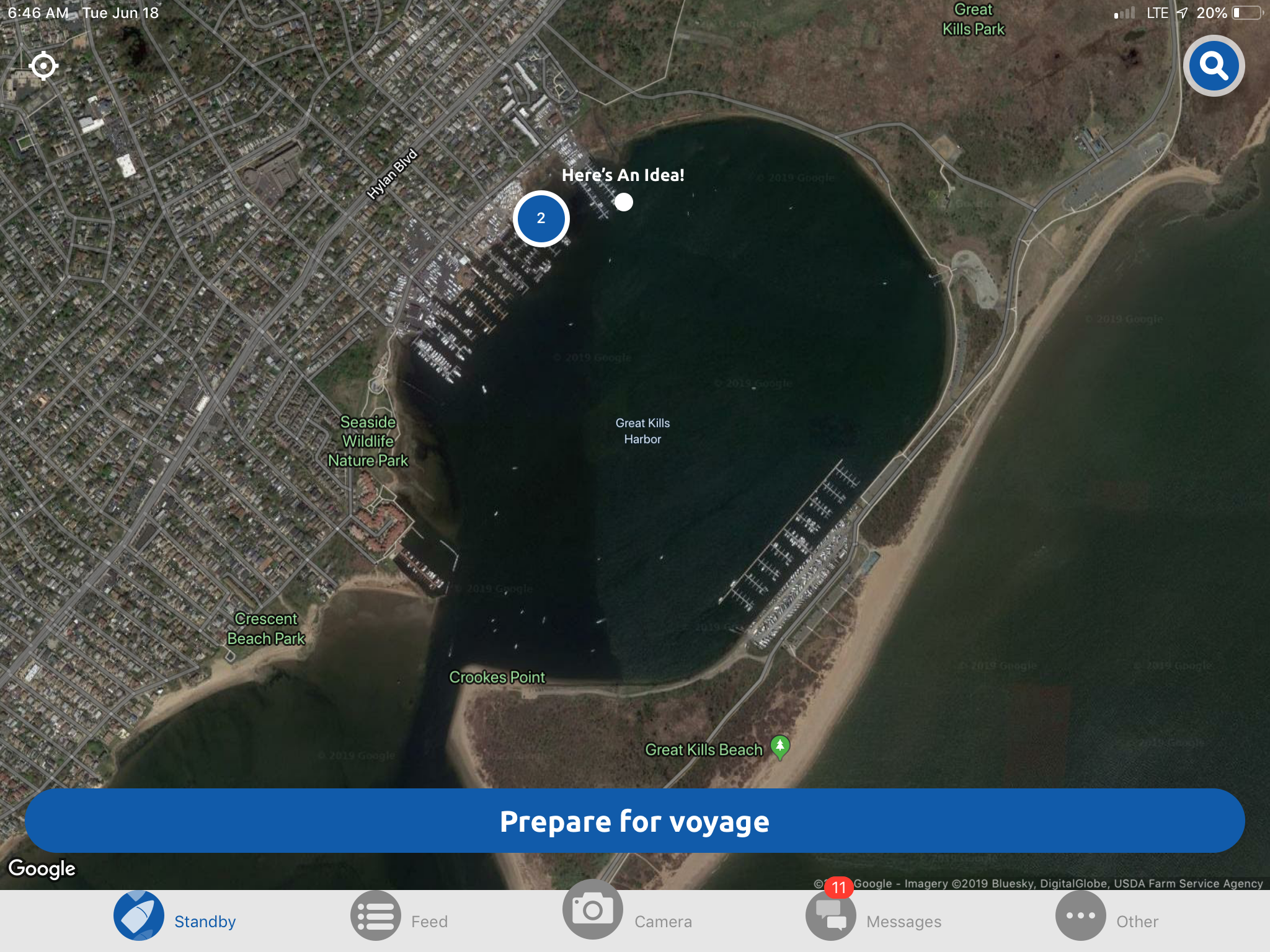 View of Great Kills Harbor on Staten Island. The circle with the 2 denotes Carried Away and WB.